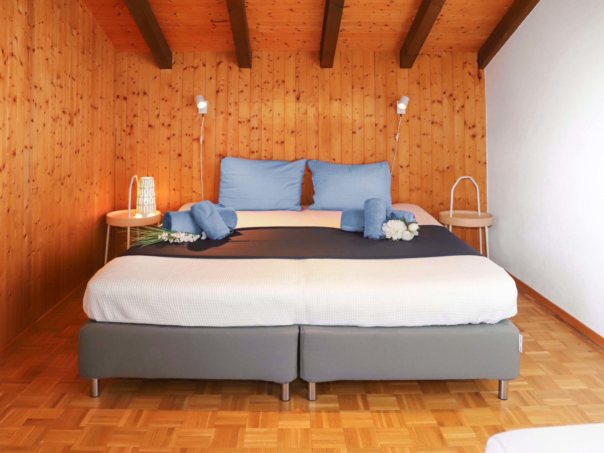 Chalet La Délège, 4-Zimmer-Chalet 115 m2 auf 2 Stockwerken. Komfortabel und schön eingerichtet: Wohn-/Esszimmer mit offenem Kamin, sep. WC und Kabel-TV. Ausgang zur Terrasse, Richtung Südwesten. Kleine Küche (Backofen, Geschirrspüler, 4 Induktionskochplatten, Toaster, Wasserkocher, elektrische Kaffeemaschine, Kapseln für die Kaffeemaschine (Nespresso) extra, Racletteofen, Fondue Set (Käse)). Obergeschoss: 1 Zimmer mit 1 Doppelbett (2 x 80 cm, Länge 200 cm). Ausgang zum Balkon, Richtung Südwesten. 1 Zimmer mit 1 Doppelbett (2 x 90 cm, Länge 200 cm). Ausgang zum Balkon, Richtung Südwesten. 1 Zimmer, Richtung Norden mit 2 Betten (90 cm, Länge 190 cm). Bad/WC. Grosse Terrasse 40 m2. Terrassenmöbel, Liegestühle (2). Herrliche Sicht auf die Berge und das Tal. Zur Verfügung: Bügeleisen, Babybett, Haartrockner. Internet (Wireless LAN, gratis). Bitte beachten: Nichtraucher-Haus. Zusammenklappbares Babybett, ohne Bettwäsche und Daunen. Maximum: 1 Parkplatz für 1 Auto je nach Verfügbarkeit auf dem Außenparkplatz.