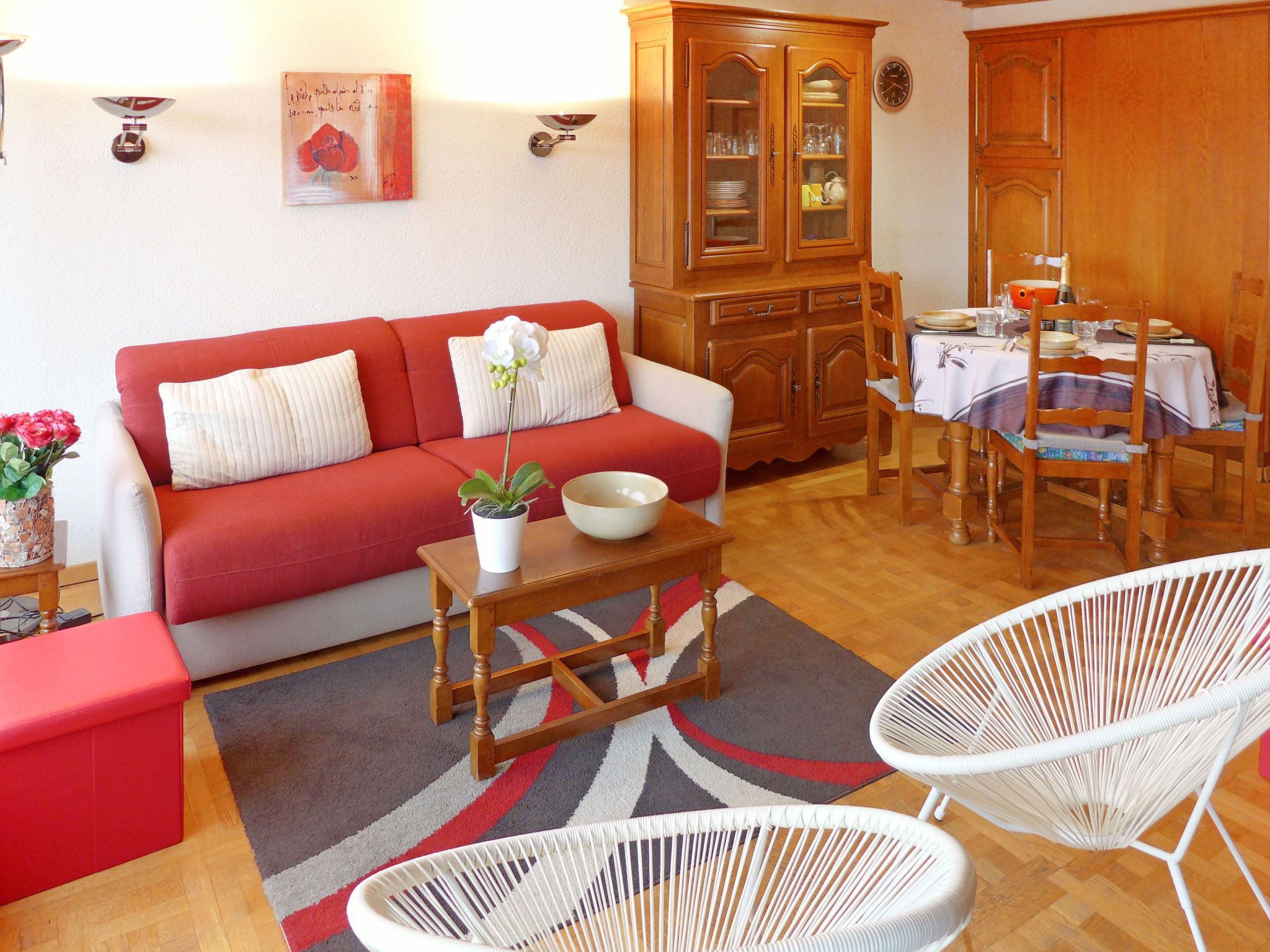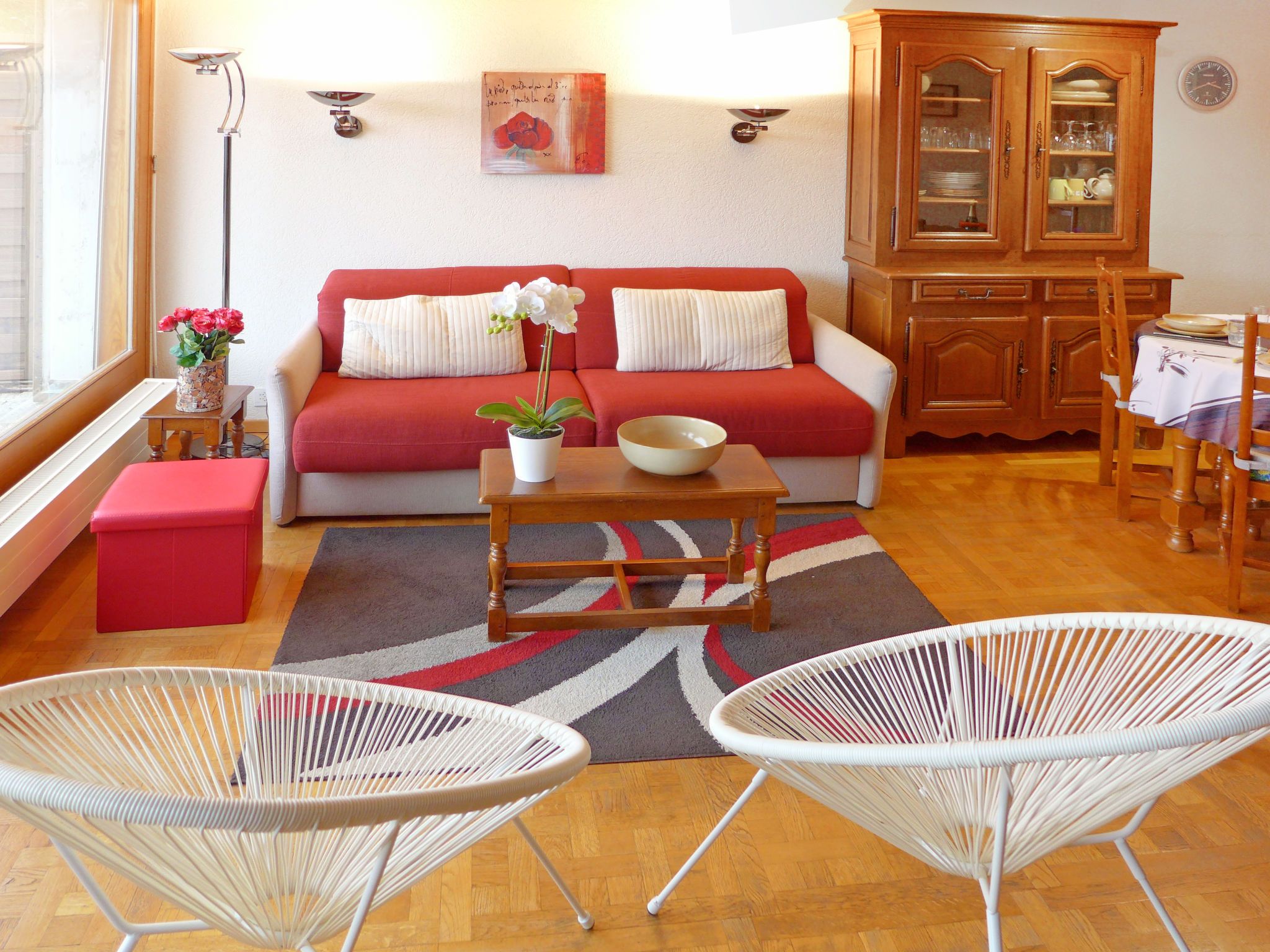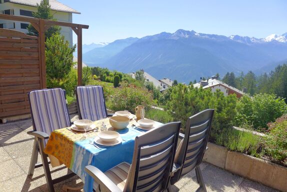 Terrasse Des Alpes 708, 2-Zimmer-Wohnung 54 m2 im 2. Stock. Wohn-/Esszimmer mit 1 Doppeldiwanbett (160 cm, Länge 190 cm), Kabel-TV (Flachbildschirm). 1 Zimmer, ohne Fenster mit 2 Betten (85 cm, Länge 190 cm). Kochnische (Backofen, Geschirrspüler, 4 Glaskeramikplatten, Toaster, Wasserkocher, Mikrowelle, Tiefkühler, elektrische Kaffeemaschine, Kapseln für die Kaffeemaschine (nespresso) extra, Racletteofen, Fondue Set (Käse)). Bad/WC, sep. WC, Whirlbadewanne. Terrasse 16 m2, Südlage. Terrassenmöbel. Schöne Sicht auf die Berge. Zur Verfügung: Bügeleisen, Haartrockner. Internet (Wireless LAN, gratis). Garage Nr. 84, Höhe 200 cm, Breite 220 cm. Bitte beachten: Nichtraucher-Unterkunft.