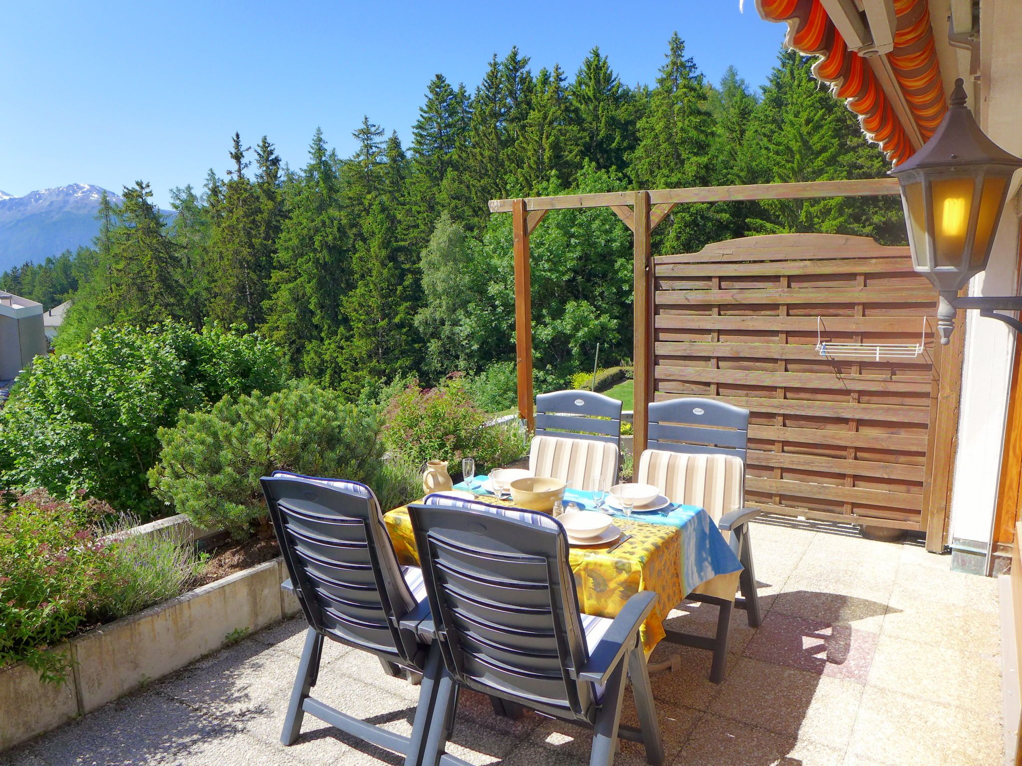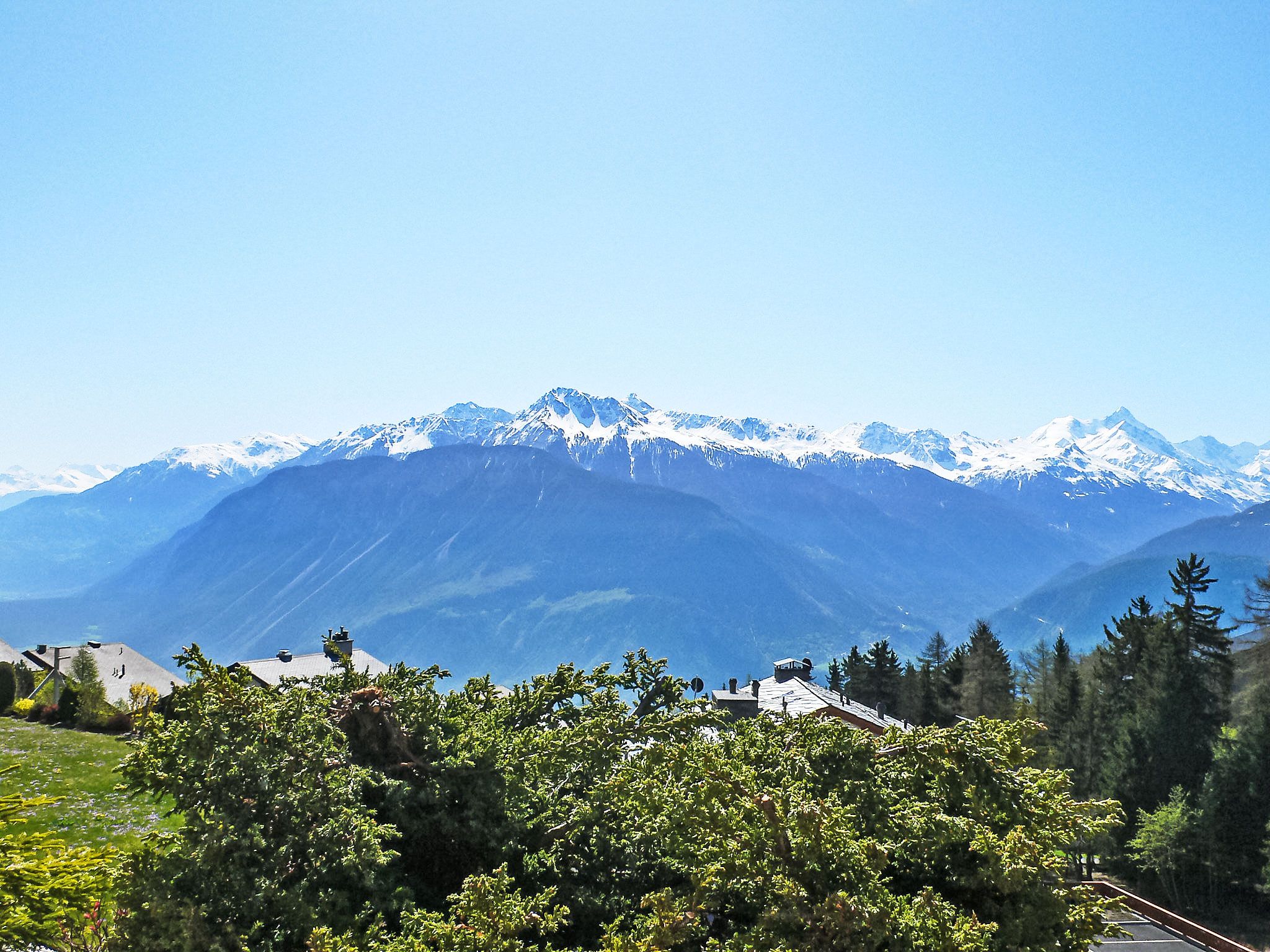 Schwimmbad (ca. 26°) und Sprudelbad (ab 16 Jahre alt) im November geschlossen. Das Gebäude wurde auf einem geneigten Grundstück erbaut. Die Stockwerke werden als Ebenen betrachtet, die ab Residenzboden nummeriert sind. Bei starkem Schneefall, ist es gemäss den Anweisungen des Administrators untersagt, die Terrassen vom Schnee zu räumen. Terrassenhaus Terrasse des Alpes. Im Ortsteil Marigny, 400 m vom Zentrum von Montana, sonnige Lage, 1.5 km vom See, 1.5 km vom Skigebiet, Richtung Südwesten. Zur Mitbenutzung: Hallenbad beheizt (12 x 5 m, saisonale Verfügbarkeit: 01.Jan. - 31.Okt. und z. - z. Öffnungszeiten Schwimmbad: 08:00-20:00). Sprudelbad, Terrasse. Im Hause: Aufenthaltsraum, Fahrstuhl, Skiraum, Zentralheizung, Waschmaschine, Wäschetrockner (zur Mitbenutzung, extra). Einkaufsgeschäft, Supermarkt, Restaurant, Bar, Café 400 m, Zentrum zu Fuss in 5 Minuten erreichbar, Bushaltestelle Montana Poste 300 m, Bahnstation Funiculaire Montana Gare 450 m, Badesee Moubra 1.5 km. Golfplatz (18 Loch) 3.8 km, Skisportanlagen 1.5 km. Bitte beachten: Gratis Skibus.