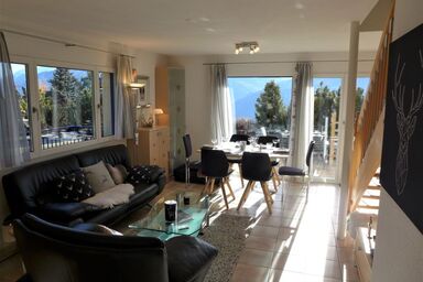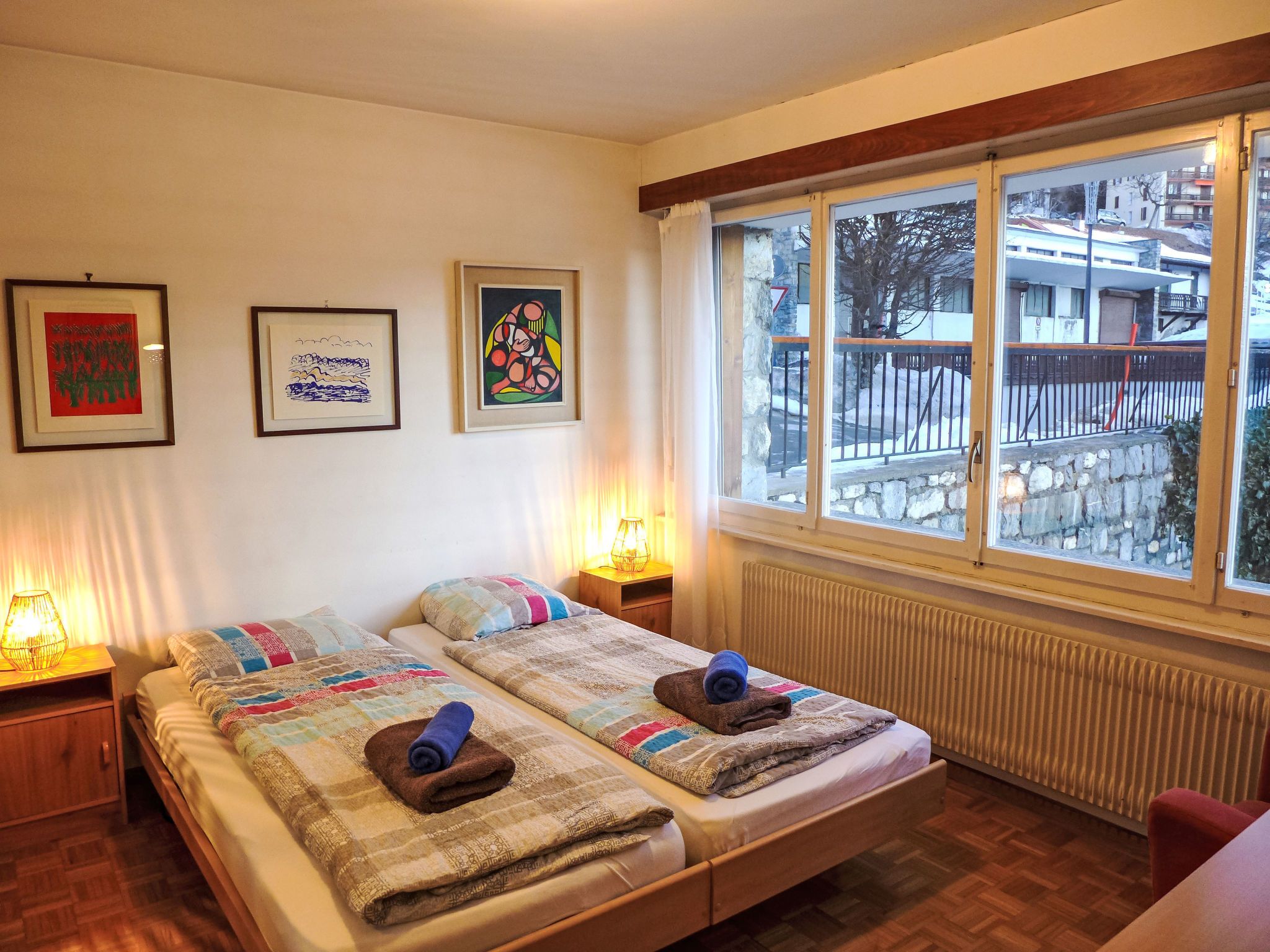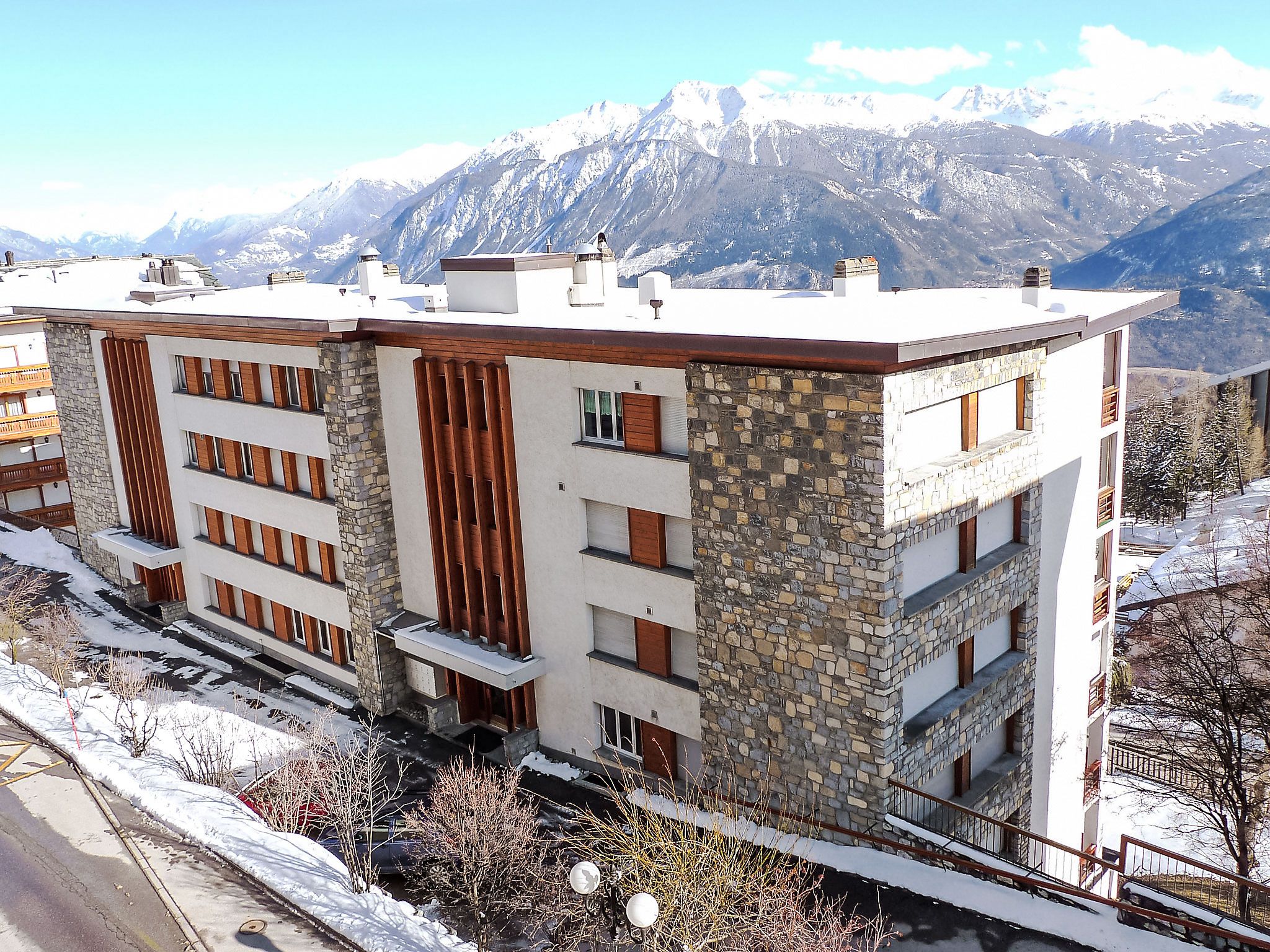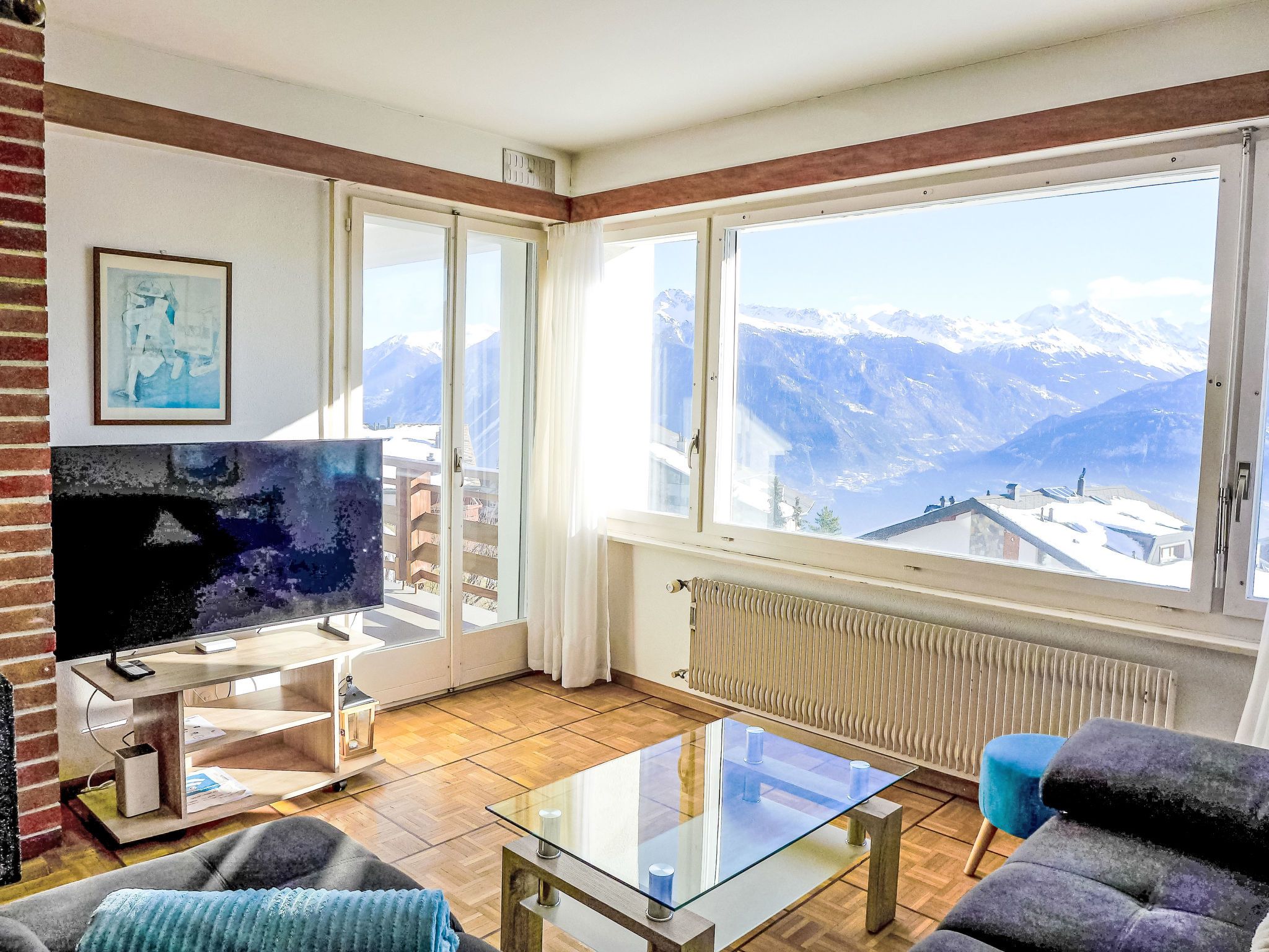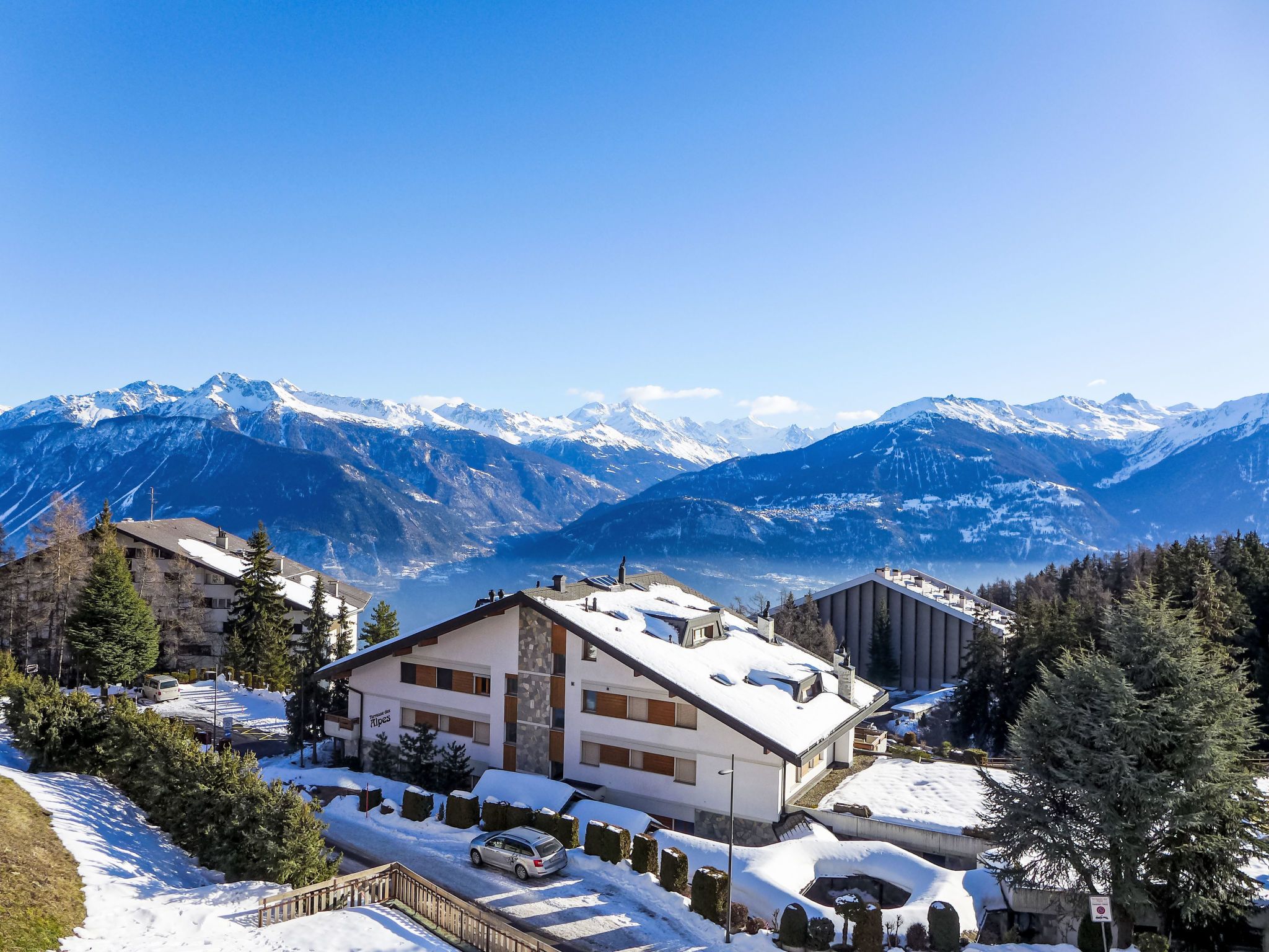 Mehrfamilienhaus Grand Large A/B. Im Ort, 200 m vom Zentrum von Montana, sonnige Lage, 1.1 km vom See, Richtung Süden. Im Hause: Fahrstuhl, Skiraum, Zentralheizung, Waschmaschine, Wäschetrockner (zur Mitbenutzung, extra), Trockenraum. Parkplatz (beschränkte Anzahl). Einkaufsgeschäft 200 m, Supermarkt 240 m, Restaurant, Bäckerei 300 m, Zentrum zu Fuss in 2 Minuten erreichbar, Bushaltestelle Montana Poste 100 m, Bahnstation Funiculaire Montana Gare 210 m, Badesee Moubra 1.7 km, See Grenon 1.1 km. Golfplatz (18 Loch) 2.2 km, Skisportanlagen 1 km. Bekannte Seen in der Umgebung sind gut erreichbar: Lac de la Moubra 1.7 km, Etang Long 2.2 km. Bitte beachten: Gratis Skibus. Die Stockwerke müssen als Ebenen betrachtet werden (ab Residenzboden gerechnet).