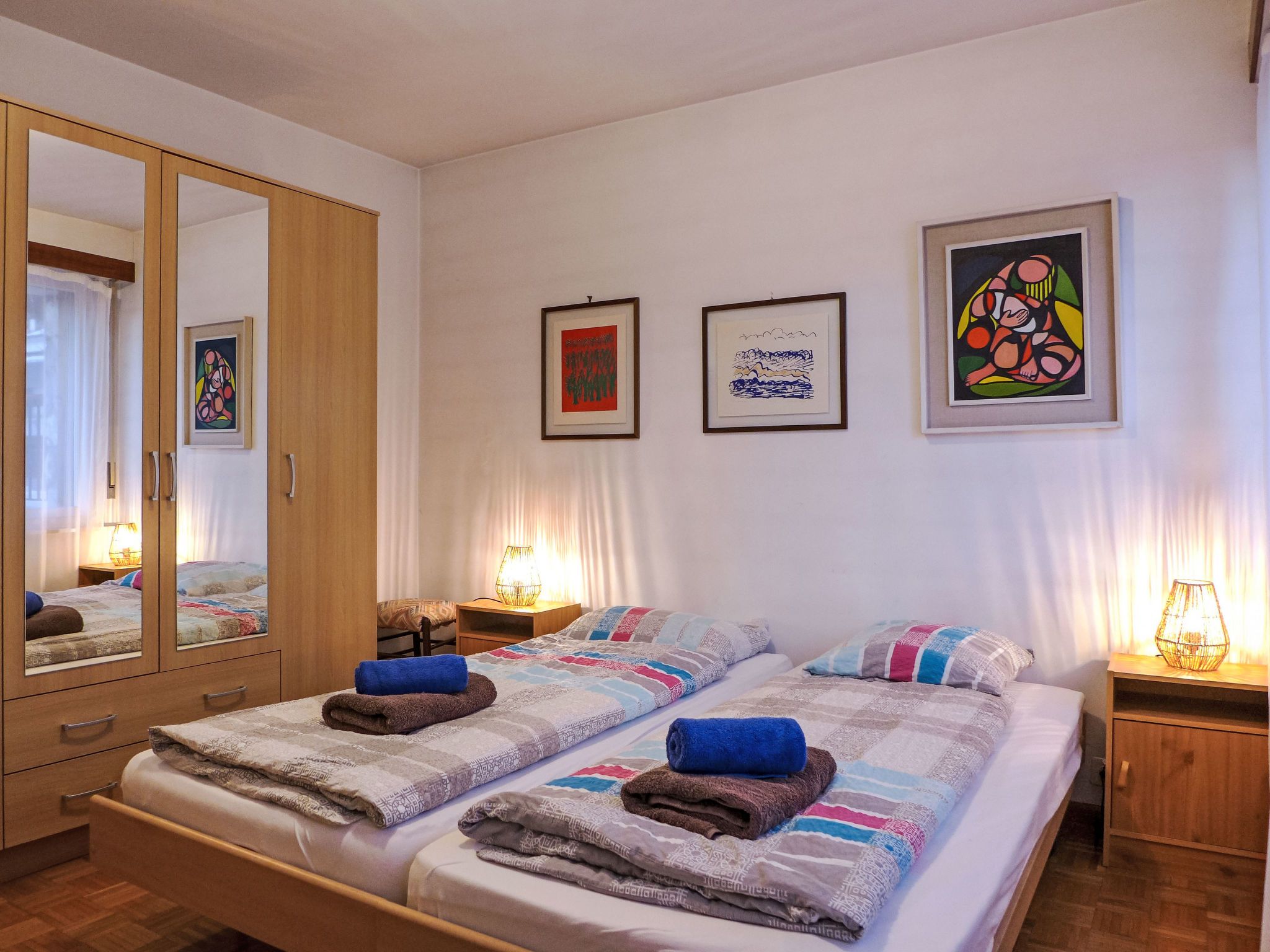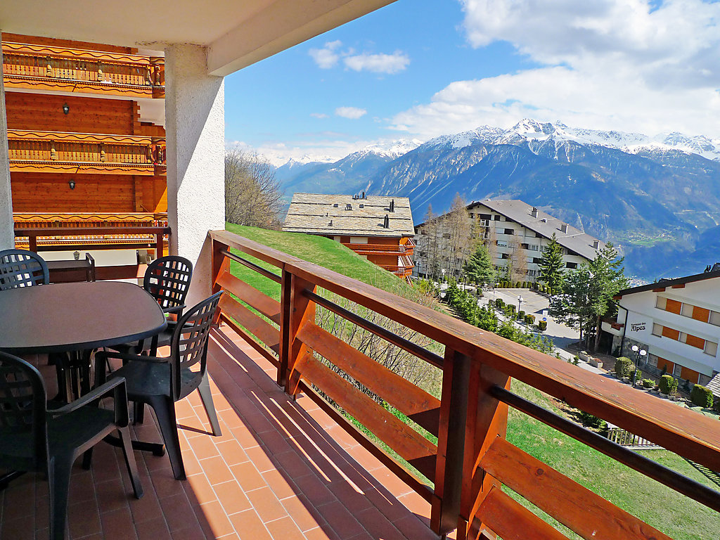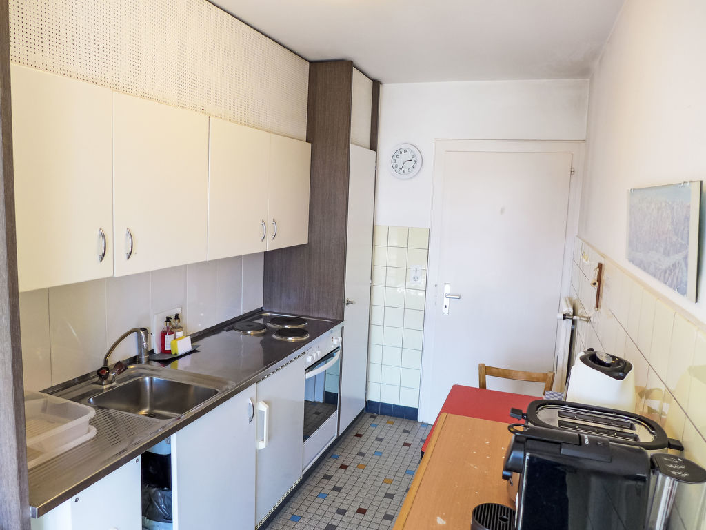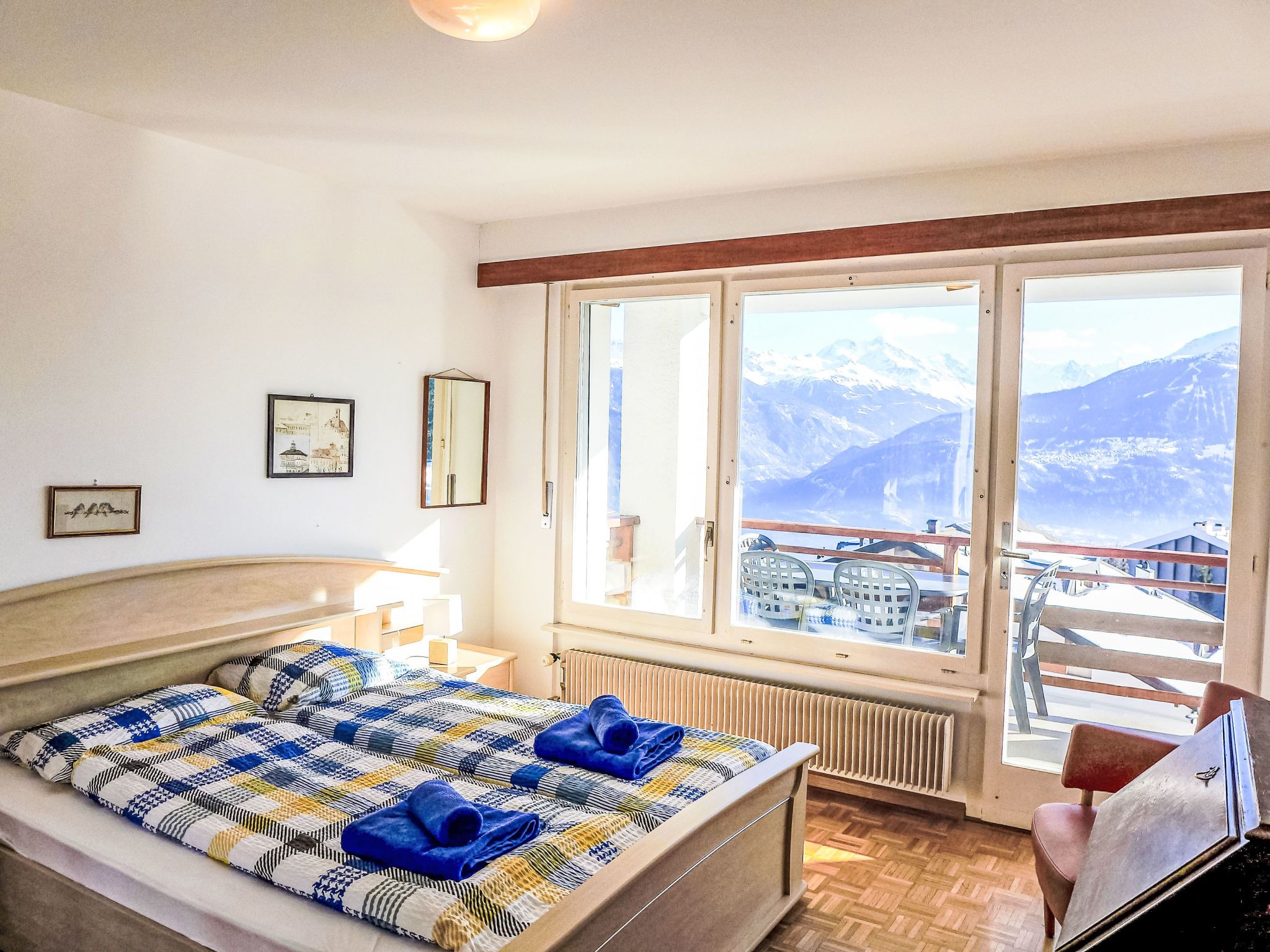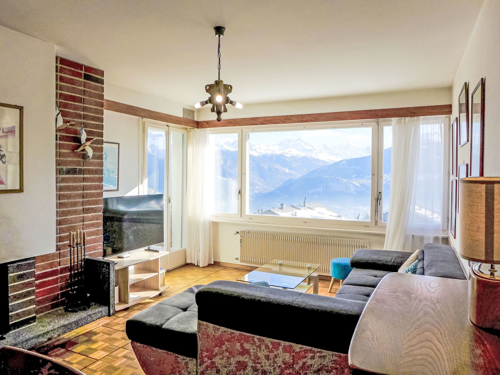 Mehrfamilienhaus Grand Large A/B. Im Ort, 200 m vom Zentrum von Montana, sonnige Lage, 1.1 km vom See, Richtung Süden. Im Hause: Fahrstuhl, Skiraum, Zentralheizung, Waschmaschine, Wäschetrockner (zur Mitbenutzung, extra), Trockenraum. Parkplatz (beschränkte Anzahl). Einkaufsgeschäft 200 m, Supermarkt 240 m, Restaurant, Bäckerei 300 m, Zentrum zu Fuss in 2 Minuten erreichbar, Bushaltestelle Montana Poste 100 m, Bahnstation Funiculaire Montana Gare 210 m, Badesee Moubra 1.7 km, See Grenon 1.1 km. Golfplatz (18 Loch) 2.2 km, Skisportanlagen 1 km. Bekannte Seen in der Umgebung sind gut erreichbar: Lac de la Moubra 1.7 km, Etang Long 2.2 km. Bitte beachten: Gratis Skibus. Die Stockwerke müssen als Ebenen betrachtet werden (ab Residenzboden gerechnet).