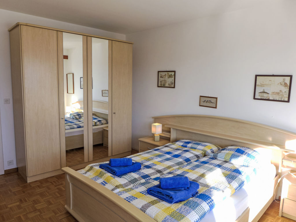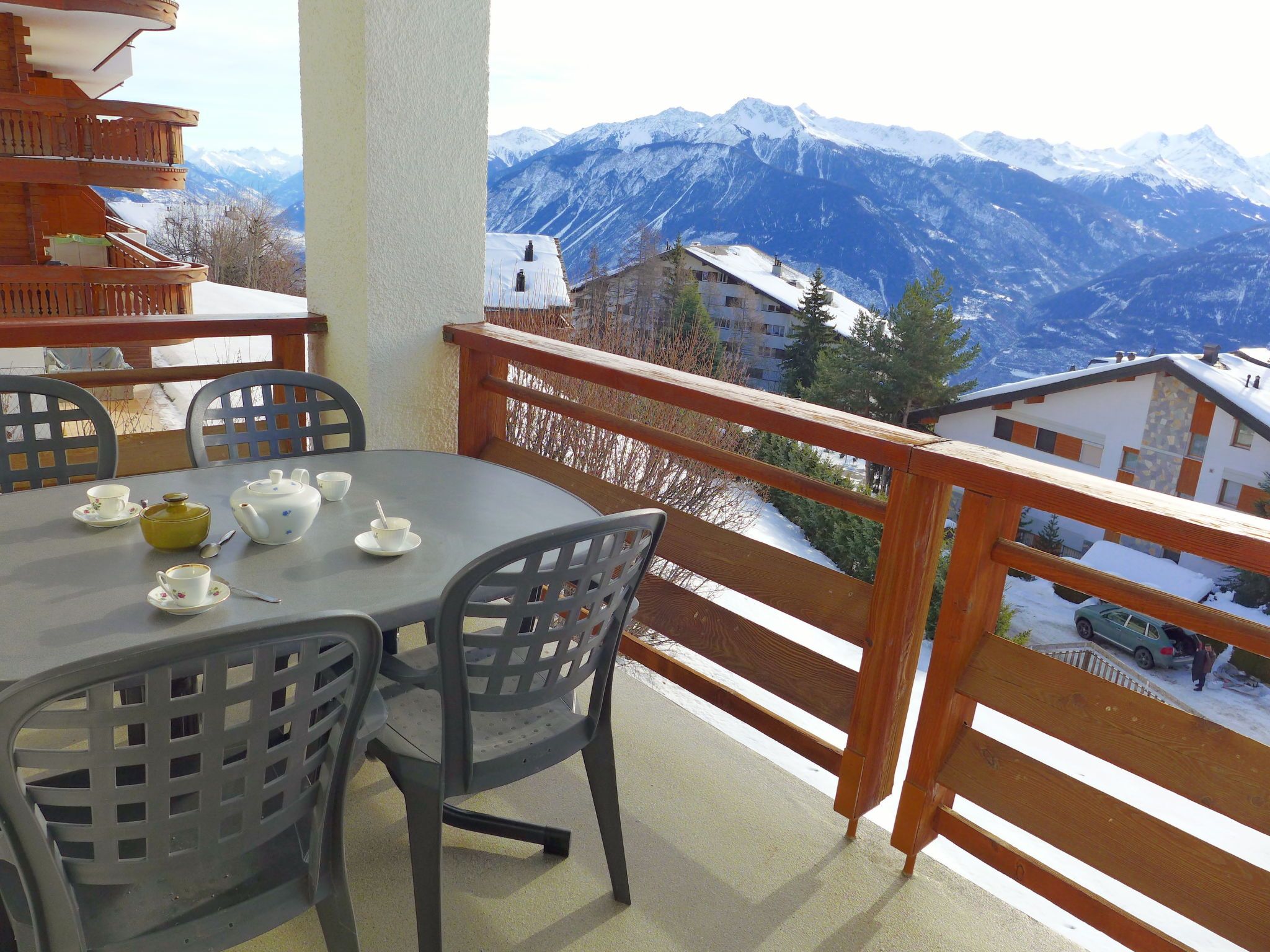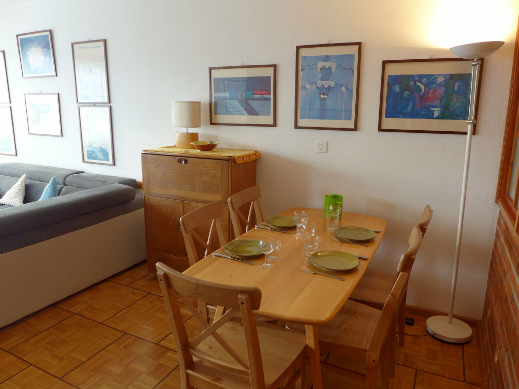 Grand Large A 18, 3-Zimmer-Wohnung 78 m2 im 3. Stock. Wohn-/Esszimmer mit offenem Kamin und Kabel-TV. Ausgang zum Balkon. 1 Zimmer, Richtung Osten mit 2 Betten (90 cm, Länge 190 cm). 1 Zimmer mit 1 franz. Bett (160 cm, Länge 200 cm). Ausgang zum Balkon, Richtung Süden. Küche (3 Kochplatten, Backofen, Toaster, Wasserkocher, Mikrowelle, elektrische Kaffeemaschine, Kapseln für die Kaffeemaschine (NESPRESSO) extra, Racletteofen, Fondue Set (Käse)). Bad/Bidet/WC. Balkon, Südlage. Balkonmöbel. Sehr schöne Sicht auf die Berge. Zur Verfügung: Haartrockner. Internet (Wireless LAN, gratis). Garage Nr. 8 in 400 m, Höhe 205 cm, Breite 245 cm. Bitte beachten: Nichtraucher-Unterkunft. Garagenplatz in der Residenz Curling. Boiler 120 Liter: begrenzte Kapazität.