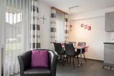44 m2. Weitere Angaben des Anbieters: Diese gemütliche Ferienwohnung befindet sich im Erdgeschoss eines Einfamilienhauses und eignet sich ideal für zwei Personen. Die ruhige Umgebung sowie der grosse Umschwung mit Liegewiese und überdachtem Grillplatz laden zum Entspannen ein. Von hier aus geniesst du eine schöne Aussicht auf die umliegende Berglandschaft. Ein kostenloser Parkplatz steht direkt vor dem Haus zur Verfügung. Die Wohnung ist modern und komfortabel eingerichtet. Im Schlafzimmer erwartet dich ein Doppelbett. Der Wohnbereich verfügt über TV, Radio, CD-Player und Internetanschluss. Die Küche mit integriertem Essbereich ist vollständig ausgestattet, unter anderem mit Kaffeemaschine, Wasserkocher und Toaster. Auch ein Fondueset und ein Raclettenofen stehen zur Verfügung. Eine Waschmaschine, ein Trockner und ein Bügeleisen im Nebenraum können kostenlos genutzt werden. Mietpreis inklusive: Bett-, Frottier- und Küchenwäsche, Strom und Parkplatz Mietpreis exklusive: Endreinigung und Kurtaxen.