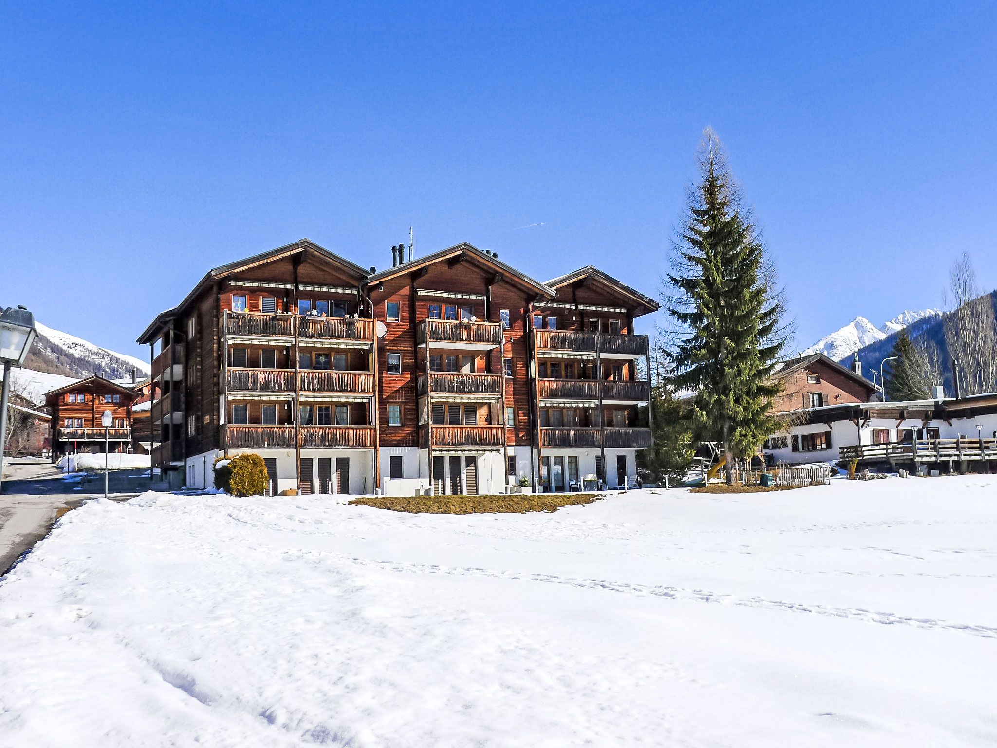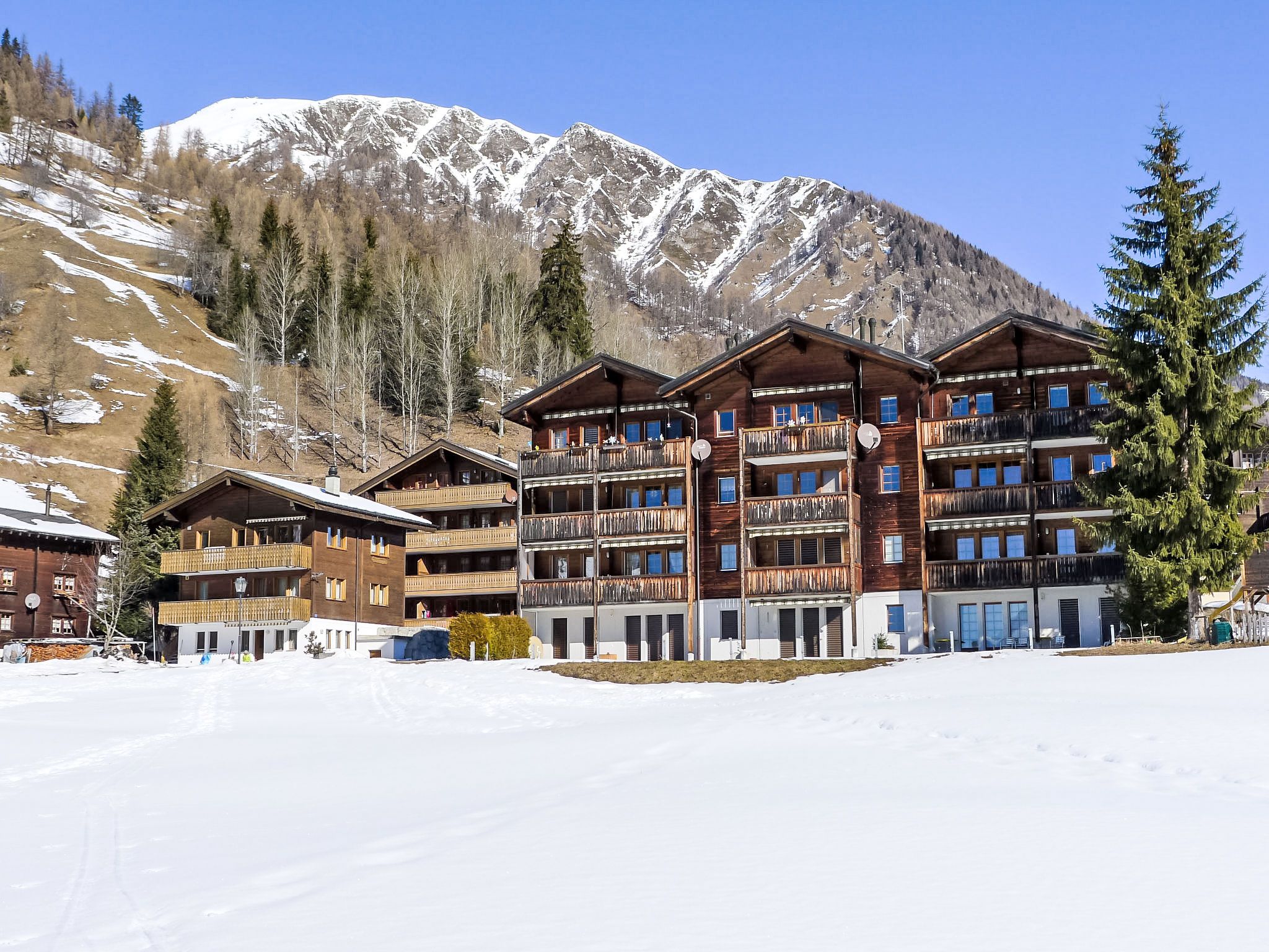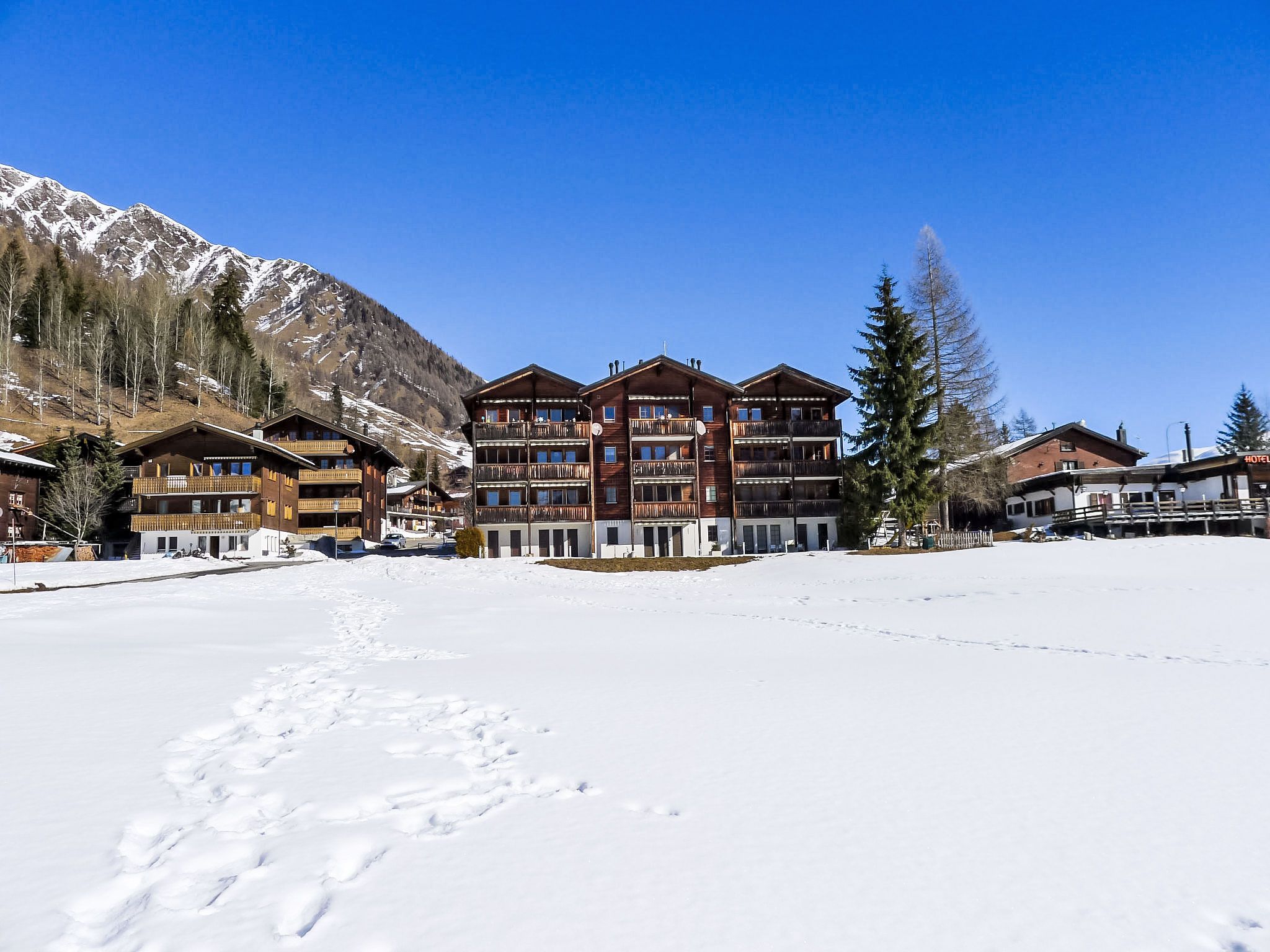 Kinderfreundliches, schönes Appartementhaus Diana, Baujahr 1994, umgeben von Bäumen und Wiesen. Im Ort, 500 m vom Zentrum, ruhige, sonnige Lage, an einer Strasse. Zur Mitbenutzung: Garten, Liegewiese. Kinderspielplatz (Rutschbahn, Schaukel, Sandkasten). Im Hause: Fahrstuhl, Einstellraum für Fahrräder, Skiraum, Zentralheizung, Waschmaschine, Wäschetrockner (zur Mitbenutzung, extra). Zufahrt bis zum Haus. Parkplatz beim Haus. Einkaufsgeschäft, Lebensmittelgeschäft 300 m, Restaurant 100 m, Bushaltestelle Münster VS, Post 500 m, Bahnstation Münster 200 m. Wanderwege ab Haus 50 m, Skisportanlagen 1 km, Langlaufloipe 50 m. Garageneinstellplatz CHF 30.00/Woche auf Anfrage.
