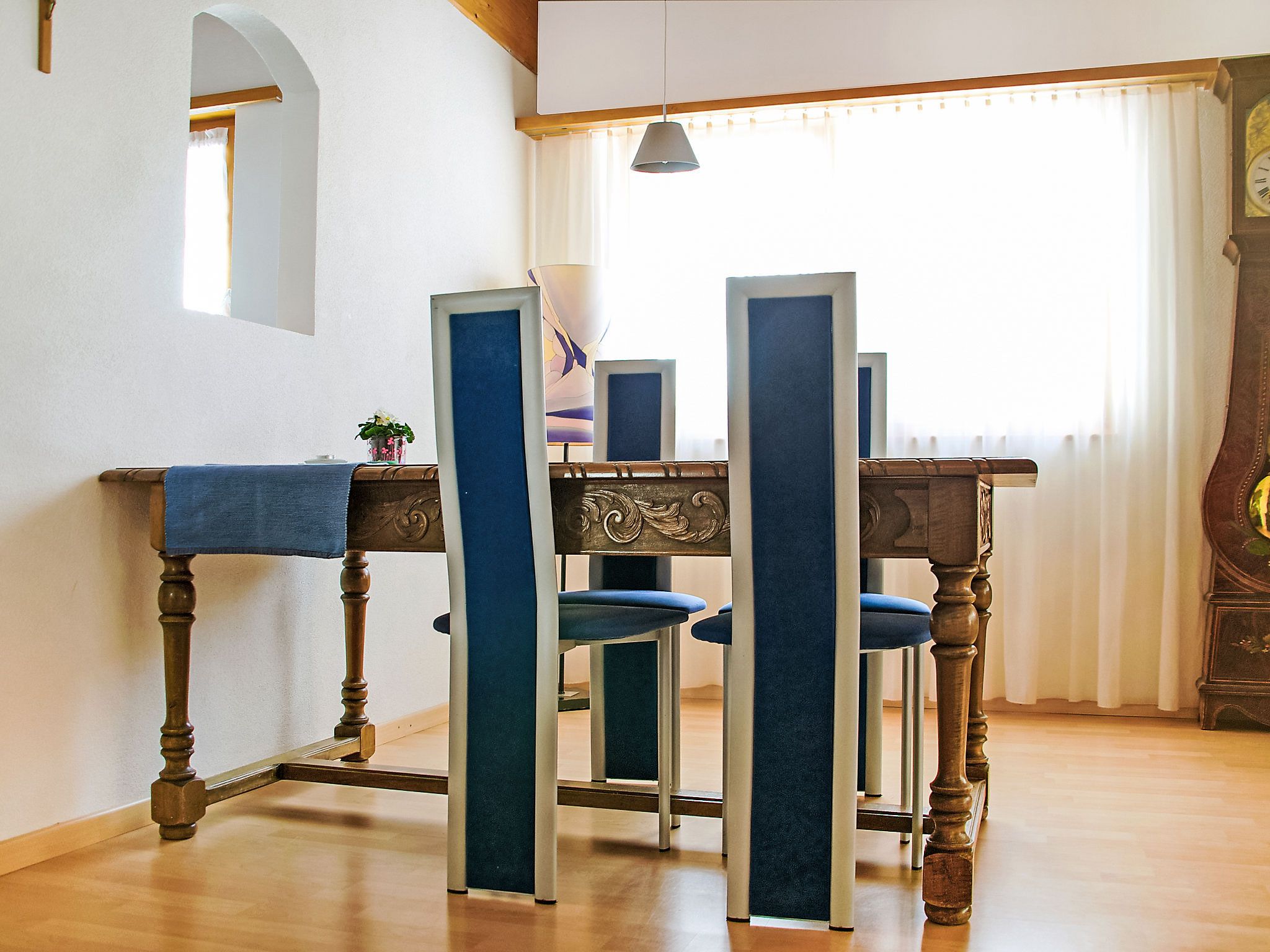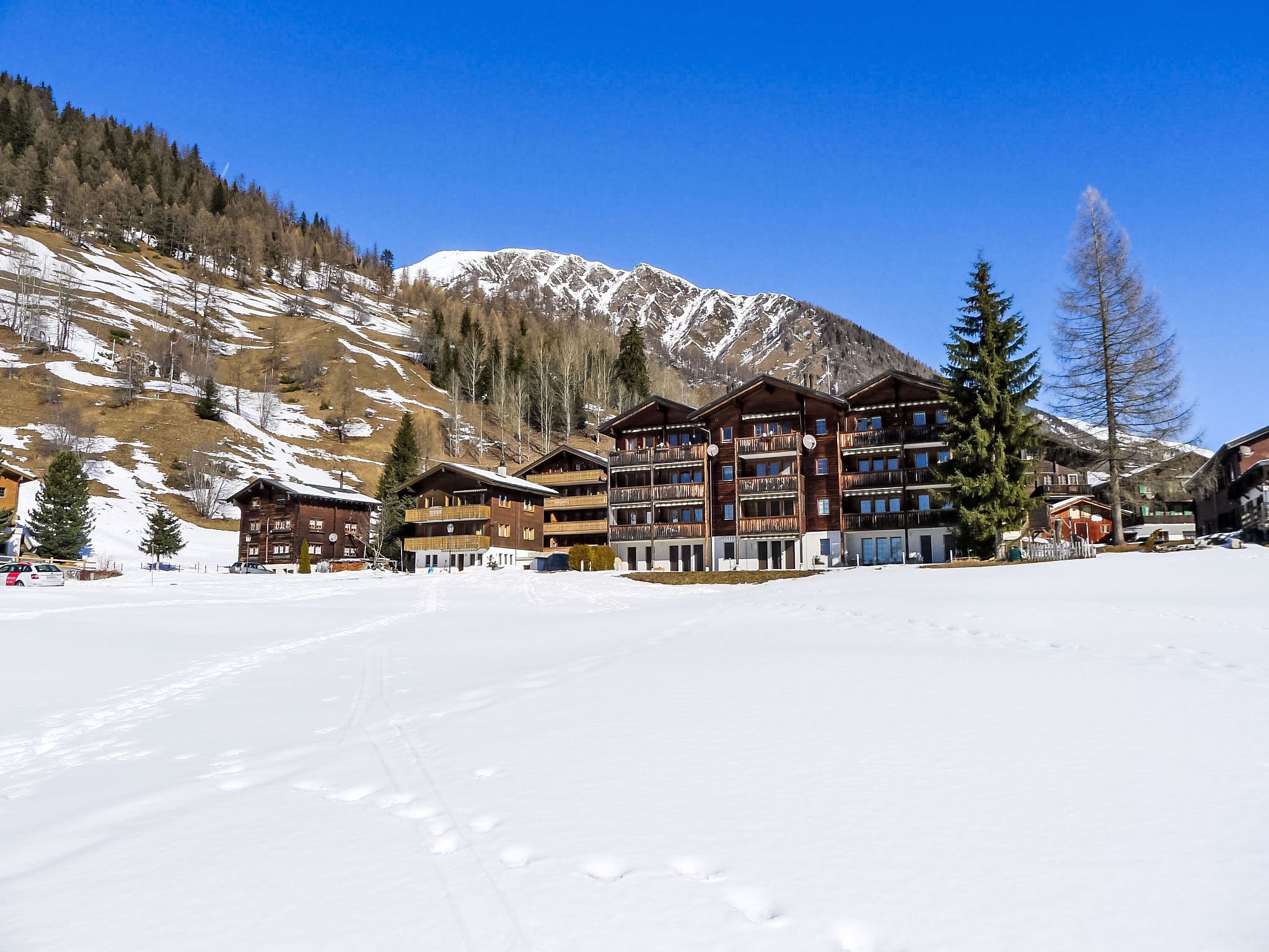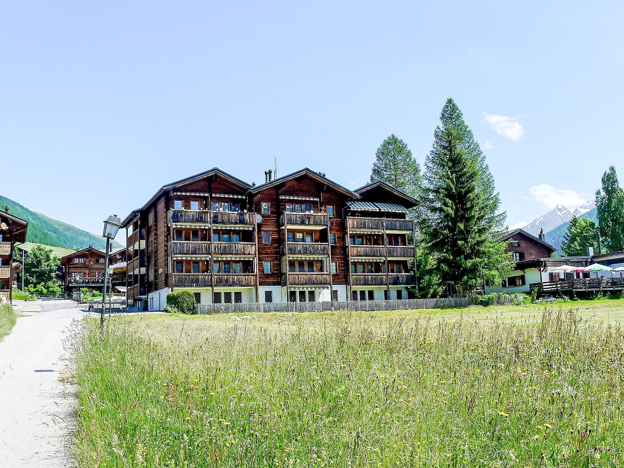 Kinderfreundliches, schönes Appartementhaus Diana, Baujahr 1994, umgeben von Bäumen und Wiesen. Im Ort, 500 m vom Zentrum, ruhige, sonnige Lage, an einer Strasse. Zur Mitbenutzung: Garten, Liegewiese. Kinderspielplatz (Rutschbahn, Schaukel, Sandkasten). Im Hause: Fahrstuhl, Einstellraum für Fahrräder, Skiraum, Zentralheizung, Waschmaschine, Wäschetrockner (zur Mitbenutzung, extra). Zufahrt bis zum Haus. Parkplatz beim Haus. Einkaufsgeschäft, Lebensmittelgeschäft 300 m, Restaurant 100 m, Bushaltestelle Münster VS, Post 500 m, Bahnstation Münster 200 m. Wanderwege ab Haus 50 m, Skisportanlagen 1 km, Langlaufloipe 50 m. Garageneinstellplatz CHF 30.00/Woche auf Anfrage.