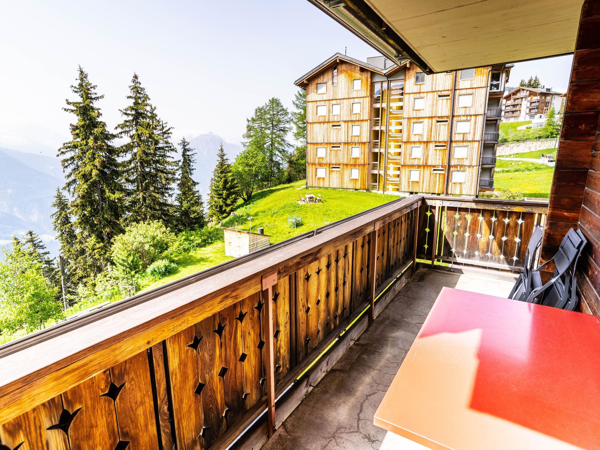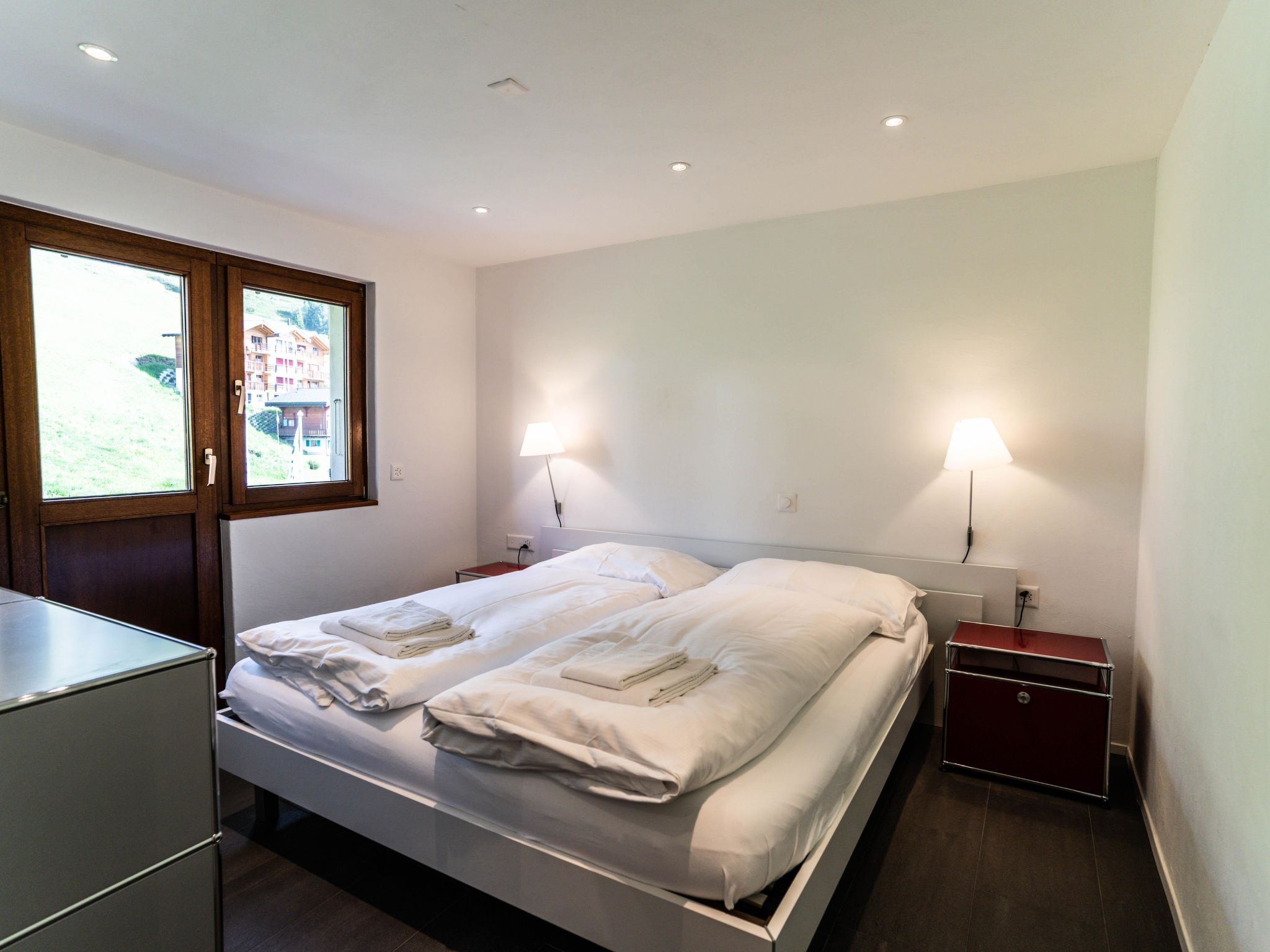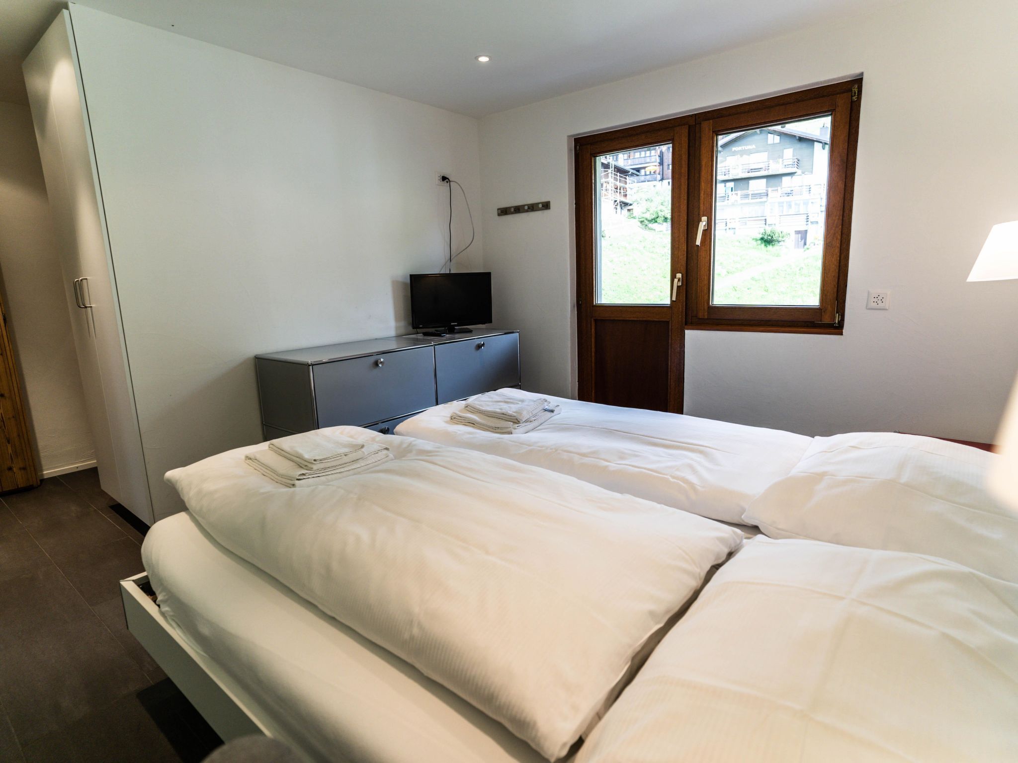 75 m2. Weitere Angaben des Anbieters: Das Haus Sportina liegt auf dem autofreien Hochplateau der Riederalp, etwa zehn Gehminuten von der Bergstation der Grosskabinenbahn Riederalp Mitte entfernt. Die Nähe zur Gletscherbahn Moosfluh ermöglicht einen direkten Zugang ins Ski- und Wandergebiet der Aletscharena sowie zu den Aussichtspunkten mit Blick auf den Aletschgletscher. Die ruhige Lage und die gute Erreichbarkeit von Einkaufsmöglichkeiten, Restaurants und Freizeitangeboten machen das Haus zu einem komfortablen Ausgangspunkt für aktive Ferientage. Im selben Gebäude befindet sich das Sportgeschäft INTERSPORT Bürcher Alpin, das eine praktische Ergänzung für sportlich interessierte Gäste bietet. Die Wohnung im 2. Obergeschoss des Hauses Sportina bietet Platz für 1 bis 5 Personen und kombiniert modernen Komfort mit einer gemütlichen Atmosphäre. Sie verfügt über zwei Schlafzimmer mit Doppelbetten, wobei eines zusätzlich mit einer eigenen Dusche/WC ausgestattet ist. Im Wohnzimmer befindet sich ein Esstisch sowie ein Schrankbett. Das Hauptbadezimmer ist mit Badewanne und WC ausgestattet. Die offene Küche ist mit Geschirrspüler und Nespresso-Kaffeemaschine eingerichtet. Fussbodenheizung, TV und kostenloses WLAN sorgen für zusätzlichen Komfort. Zwei Balkone in Süd- und Westrichtung bieten Ausblick auf die Walliser Alpen. Ein Lift, ein Skikeller mit Schuhtrockner sowie eine Waschküche im Keller stehen zur Verfügung. Mietpreis exklusive: Bettwäsche, Endreinigung, Kurtaxe Extras: Babybett und Kinderstuhl auf Anfrage. Haustiere auf Anfrage gegen Aufpreis erlaubt.