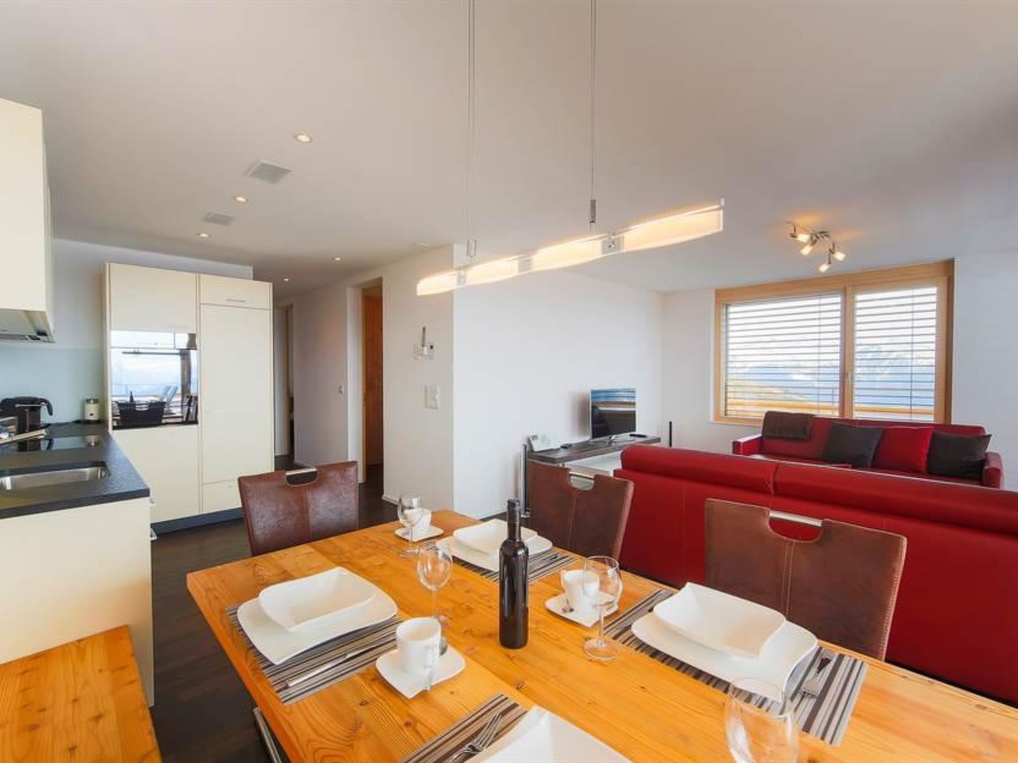 83 m2. Weitere Angaben des Anbieters: Das Apartmenthaus Riederhoru A liegt direkt bei der Bergstation der Gondelbahn Mörel – Riederalp West und bietet eine ruhige, südlich ausgerichtete Lage mit freier Sicht auf die Walliser Alpen. In unmittelbarer Nähe findest du verschiedene Einkaufsmöglichkeiten, Restaurants, einen Spielplatz, Tennisplatz sowie Sportgeschäfte und eine Wellnessoase. Auch die Sesselbahnen Riederfurka und Hohfluh sind bequem erreichbar. Im Winter gelangst du mit den Skiern direkt vom Haus zur Talstation des Sessellifts und wieder zurück. Im Sommer startest du Wanderungen in der Aletschregion direkt vor der Haustür. Das Haus entspricht dem Minergie-Standard und basiert auf einem ökologischen Energiekonzept mit Erdsonden-Wärmepumpe. Die Ferienwohnung „Nico“ verfügt über zwei Schlafzimmer und zwei Badezimmer. Eines der Zimmer ist mit einem Doppelbett und einem eigenen Badezimmer mit Badewanne, WC und Waschtisch ausgestattet. Das zweite Zimmer bietet zwei Einzelbetten sowie einen eigenen Fernseher. Das zweite Bad verfügt über eine bodenebene Dusche mit Regenbrause, WC und Waschtisch. Die offene Küche ist umfassend ausgestattet mit Backofen, Steamer, Kochfeld, Geschirrspüler, Kaffeemaschine und mehr. Der Wohnbereich mit ausziehbarem Sofa und TV schliesst direkt an. Der nach Süden ausgerichtete Balkon bietet einen freien Blick auf die Walliser Bergwelt. Ein gemeinsamer Ski- und Veloraum steht zur Verfügung. Mietpreis exklusive: Kurtaxe, Endreinigung, Bett-, Frottier- und Küchenwäsche.