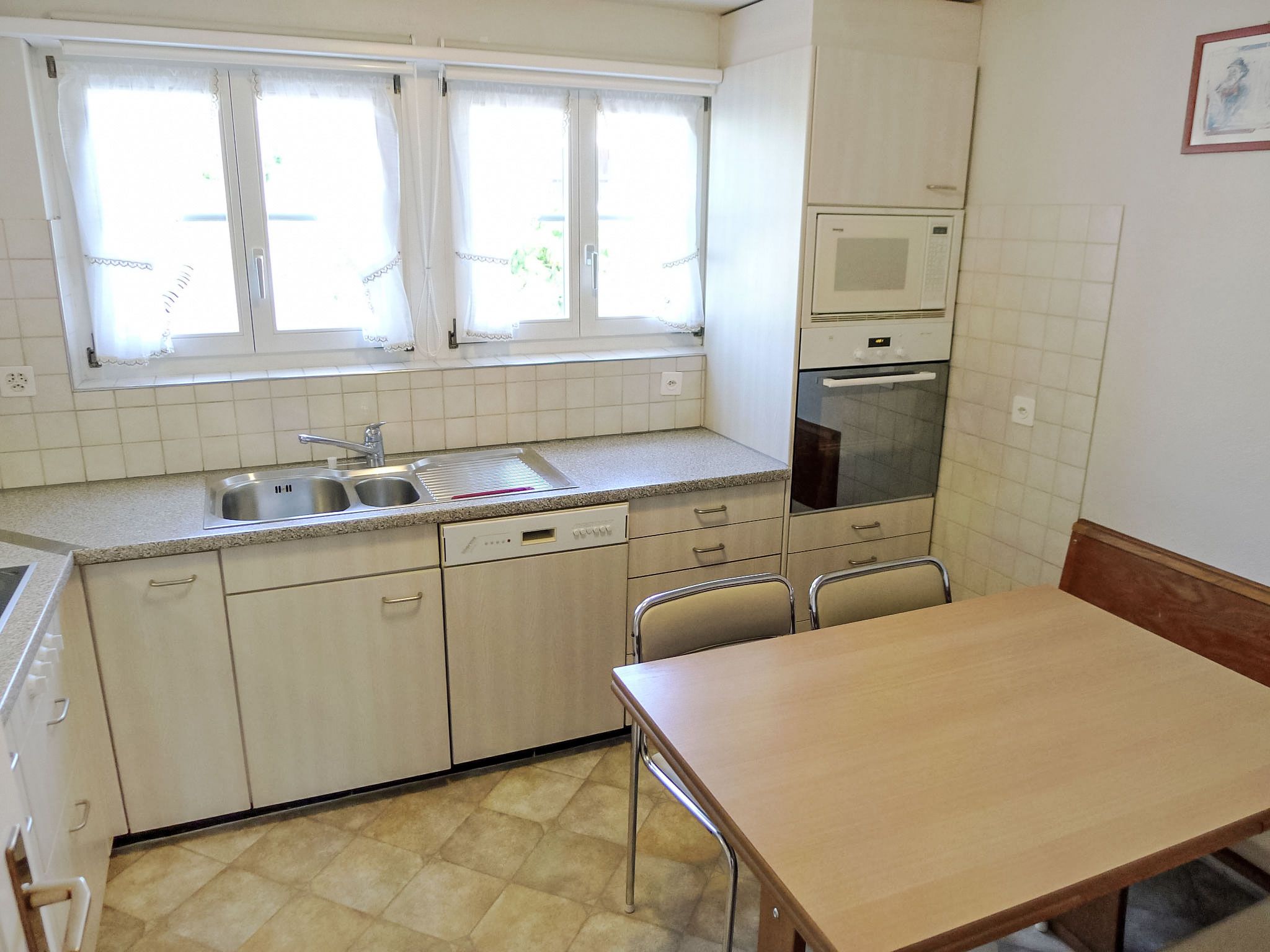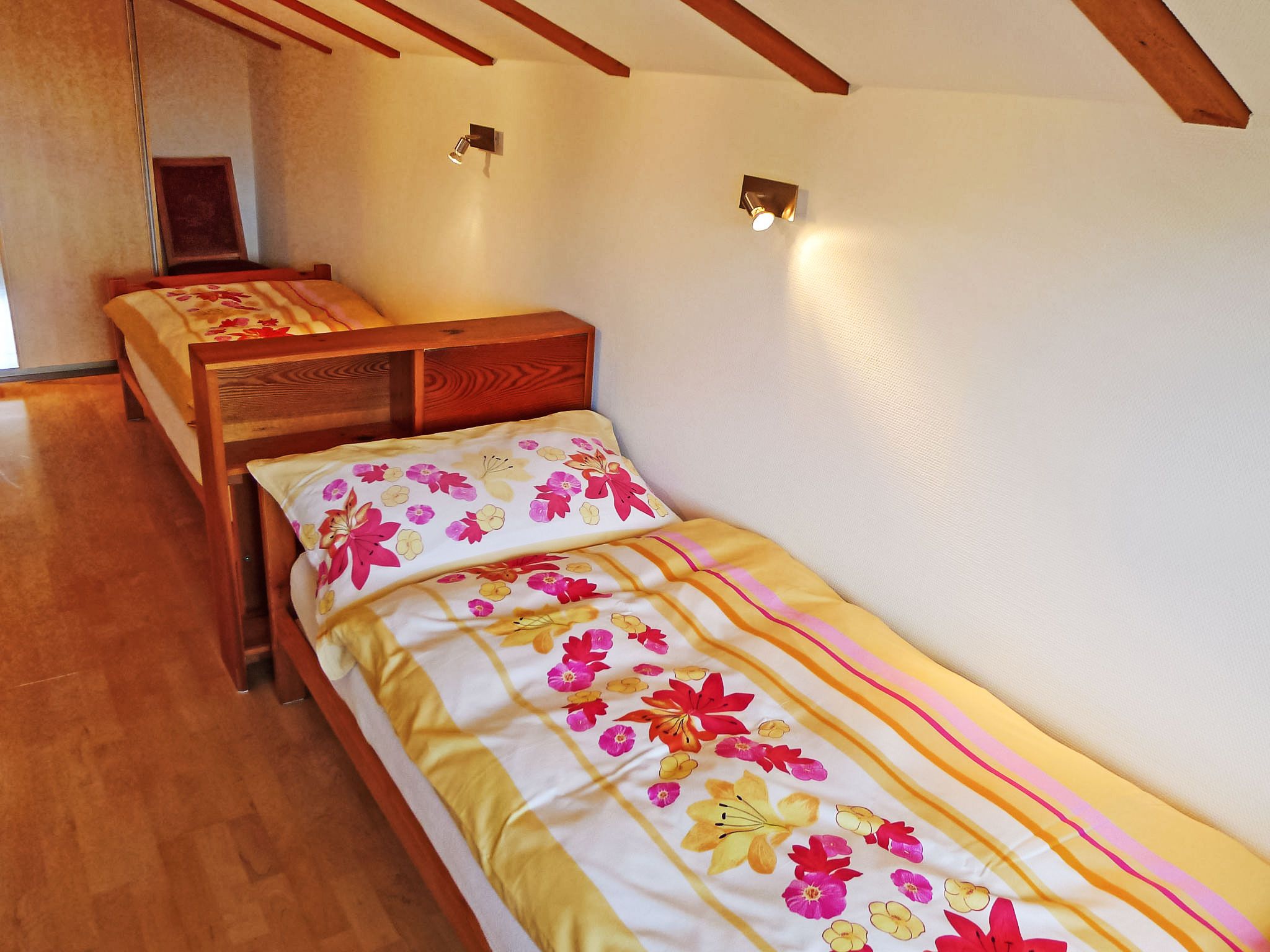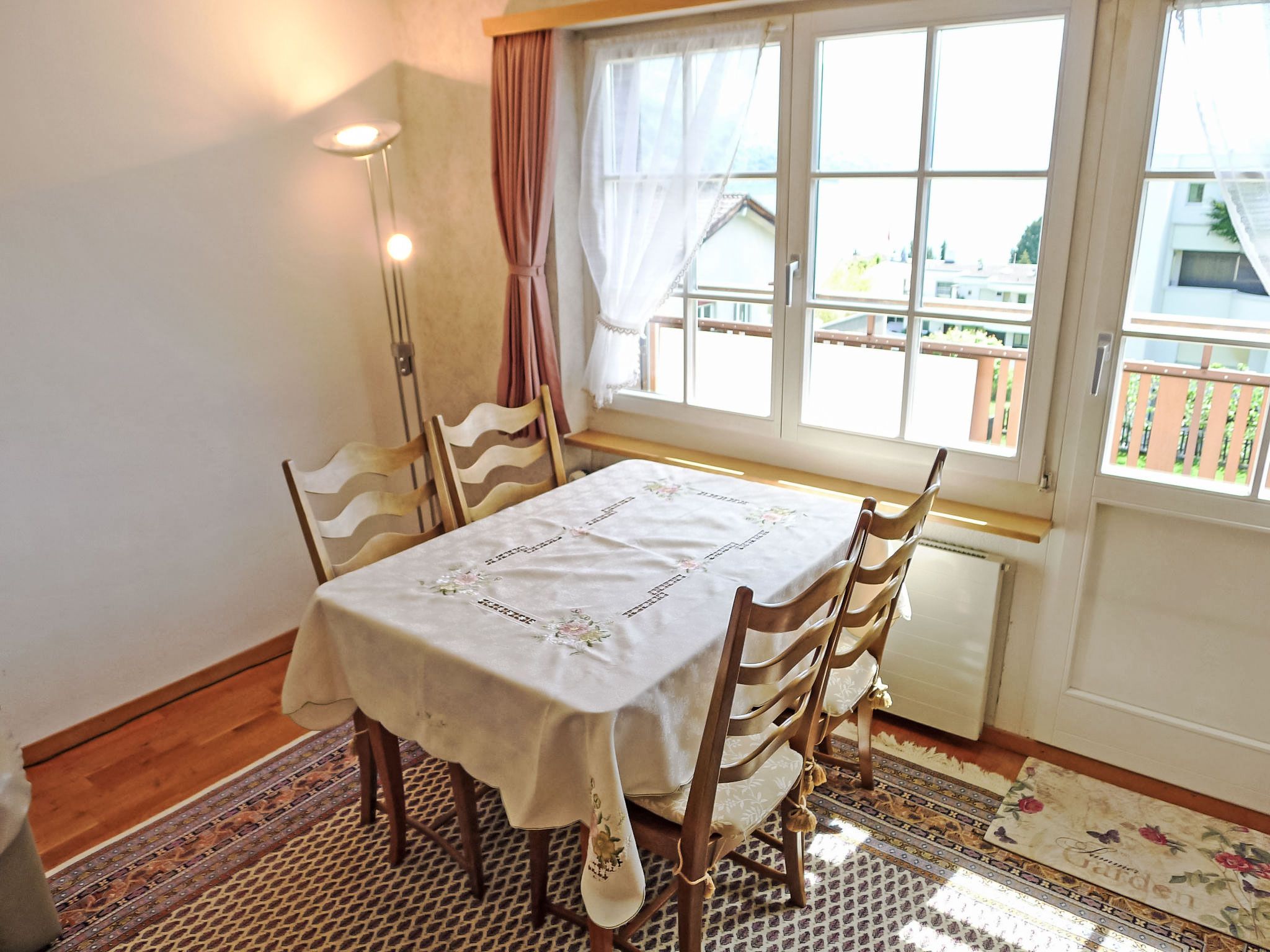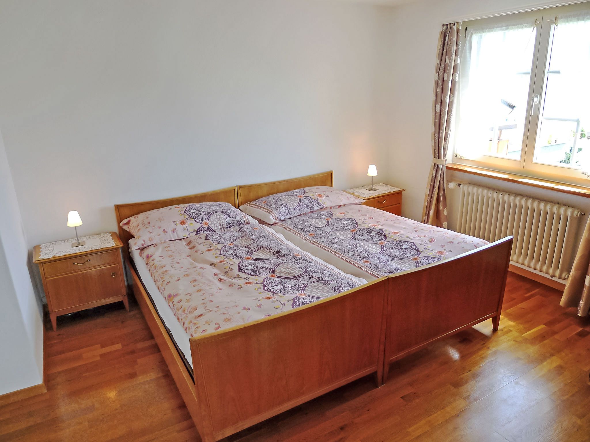 4-Zimmer-Wohnung 65 m2 im 2. Stock. Zweckmässig und gemütlich eingerichtet: Wohn-/Esszimmer 15 m2 mit Sat-TV (Flachbildschirm), Radio und CD. Ausgang zum Balkon. 1 Doppelzimmer 15 m2. 1 abgeschrägtes Zimmer 7 m2 mit 2 Betten. 1 Zimmer 12 m2 mit 1 Bett. Küche (Backofen, Geschirrspüler, 4 Glaskeramikplatten, Mikrowelle, Tiefkühler) mit Esstisch. Bad/WC. 2 Balkone. Schöne Sicht auf den See, die Berge und die Ortschaft. Zur Verfügung: Internet (Wireless LAN, gratis). Parkplatz beim Haus. Bitte beachten: Nichtraucher-Unterkunft.