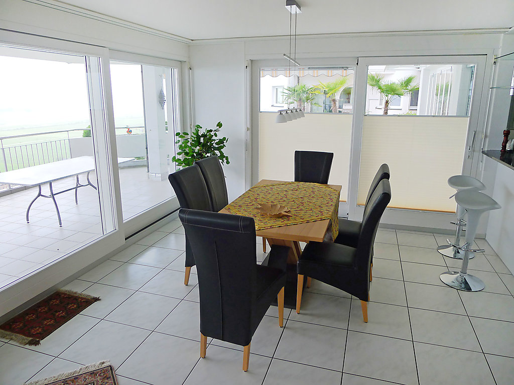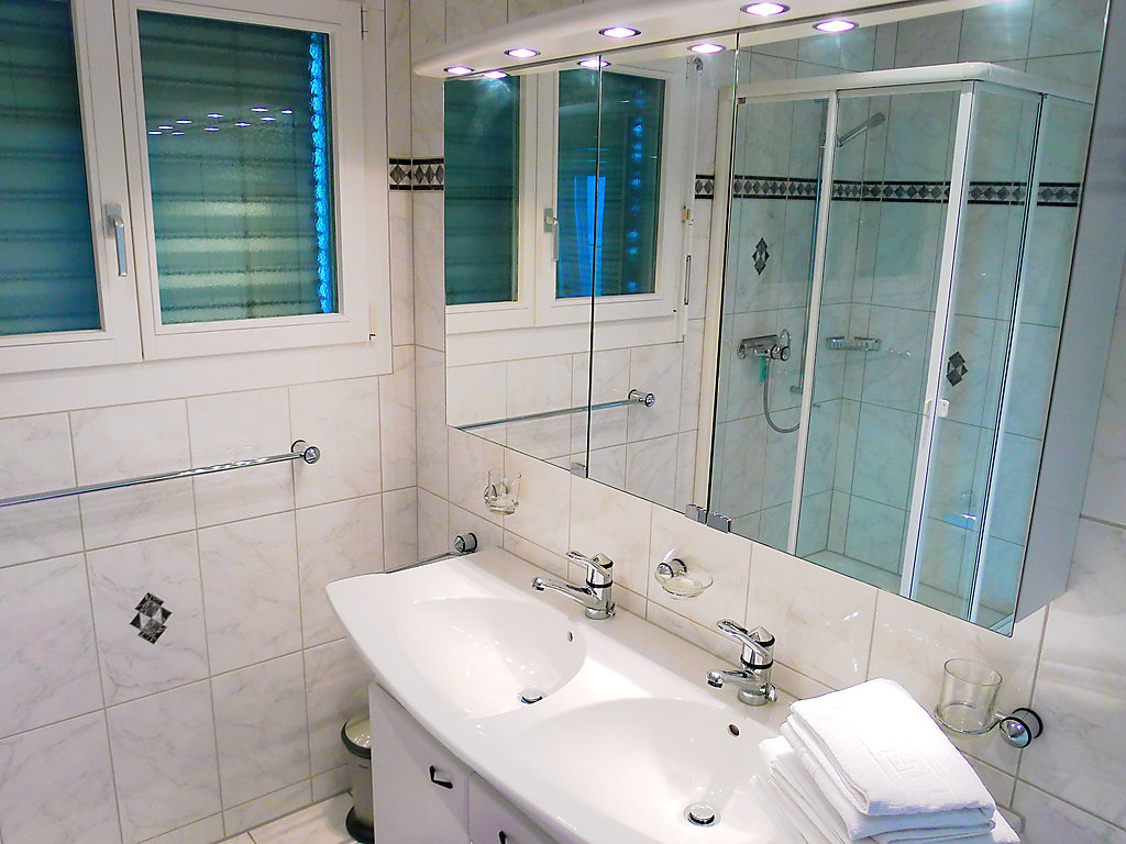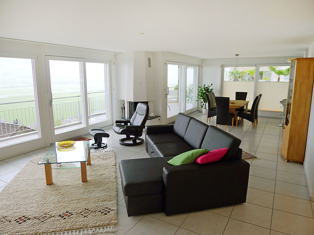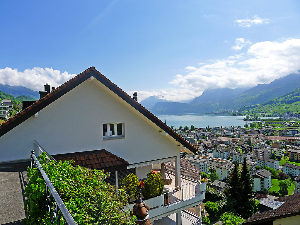 4-Zimmer-Wohnung 120 m2 auf 2 Stockwerken. Teilweise renoviert im Jahre 2012, komfortabel und schön eingerichtet: Wohn-/Esszimmer mit Essecke, Kabel-TV, Flachbildschirm und Stereoanlage. Ausgang zur Terrasse. 1 Doppelzimmer mit 1 Doppelbett, Bad/Dusche/WC und Doppelwaschbecken. Ausgang zur Terrasse. Offene Küche (Backofen, Geschirrspüler, 4 Glaskeramikplatten, Mikrowelle, elektrische Kaffeemaschine, Racletteofen, Fondue Set (Käse)) mit Bar. Sep. WC. Unteres Geschoss: Salon mit Kabel-TV (Flachbildschirm), Stereoanlage. 1 Doppelzimmer mit 1 Doppelbett. Kochnische (Backofen, Geschirrspüler, 2 Glaskeramikplatten, elektrische Kaffeemaschine). Ausgang zur Terrasse. Dusche/WC. 2 grosse Terrassen. Terrassenmöbel, Gartengrill, Liegestühle, Wintergarten. Herrliche Panoramasicht auf den See, die Berge und die Landschaft. Zur Verfügung: Waschmaschine, Wäschetrockner, Bügeleisen. Internet (Wireless LAN, gratis). Parkplatz beim Haus. Bitte beachten: Nichtraucher-Unterkunft. Bitte beachten: Es handelt sich um 2 Wohnungen mit geöffneter Verbindungstür (CH6373.100.1 +.2).
