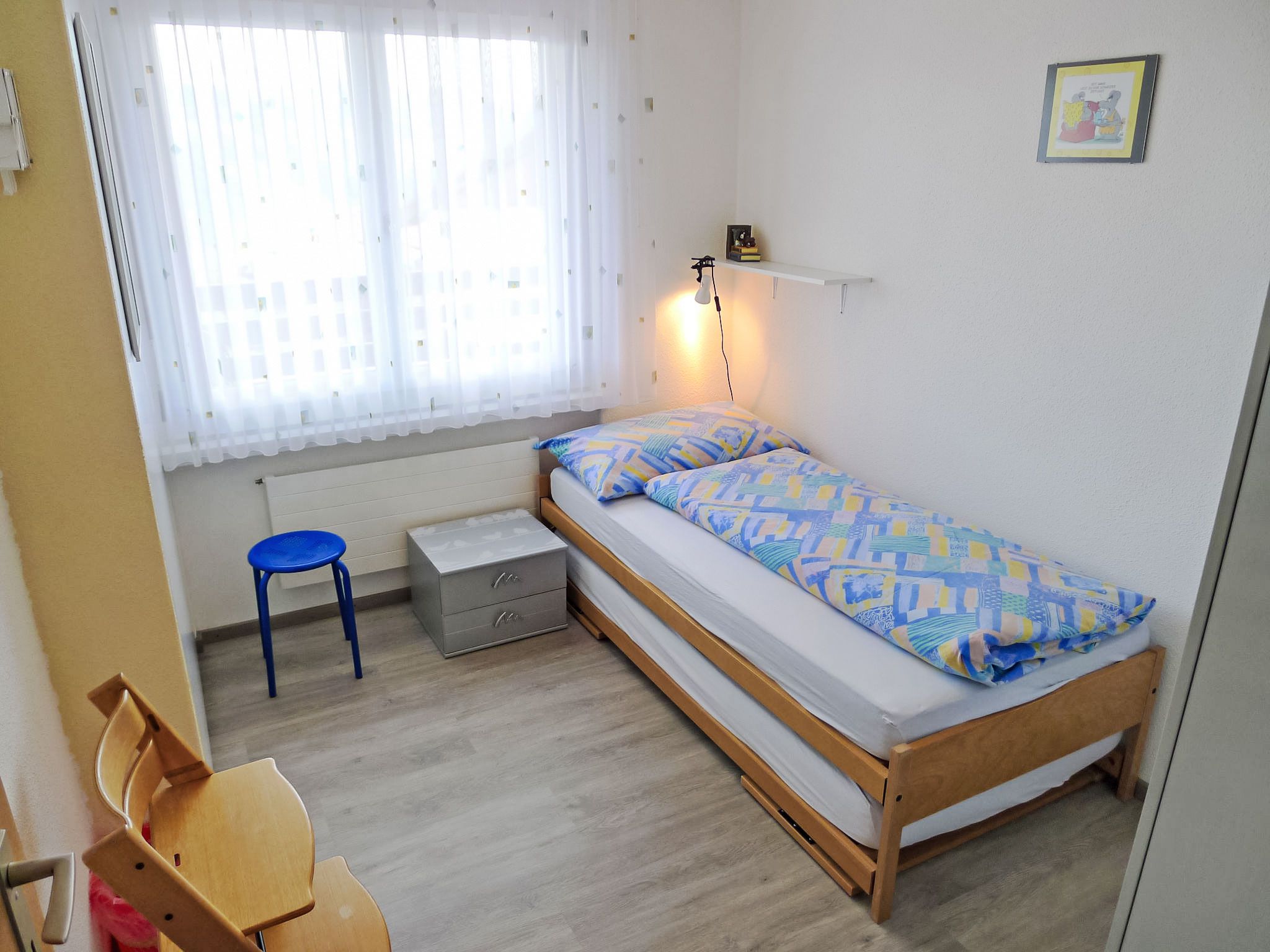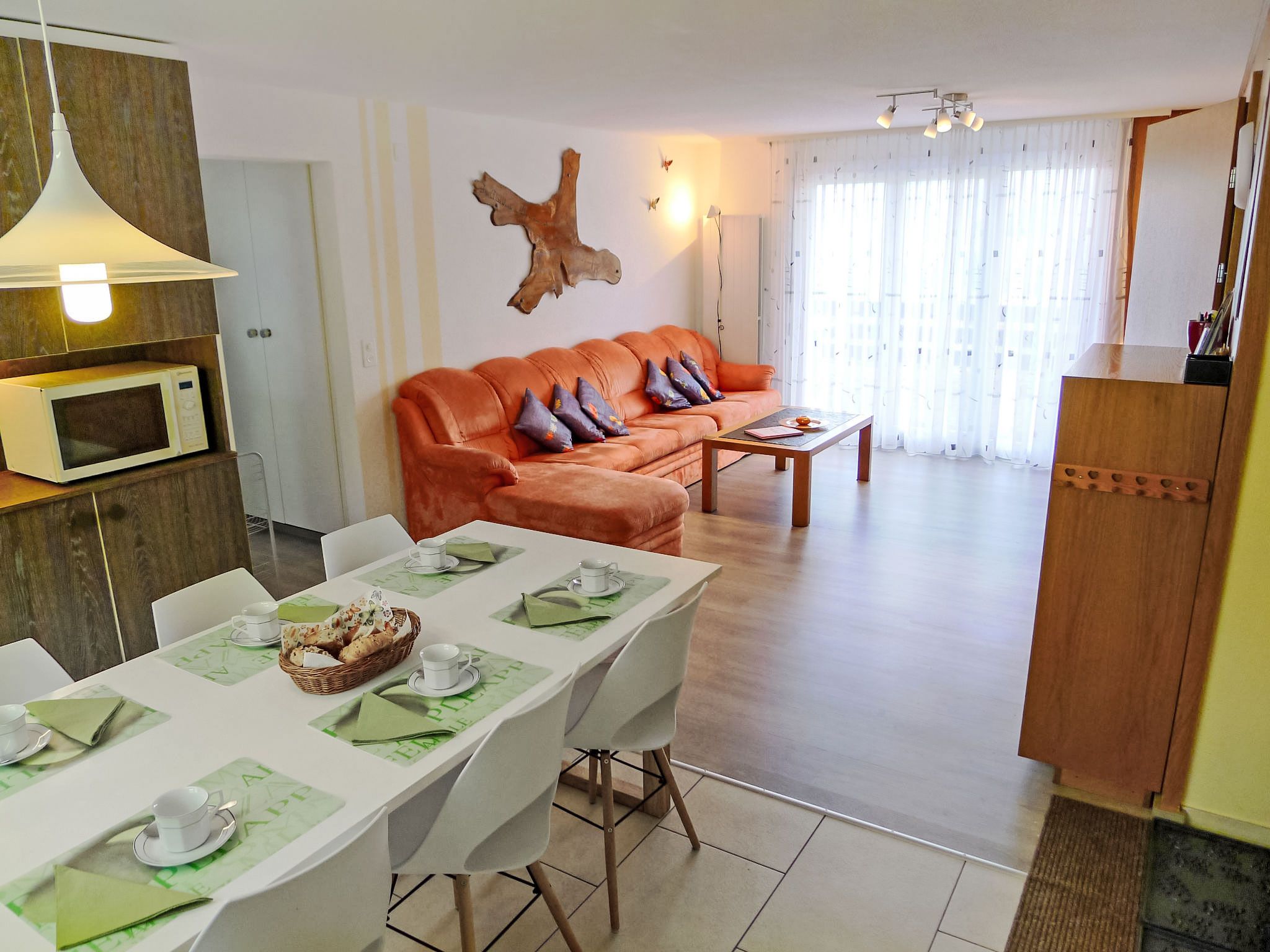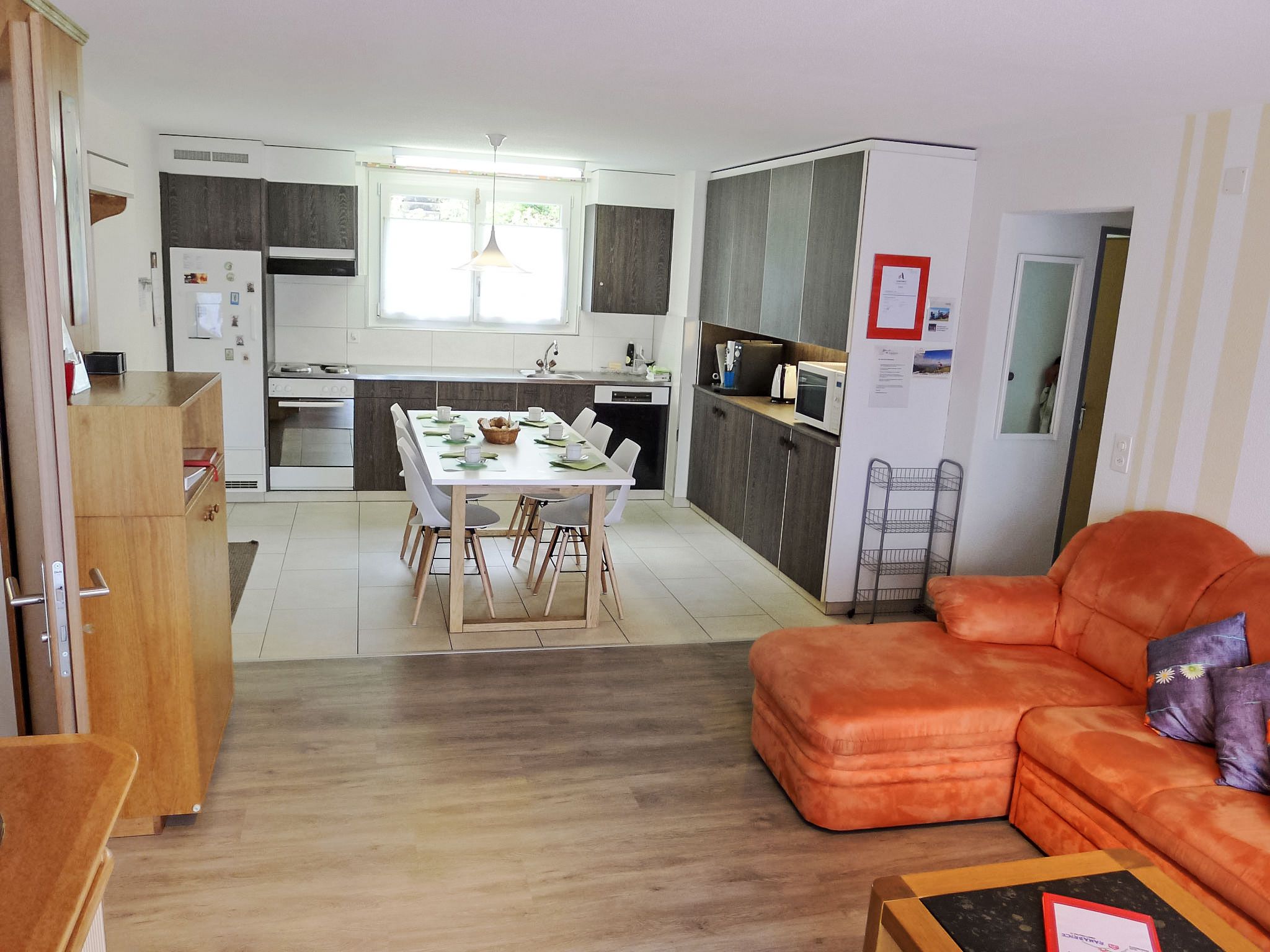 Ramabrice, 4-Zimmer-Wohnung 65 m2, im Erdgeschoss. Komfortabel und gemütlich eingerichtet: Wohn-/Esszimmer mit Kabel-TV, Flachbildschirm, Video und DVD. Ausgang zur Terrasse. 1 Doppelzimmer mit 1 Doppelbett. 1 Kinderzimmer mit 2 Betten (90 cm, Länge 190 cm). 1 Zimmer mit 2 Betten (90 cm, Länge 190 cm). Offene Küche (3 Kochplatten, Backofen, Geschirrspüler, Mikrowelle, elektrische Kaffeemaschine, Racletteofen, Fondue Set (Käse)) mit Esstisch, Essecke und Heizofen. Bad/WC. Grosse Terrasse 40 m2 teilweise überdacht, Gartensitzplatz 20 m2, teilweise überdacht. Terrassenmöbel, Gartengrill, Liegestühle (4), Abstellkammer. Eingeschränkte Sicht auf den See, die Berge, das Tal, die Landschaft und die Ortschaft. Zur Verfügung: Kinderhochstuhl, Babybett bis 2 Jahre (extra), Haartrockner. Internet (Wireless LAN, gratis). Parkplatz (1 Auto) beim Haus. Bitte beachten: Nichtraucher-Unterkunft.