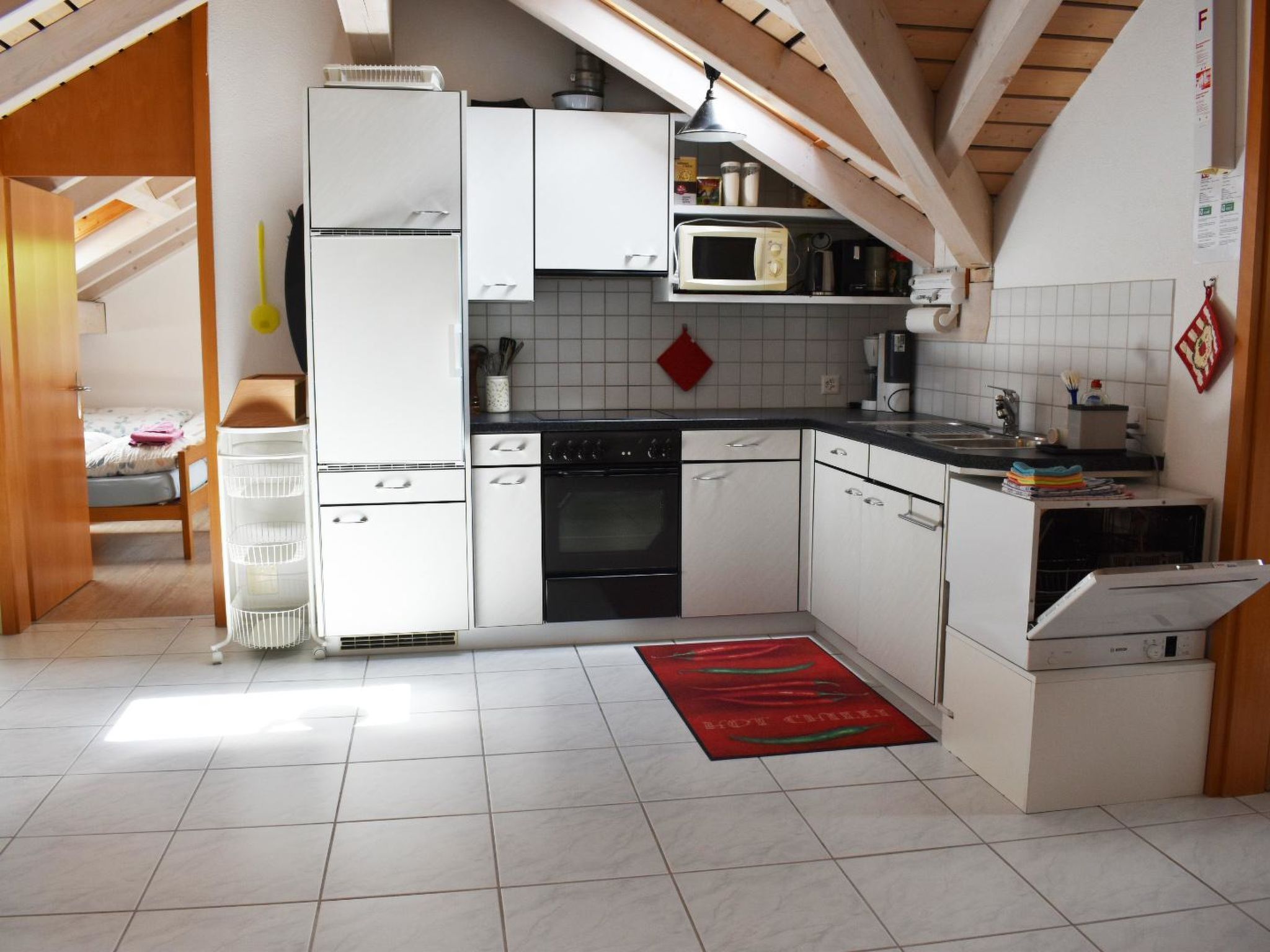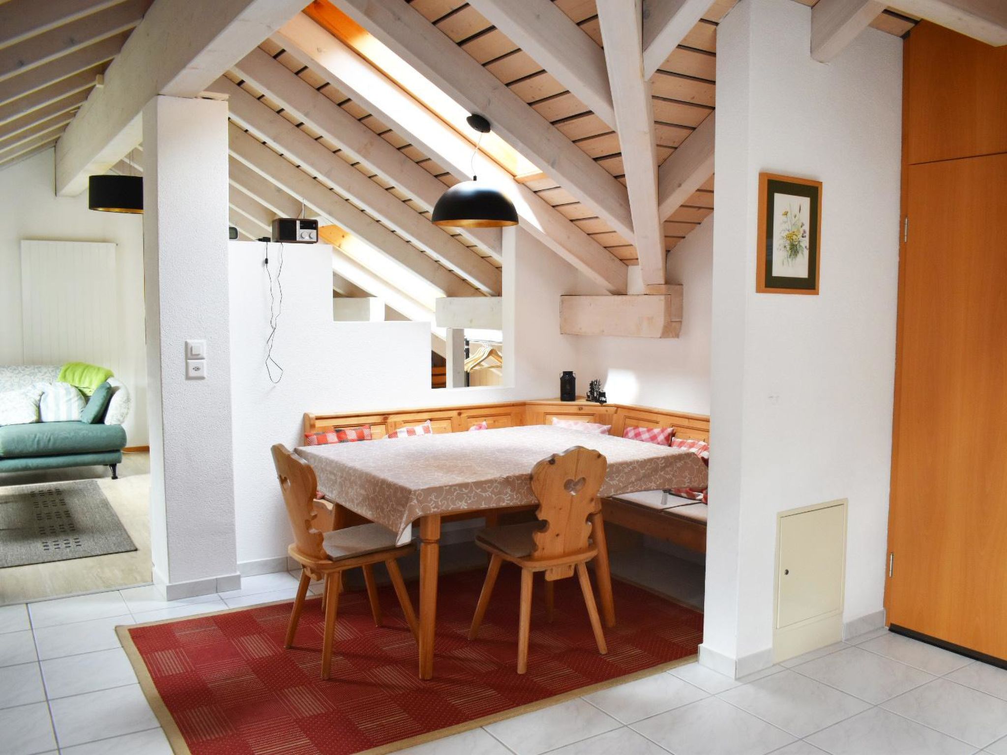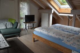 100 m2. Weitere Angaben des Anbieters: Die grosszügige, familienfreundliche Zweizimmerwohnung (100m2) befindet sich im Dachgeschoss eines Zweifamilienhauses an sehr sonniger und ruhiger Südhanglage, ca. 2km ausserhalb des Dorfzentrums (Winter: Haltestelle des Gratis-Skibus 400m). Die grosse Wohnküche (Geschirrspüler, Backofen, Mikrowelle) ist offen zum Wohn-Schlafzimmer mit 1 Doppelbett, Vierbettzimmer (Doppelbett und 2 Einzelbetten) sowie Dusche-WC. Kinderspielecke. DVD-Player. Internet-Anschluss. Standventilator. Koffer-Ablage. Infrarot-Sauna. Waschmaschine zur Mitbenützung im Haus. Parkplatz. Kinderfreundlich und Gitterbett/Babybett vorhanden. NICHTRAUCHER-Wohnung. Parkkarte für die Titlis-Bergbahnen im Winter. Hundebett und Hundefressnapf vorhanden. 2-Zimmerwohnung, 3. Stock: Wohnküche, Wohnschlafzimmer (1 Doppelbett) Vierbettzimmer (Doppelbett + 2 Einzelbetten), Dusche-WC. Inklusiv: Küchenwäsche und Badwäsche Inklusiv: Küchenwäsche und Badwäsche und Tourismusabgabe. Exklusiv: Haustiere CHF 20.00.