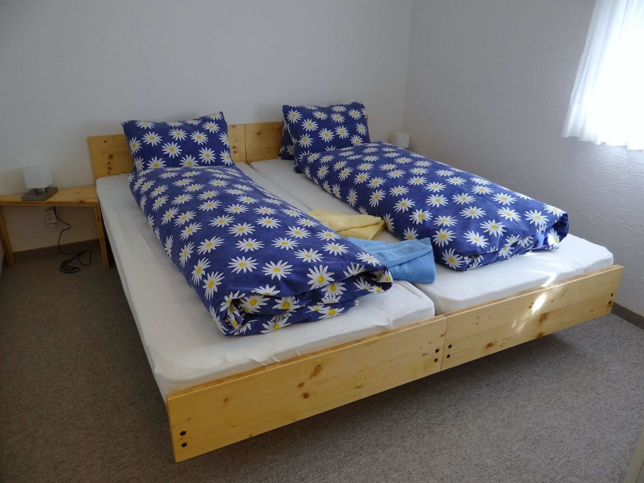 64 m2. Weitere Angaben des Anbieters: Moderne, neu möblierte 3-Zimmer-Wohnung in einem Mehrfamilienhaus an sonniger Südhanglage, ca. 30 Gehminuten vom Dorfzentrum entfernt. Offene Küche mit Geschirrspüler, Wohn-/Esszimmer, Schwedenofen, Eckpolstergruppe und Salontisch, TV, Radio, gratis WLAN, grosser Esstisch, kleines Schlafzimmer mit Doppelbett, Zimmer mit 2 x 2 Kajütenbetten, Bad-WC. Gartensitzplatz. Skiraum. Einstellhalle und Parkplatz. Haustiere nicht erlaubt. NICHTRAUCHER-WOHNUNG. (Im Winter Schneeketten erforderlich). 3-Zimmerwohnung im Parterre: offene Küche, Wohn-/Esszimmer, Schlafzimmer mit Doppelbett, Zimmer mit 2 x 2 Kajütenbetten, Bad-WC. Inklusiv: Bad- und Küchenwäsche, Tourismusabgabe. Exklusiv: Depot CHF 200.-.