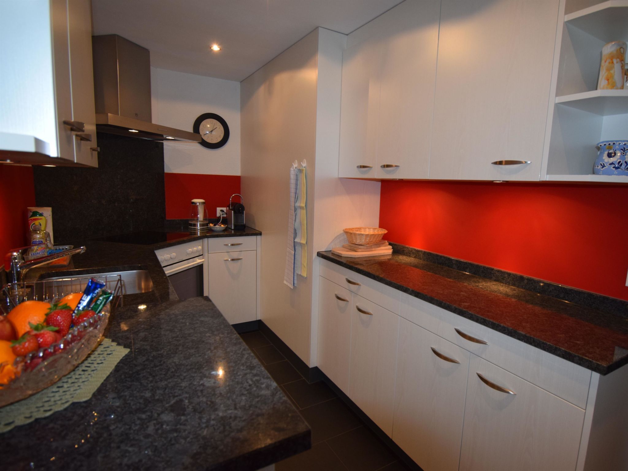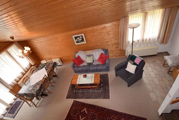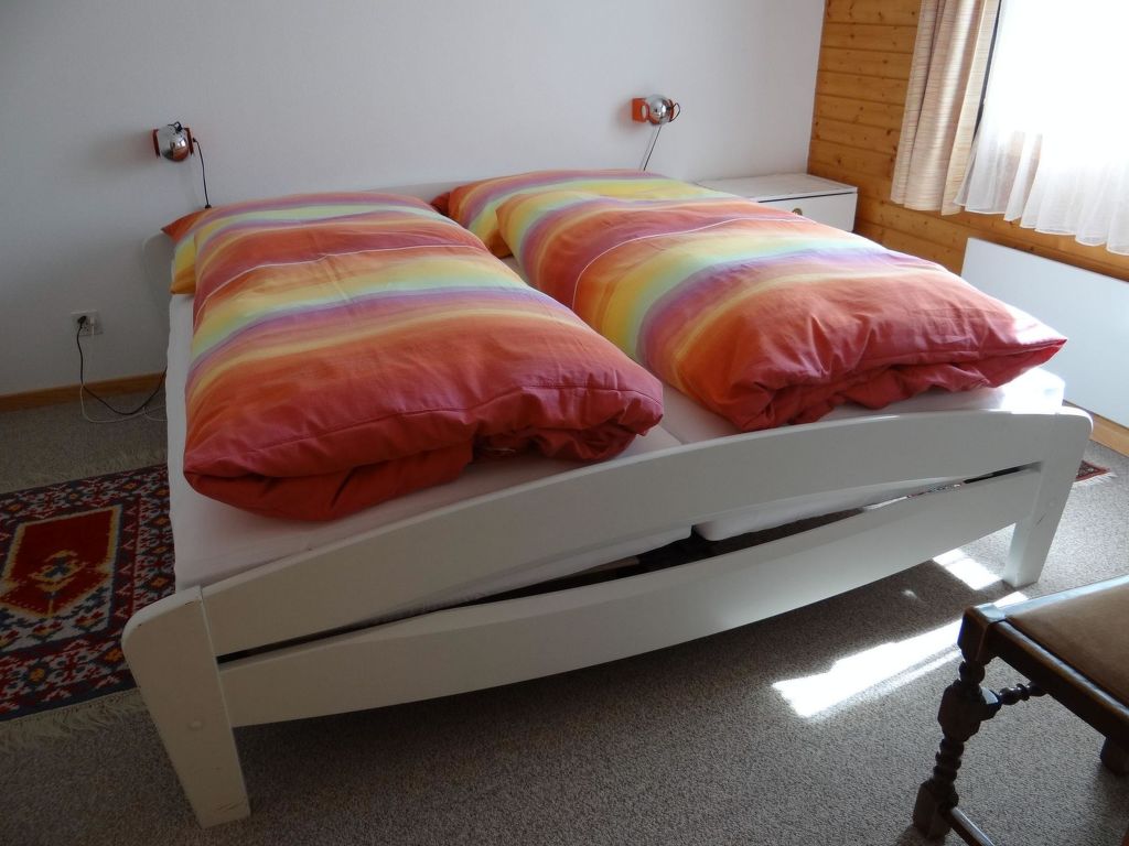 80 m2. Weitere Angaben des Anbieters: Heimelige 3.5- Zi- Wohnung (ca. 80m2) in chaletartigem Haus mit Balkon an ruhiger Lage ist gepflegt und rustikal eingerichtet. Die Wohnung ist in 2 Etagen (Maisonette) aufgeteilt. Die 1. Etage umfasst ein grosszügiges Wohnzimmer mit Esstisch, Polstergruppe, Schwedenofen, TV und Radio, Gratis-WLAN, ein Elternschlafzimmer, Dusche und WC. Die neue offene Küche mit Geschirrspüler und Glaskeramikherd ist ein Bijou. In der 2. Etage befindet sich ein Doppelzimmer und in der Galerie ein Bett und ein Lavabo. Kinderbett vorhanden. Waschmaschine im Haus, ein Parkplatz in der Tiefgarage. 3 Zimmerwohnung, 1. Stock: Wohnzimmer mit Schwedenofen, Dusche-WC, Küche offen zum Wohnzimmer, 1 Doppelschlafzimmer. 2. Stock: 1 Doppelschlafzimmer ,1 sep. Bett auf der Galerie. Inklusiv: Bad- und Küchenwäsche, Tourismusabgabe.
