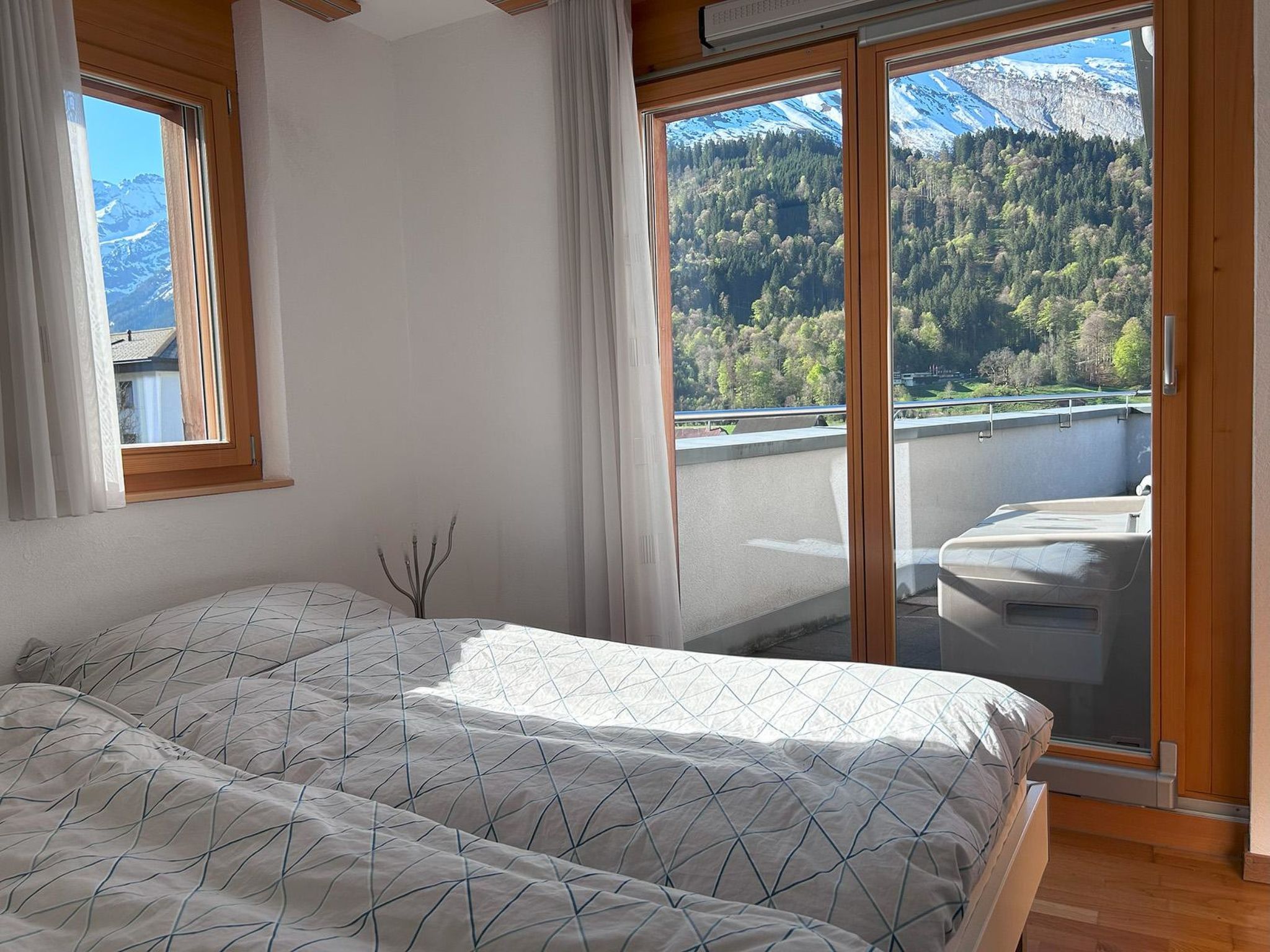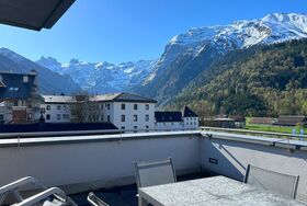 106 m2. Weitere Angaben des Anbieters: Luxuriöse, schöne und sehr zentral gelegene 4 Zimmerwohnung im 4. Stock eines Mehrfamilienhauses mitten im belebten Zentrum. Die im Herbst 2008 neu erstellte Villa Maria grenzt direkt an die Fussgängerzone. Im Winter Gratis-Skibus Haltestelle ganz in der Nähe. Die Wohnung hat eine moderne offene Küche mit modernem Backofen, Mikrowelle, Geschirrspüler, Nespresso-Kaffeemaschine, Kolbenmaschine. Helle Essecke mit grossem Esstisch bei der Küche. Im Wohnzimmer befindet sich ein offener Kamin, ein grosser TV mit Radio, Gratis-WLAN. Die ganze Wohnung ist mit exklusiven Möbeln ausgestattet. Alle 3 Schlafzimmer sind mit Doppelbetten ausgestattet (keine französischen Betten), ideal auch für Familien mit älteren Kindern. 2 Badezimmer vorhanden: 1 x Badewanne/Dusche/WC und 1 x Dusche/WC. Haarföhn. Bügeleisen. Waschmaschine und Trockner befinden sich direkt in der Wohnung. Auf der grossen Terrasse mit herrlicher Sicht auf den Mount Titlis und in die Berge gibt es Gartenmöbel und 1 Sonnenschirm. 1 Tiefgaragenparkplatz sowie ein Skiraum unten im Haus stehen Ihnen zur Verfügung. Haustiere sind nicht erlaubt. NICHTRAUCHER-WOHNUNG. 4 Zimmerwohnung, 4. Stock: offene Küche, Wohnzimmer mit offenem Kamin, 3 Doppelzimmer, 1x Bad/ Dusche/ WC, 1x Dusche/ WC Inklusiv: Toiletten- und Küchenwäsche, Garage und Strom, Tourismusabgabe. Exklusiv: Babybett CHF 20.00 pro Bett, Schlüsseldepot CHF 300.00 mit Kreditkarte.