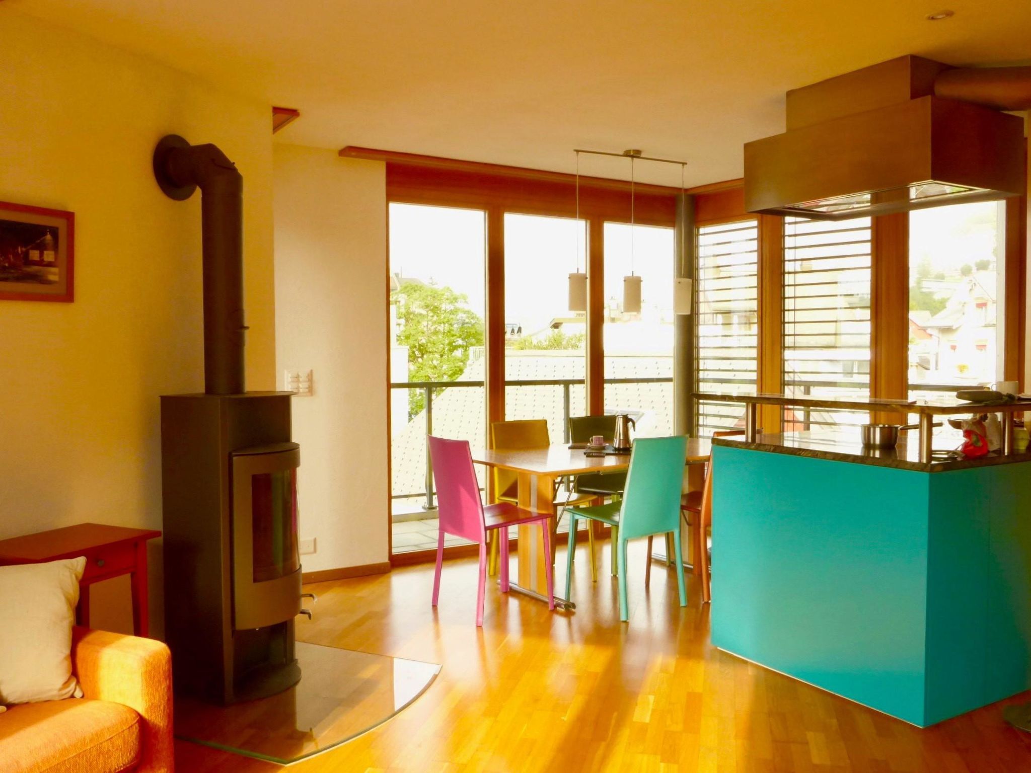 88 m2. Weitere Angaben des Anbieters: Gemütlich eingerichtete, helle und exklusive 3-Zimmer-Wohnung (88m2) im 3. Stock eines energieeffizienten und stilvollen Gebäudes. Ideale zentrale Lage neben der Fußgängerzone mitten im belebtem Dorfzentrum. Panorama sicht auf die Berge aus allen Zimmern. Die Wohnung bietet eine sehr komfortable und moderne Möbilierung: offenes Wohnzimmer mit Schwedenofen, Esstisch, Kabel-TV, Radio und CD, WLAN. Balkon mit Südsicht. 1 Doppelzimmer mit 2 Betten. 1 Doppelzimmer mit 1 Doppelbett. Offene Küche (Backofen, Geschirrspüler, Filterkaffeemaschine). Luxus Bad/WC, Dusche/WC mit Granitspitzen. Haarföhn. Herrliche Panoramasicht auf die Berge. Zur Verfügung: Waschmaschine, Wäschetrockner. Tiere nicht erlaubt. NICHTRAUCHER-WOHNUNG. 3-Zimmer-Wohnung im 3. Stock: 1 Doppelzimmer mit Doppelbett, 1 Doppelzimmer mit 2 Betten, Wohn-/Esszimmer, offene Küche, Dusche/WC, Bad/WC. Inklusiv: Toiletten- und Küchenwäsche, Tourismusabgabe. Exklusiv: Babybett CHF 20.00 pro Bett, Schlüsseldepot CHF 300.00 mit Kreditkarte.