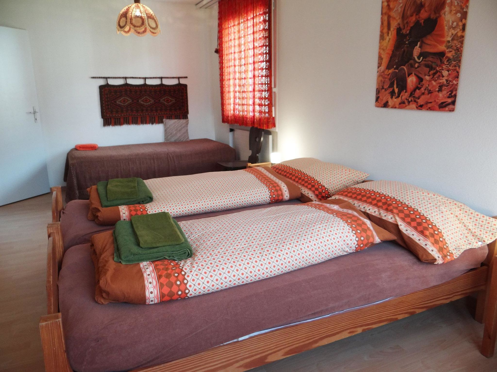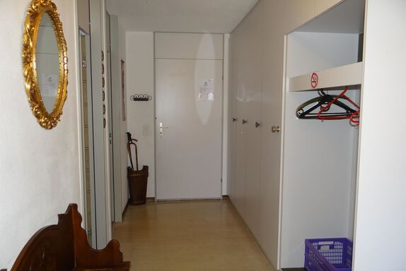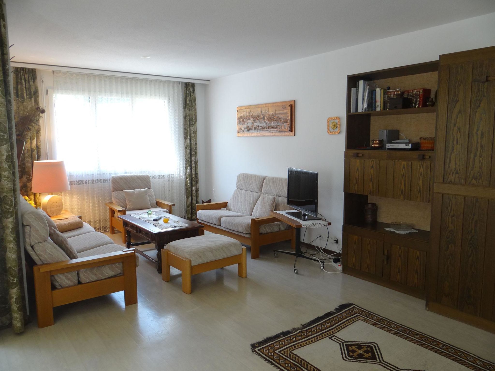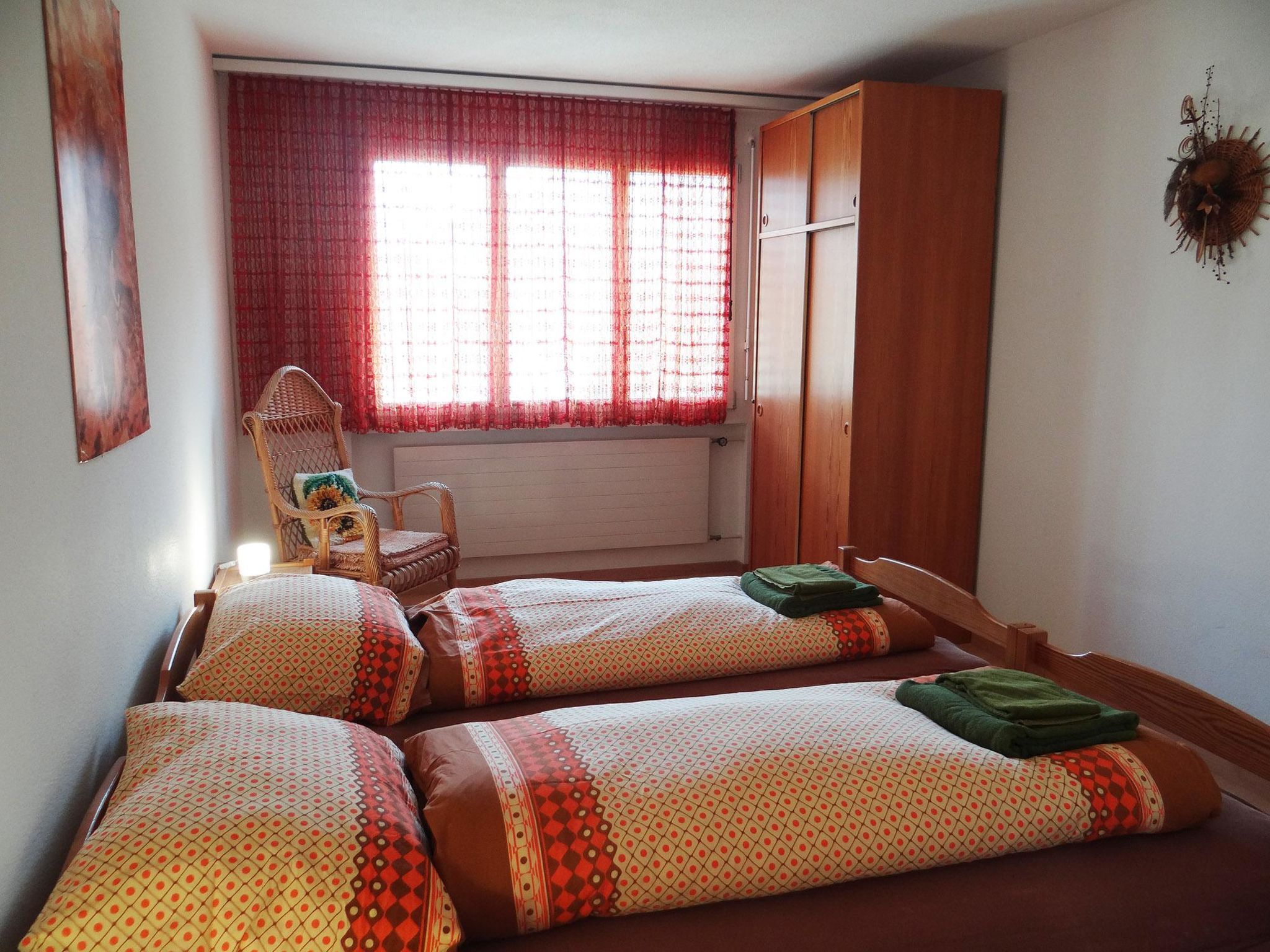 90 m2. Weitere Angaben des Anbieters: Die einfache aber zweckmässig eingerichtete Wohnung (ca. 90 m2) liegt im 3. Stock eines Appartementhauses mit Lift. 1 Doppelzimmer, 1 Zimmer mit 2 Einzelbetten, Wohnzimmer mit 2 Klappbetten, TV, Gratis-Wifi, kleiner Südbalkon, offene Küche (ohne Geschirrspüler), Badezimmer und separates WC, kleiner Balkon für max. 2 Personen. Parkplatz in Tiefgarage. NICHTRAUCHER-WOHNUNG. Haustiere erlaubt. 3 Zimmerwohnung, 3. Stock: Offene Küche, Doppelzimmer, Schlafzimmer mit 2 Einzelbetten, Wohnzimmer (2 Klappbetten), Badezimmer, separates WC, kleiner Balkon für max. 2 Personen. Inklusiv: Toiletten- und Küchenwäsche, Tourismusabgabe. Exklusiv: Babybett CHF 20.00 pro Bett, Schlüsseldepot CHF 300.00 mit Kreditkarte, Haustiere CHF 5.00/Nacht.