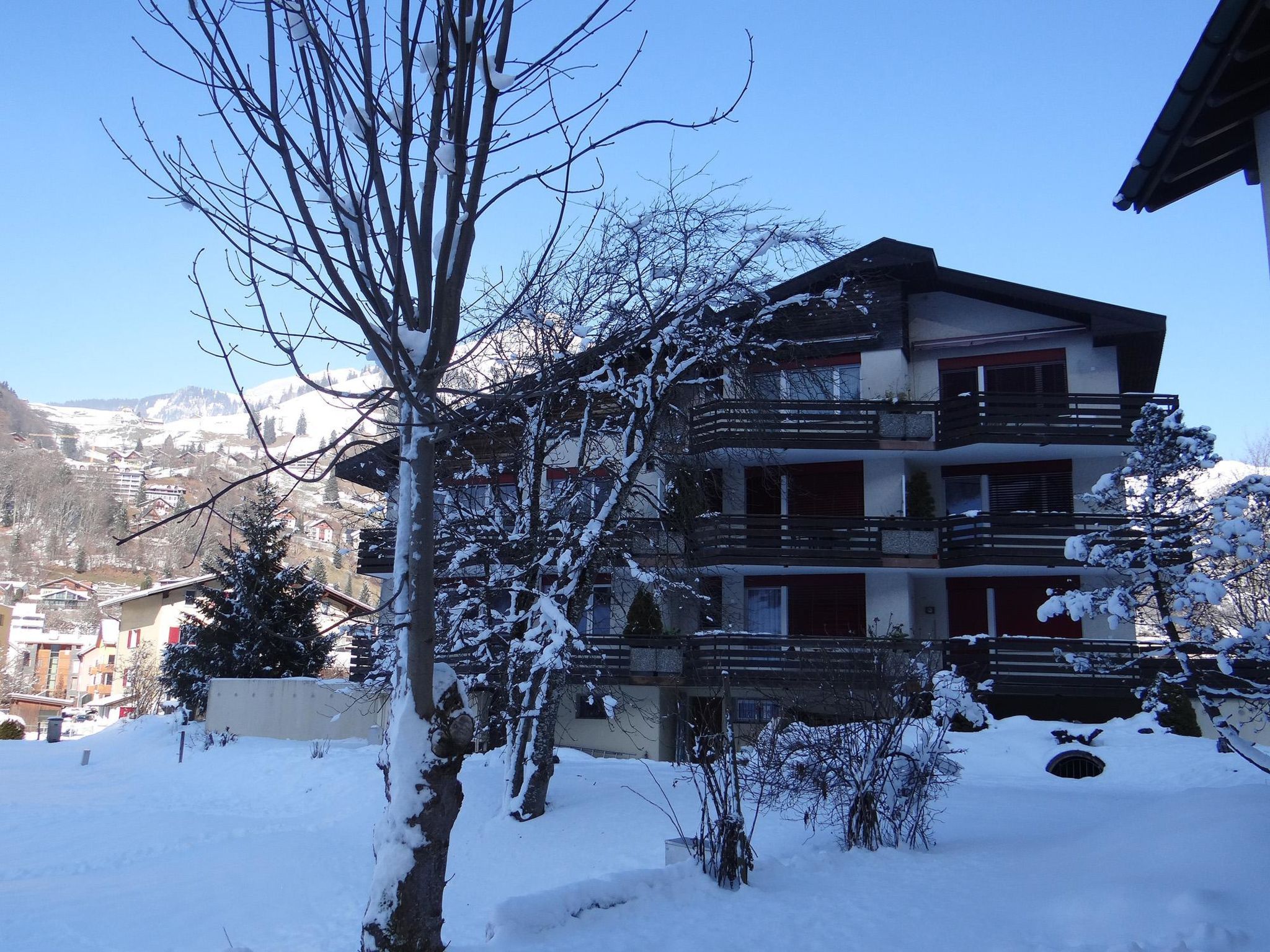 55 m2. Weitere Angaben des Anbieters: Die gemütliche 2- Zimmer-Wohnung (55 m2) befindet sich in einem Mehrfamilienhaus im 3 Stock. In unmittelbarer Nähe der Titlis-Talstation. Moderne und helle, offene Küche (komplett renoviert 2022) mit Geschirrspüler, kombinierter Backofen/Mikrowellenofen und Filterkaffeemaschine. 1 Doppelzimmer. Wohnzimmer mit ausziehbarem Doppel-Sofa, TV, Radio. Gratis WLAN. Dusche-WC. Balkon mit Balkonmöbeln. Parkplatz und Garage. Laminatböden. Waschmaschine im Haus zur Mitbenützung. Skiraum. Tiere nicht erlaubt. Nichtraucher Wohnung. 2-Zimmerwohnung, 3. Stock: Wohn-/Esszimmer mit Schlafsofa, Küche, 1 Doppelzimmer, Badezimmer Inklusiv: Toiletten- und Küchenwäsche, Tourismusabgabe. Exklusiv: Babybett CHF 20.00 pro Bett, Schlüsseldepot CHF 300.00 mit Kreditkarte.
