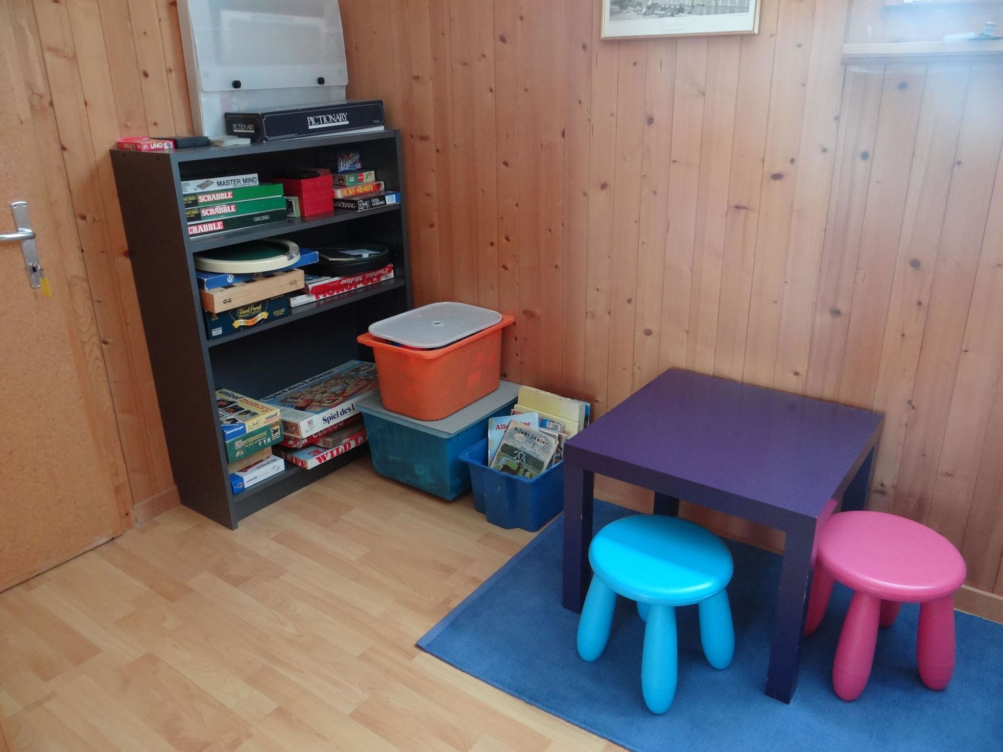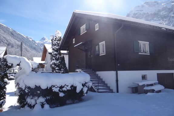 106 m2. Weitere Angaben des Anbieters: Das familienfreundliche Holz-Chalet (105.5 m2 auf 2 Stockwerken) liegt ca. 2km ausserhalb des Zentrums in einem ruhigen Wohnquartier. Es hat eine ebene Zufahrt und im Winter eine Gratisskibus-Haltestelle in der Nähe. Im Erdgeschoss befindet sich das gemütliche Wohn-/Esszimmer mit einem Ausgang zum Sitzplatz, Sofa, TV und Esstisch. Gratis-WLAN. Es hat eine offene und modern eingerichtete Küche, Kapsel-Kaffeemaschine Delizio (CHF 0.50 pro Kapsel). Kindergeschirr und -besteck vorhanden. 2 Doppelzimmer. Moderne Dusche, WC. Im Obergeschoss (abschliessbar, über Innentreppe erreichbar) befinden sich ein grosses Zweibettzimmer mit TV und eine Galerie mit Kinderspielecke sowie ein separates WC. Im Untergeschoss befinden sich ein Hobbyraum mit Tischfussball, Waschmaschine und Skiabstellplatz, Holzschlitten und Bob. Einzelgarage. Zwei Aussenparkplätze vor dem Chalet. Sitzplatz und Garten mit Aussencheminée. Haustiere nicht erlaubt. NICHTRAUCHER-HAUS. 4 Zimmerwohnung auf 2 Stockwerken: offene Küche, Wohnzimmer, 3 Doppelzimmer, 1x Dusche/WC, 1x WC. Inklusiv: Toiletten- und Küchenwäsche, Tourismusabgabe. Exklusiv: Babybett CHF 20.00 pro Bett, Schlüsseldepot CHF 300.00 mit Kreditkarte.