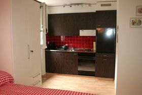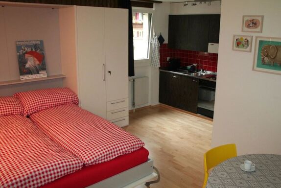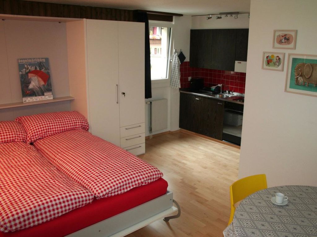 28 m2. Weitere Angaben des Anbieters: Praktische und neu eingerichtete 1-Zimmer Wohnung (26 m2) im Hochparterre eines Mehrfamilienhauses. Wohn-/Schlafzimmer mit Klappbett (160cm), Esstisch, offene Küche mit Backofen und Kaffeemaschine (Delizio), TV-Gerät und gratis Wifi-Internet. Bad/WC. Bügeleisen. Gartensitzplatz. Parkplatz. Tiefgarage. Zentrale und ruhige Lage. 300 m bis Bahnhof. Wintersaison Skibushaltestelle 100 m entfernt. Skiraum. Parkplatz. Haustiere nicht erlaubt. NICHTRAUCHER-WOHNUNG. Achtung: Baustelle in der Nähe bis Ende 2026. 1-Zimmerwohnung im Hochparterre: Offene Küche, Wohn-/Schlafzimmer mit Schrankbett (160 cm), Bad/WC und Balkon. Inklusiv: Toiletten- und Küchenwäsche, Tourismusabgabe. Exklusiv: Babybett CHF 20.00 pro Bett, Schlüsseldepot CHF 300.00 mit Kreditkarte.