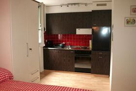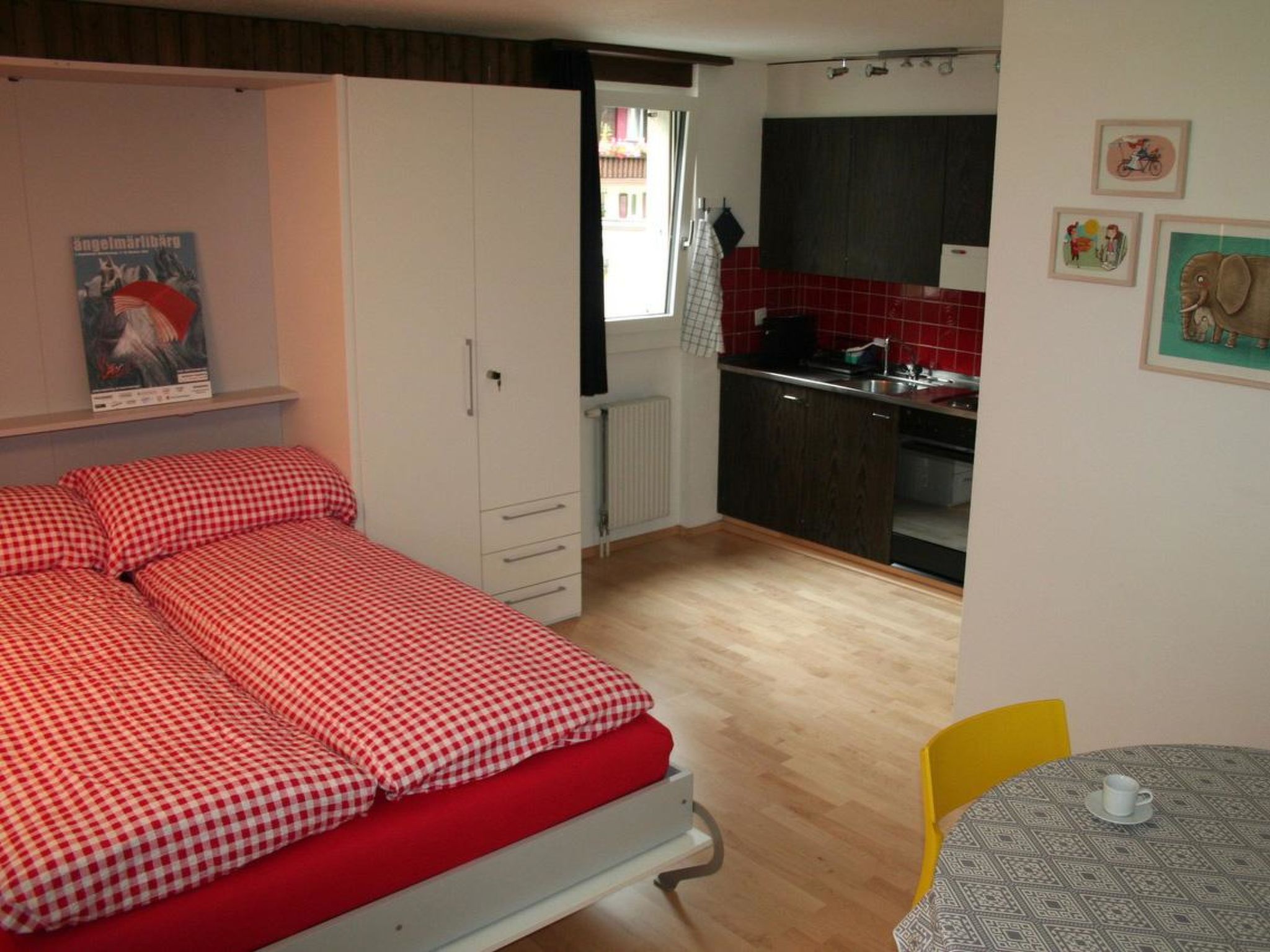 28 m2. Weitere Angaben des Anbieters: Praktische und neu eingerichtete 1-Zimmer Wohnung (26 m2) im Hochparterre eines Mehrfamilienhauses. Wohn-/Schlafzimmer mit Klappbett (160cm), Esstisch, offene Küche mit Backofen und Kaffeemaschine (Delizio), TV-Gerät und gratis Wifi-Internet. Bad/WC.  Bügeleisen. Gartensitzplatz. Parkplatz. Tiefgarage. Zentrale und ruhige Lage. 300 m bis Bahnhof. Wintersaison Skibushaltestelle 100 m entfernt. Skiraum. Parkplatz. Haustiere nicht erlaubt. NICHTRAUCHER-WOHNUNG. Achtung: Baustelle in der Nähe bis Ende 2026. 1-Zimmerwohnung im Hochparterre: Offene Küche, Wohn-/Schlafzimmer mit Schrankbett (160 cm), Bad/WC und Balkon. Inklusiv: Toiletten- und Küchenwäsche, Tourismusabgabe. Exklusiv: Babybett CHF 20.00 pro Bett, Schlüsseldepot CHF 300.00 mit Kreditkarte.