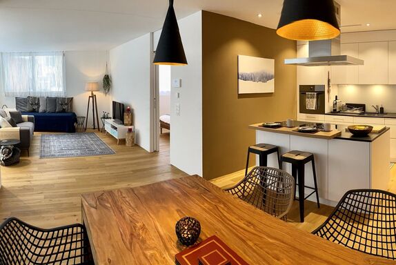 89 m2. Weitere Angaben des Anbieters: Zentrale Lage im Klosterdorf! Das Apartment SnowKaya wurde im Dezember 2019 eröffnet und verfügt über hochwertige Küchen- und Badeeinrichtungen, eine eigene Waschmaschine und Trockner, Fussbodenheizung sowie einen Aufzug, der Sie in die Tiefgarage und zum Ski-/Fahrradraum bringt. SnowKaya befindet sich im Herzen des Dorfes Engelberg, nur wenige Meter von der Skibus-Haltestelle, den Supermärkten Migros & Coop und vielen Restaurants entfernt. Ein Gratis-Bus bringt Sie im Winter an alle Talstationen und zum Bahnhof. Der Bahnhof ist in wenigen Minuten zu Fuss erreichbar. Die schöne, erstklassige Wohnung hat eine moderne offene Küche mit Backofen, Mikrowelle, Geschirrspüler und Kaffeemaschine, ein offenes Wohn-/Esszimmer mit Zusatzbett, TV und Gratis-Wifi. Schöne Essecke mit Esstisch. 2 Doppelzimmer mit Boxspring Betten. Bad mit Badewanne, WC. 1 reservierter Parkplatz in der Tiefgarage vorhanden. Haustiere nicht erlaubt. NICHTRAUCHER-WOHNUNG. 3-Zimmerwohnung, 1. Stock: offene Küche, Wohnzimmer, 2 Doppelzimmer, Bad/WC. Inklusiv: Toiletten- und Küchenwäsche, Garage, Tourismusabgabe. Exklusiv: Babybett CHF 20.00 pro Bett, Schlüsseldepot CHF 300.00 mit Kreditkarte.