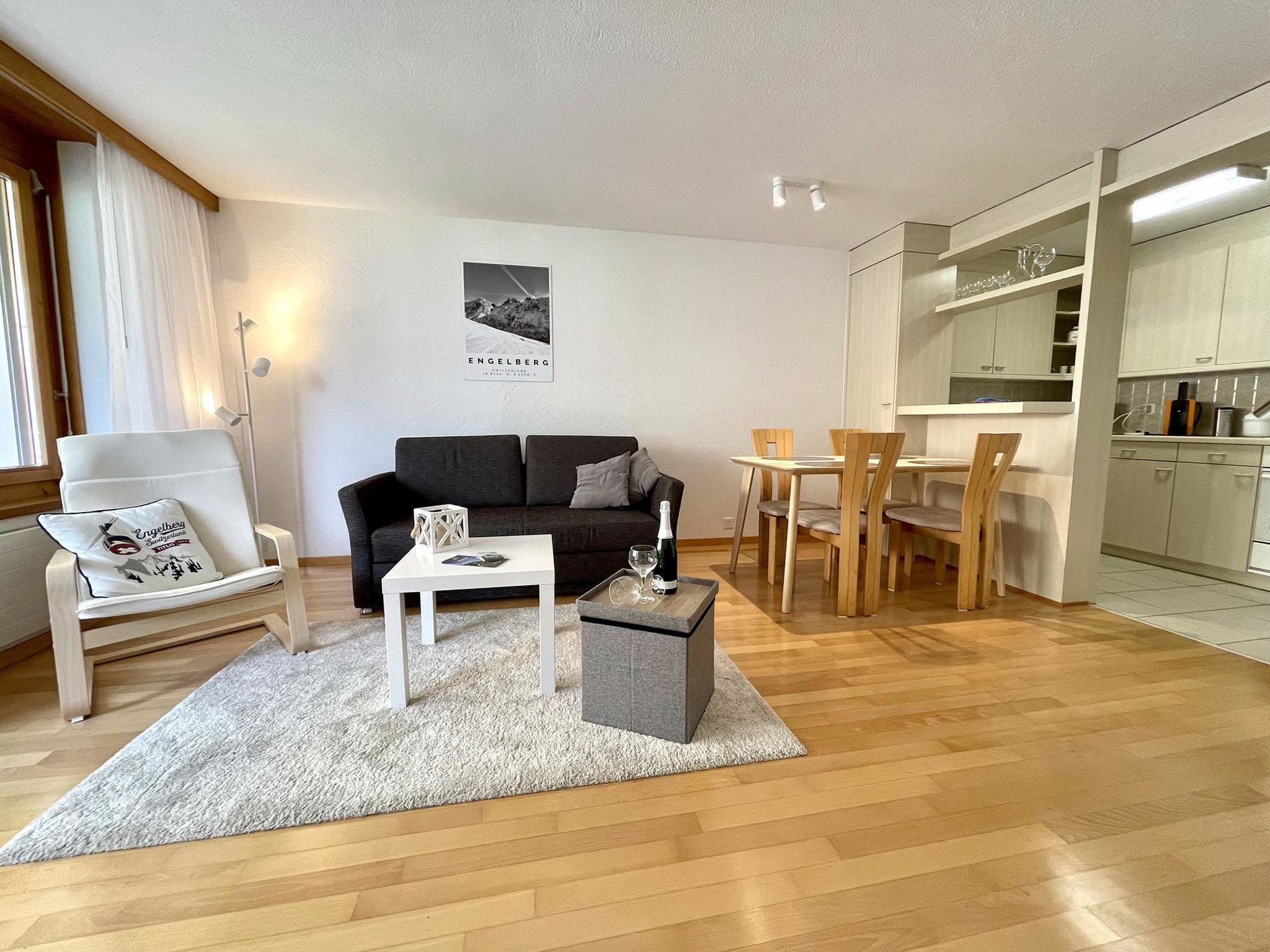 58 m2. Weitere Angaben des Anbieters: Im Jahr 2022 neu renovierte, gemütlich eingerichtete 2-Zimmerwohnung (58m2) in chaletartigem Mehrfamilienhaus, ruhig und trotzdem zentral gelegen in unmittelbarer Nähe des Bahnhofs und des Dorfzentrums. Komplett ausgerüstete Küche mit Geschirrspüler, Kaffeemaschine, Wasserkocher, Mikrowelle, Raclette- und Fondue-Set. Helles Wohnzimmer mit TV und Gratis-WLAN, Schlafzimmer mit 2 Betten. Dusche/WC mit Haarfön. Tresor. Rauchmelder. Grosser, sonniger, möblierter Balkon. Skiraum. Waschmaschine und Tumbler zur Verfügung im Haus. Trockenraum. Grosser Garten mit Grillstelle und Granittischen zur gemeinsamen Nutzung. Gratis Tiefgarage und Aussenparkplatz. Haustiere nicht erlaubt. NICHTRAUCHER-WOHNUNG. 2-Zimmerwohnung, 1. Stock: Küche, Wohnzimmer, Doppelzimmer, Dusche-WC Inklusiv: Bettwäsche, Toiletten- und Küchenwäsche.