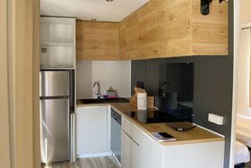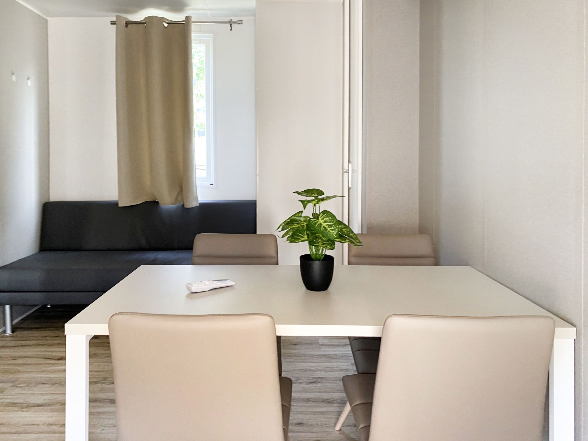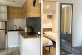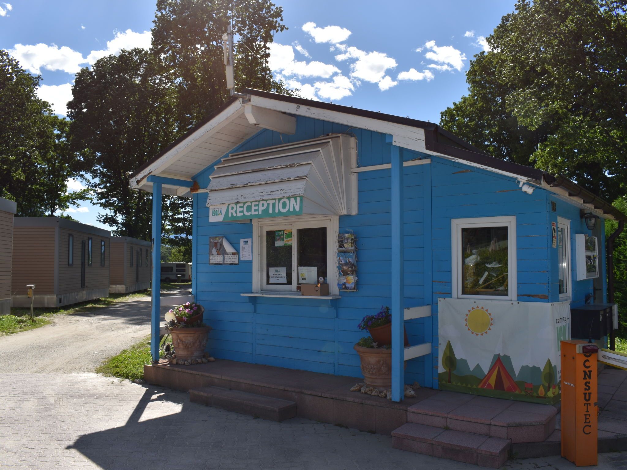 Bungalow Isola Premium, 3-Zimmer-Bungalow 18 m2. Objekt geeignet für 4 Erwachsene + 1 Kind. Hell, schön und modern eingerichtet: kleines Wohn-/Esszimmer mit 1 Diwanbett (80 cm, Länge 170 cm), Esstisch und Klimaanlage. Ausgang zur Terrasse. 1 kleines Doppelzimmer mit 1 Doppelbett (1 x 160 cm, Länge 200 cm). 1 kleines Zimmer mit 2 Betten (80 cm, Länge 190 cm). Kleine, offene Küche (Geschirrspüler, 4 Glaskeramikplatten). Dusche/WC. Heizung. Grosse Terrasse teilweise überdacht. Terrassenmöbel. Sicht auf die Landschaft. Zur Verfügung: Internet (WLAN, gratis). Parkplatz (1 Auto) beim Haus. Bitte beachten: Nichtraucher-Haus. Maximal 1 kleines Haustier/Hund erlaubt. NL-