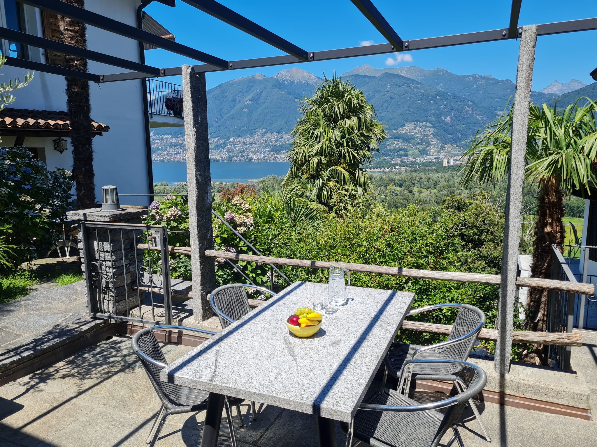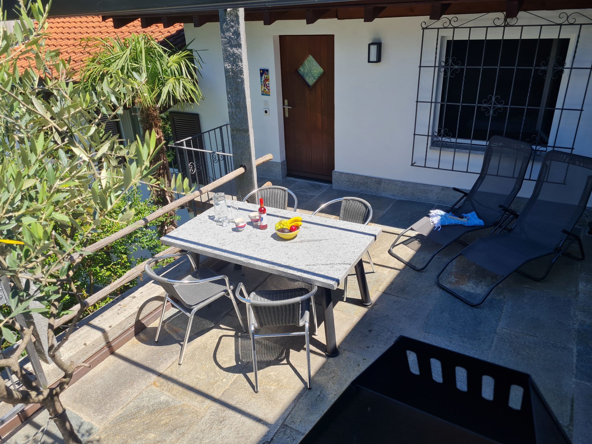 Magadino 15 km von Locarno: Modernes, schönes Zweifamilienhaus Cavriana, umgeben von Bäumen. Am Ortsrand, im Bezirk Gambarogno, ruhige, sonnige Lage in einem Wohnquartier, 50 m vom Waldrand, 2 km vom See, in einer Sackgasse, im Grünen. Zur Alleinbenutzung: Sitzplatz, Pergola, Terrasse, Gartenmöbel, Grill. Steile Zufahrt bis zum Grundstück. Treppenweg (20 Stufen) bis zum Haus. Parkplatz auf dem Grundstück. Lebensmittelgeschäft 850 m, Restaurant 700 m, Bushaltestelle Postauto Linie 352 500 m, Bahnstation SBB-CFF (Quartino) 4.5 km. Golfplatz (18 Loch) 19 km, Minigolf 2.2 km, Wanderwege ab Haus 10 m. Nahe gelegene Sehenswürdigkeiten: Mercato Luino IT, Mercato Ponte Tresa IT, Mercato Bellinzona (SA), Castelli di Bellinzona, Madonna del Sasso, Locarno-Orselina, Monte Verità, Ascona. Bekannte Seen in der Umgebung sind gut erreichbar: Lago Maggiore, Lago di Lugano, Lago di Como. Wandergebiete: Monti di Piazzogna, Valle Verzasca, Vallemaggia, Centovalli, Cardada-Cimetta, Locarno.