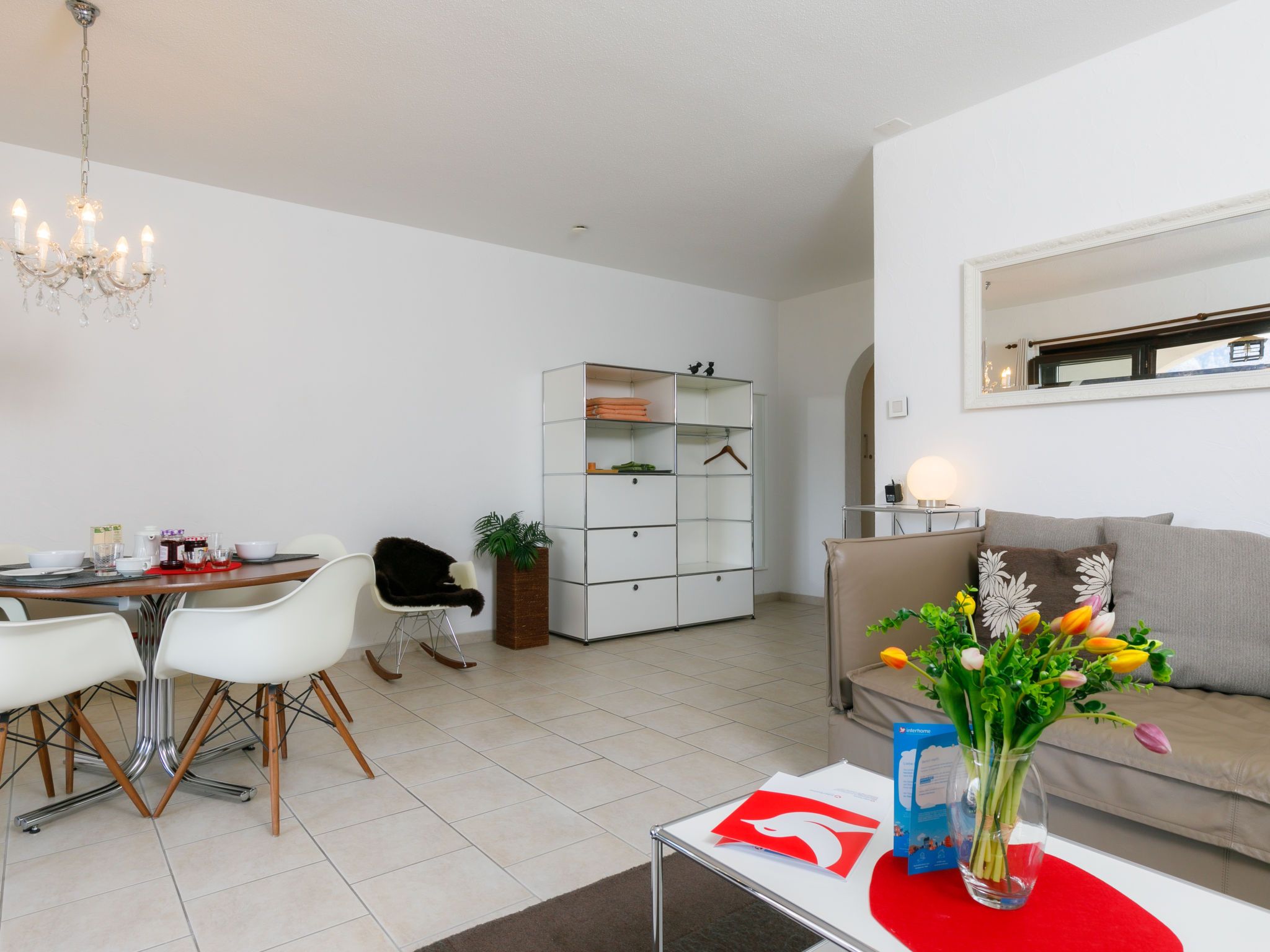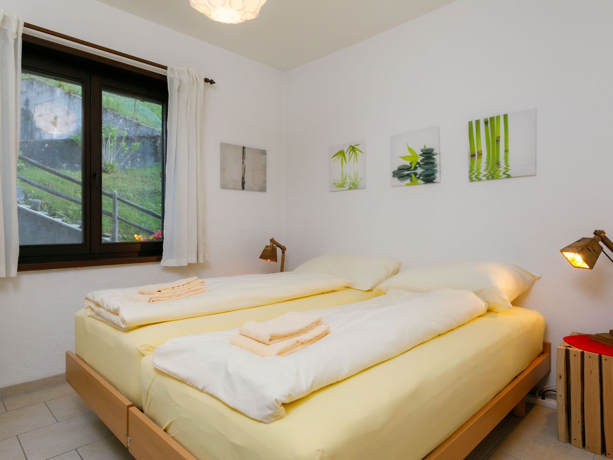 Residenza Miralago Apt. D33, 2-Zimmer-Wohnung 64 m2 im 1. Stock. Geräumig und hell, stilvoll eingerichtet: offenes grosses Wohn-/Esszimmer mit 1 Diwanbett, Esstisch, Kabel-TV und Internationale TV-Sender (Flachbildschirm), Radio. Ausgang zum Balkon. 1 Zimmer mit 2 Betten (90 cm, Länge 200 cm). Kleine, offene Küche im Eingang (Backofen, Geschirrspüler, 4 Glaskeramikplatten, elektrische Kaffeemaschine, Kapseln für die Kaffeemaschine (Nespresso) extra). Dusche/WC. Heizung. Balkon. Balkonmöbel, Liegestühle (2). Sehr schöne Panoramasicht auf den See, die Berge und die Landschaft. Zur Verfügung: Kinderhochstuhl, Babybett bis 2 Jahre (extra), Haartrockner. Bitte beachten: Nichtraucher-Unterkunft. NL-