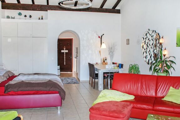 Residenza Miralago Apt. C27, 1-Zimmer-Wohnung 65 m2 im 1. Stock. Hell, teilweise renoviert im Jahre 2019, modern und geschmackvoll eingerichtet: offenes grosses Wohn-/Schlafzimmer mit 1 Doppelbett (180 cm, Länge 200 cm), Sat-TV (Flachbildschirm), Radio. Ausgang zum Balkon. Offene Küche im Eingang (Backofen, Geschirrspüler, 4 Glaskeramikplatten, Mikrowelle, elektrische Kaffeemaschine, Kapseln für die Kaffeemaschine (Nespresso) extra). Dusche/WC. Heizung. Balkon, Südlage und Westlage. Balkonmöbel, Liegestühle (2). Sehr schöne Panoramasicht auf den See, die Berge und die Landschaft. Zur Verfügung: Bügeleisen, Haartrockner. Bitte beachten: Nichtraucher-Unterkunft. NL-