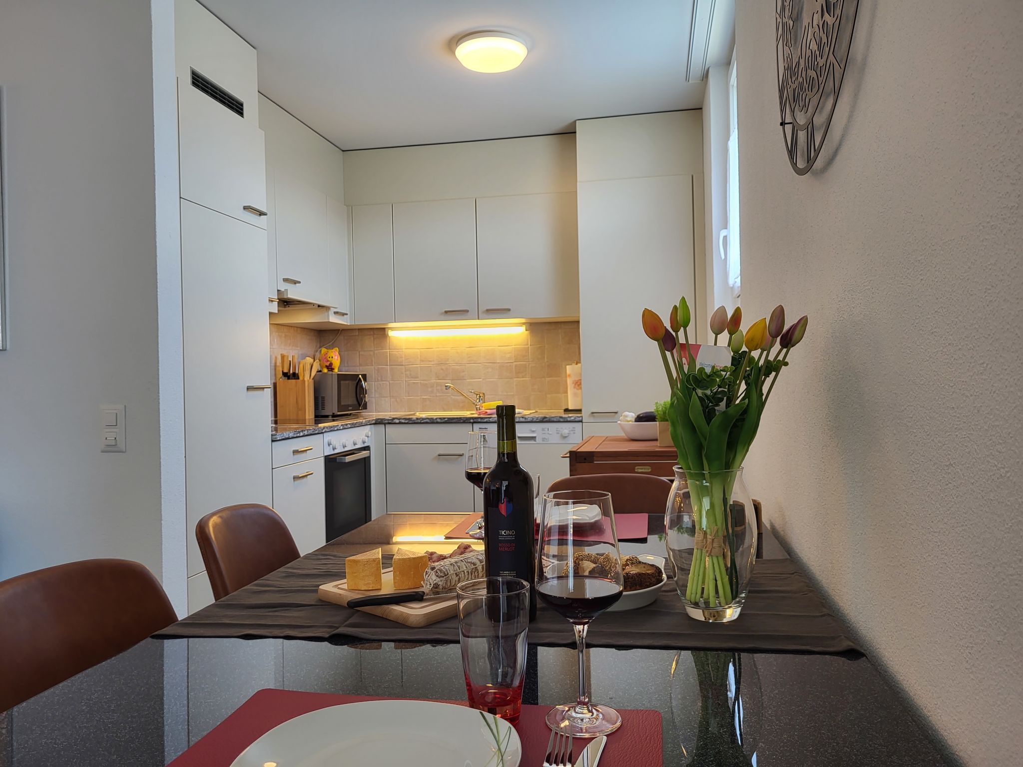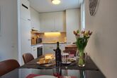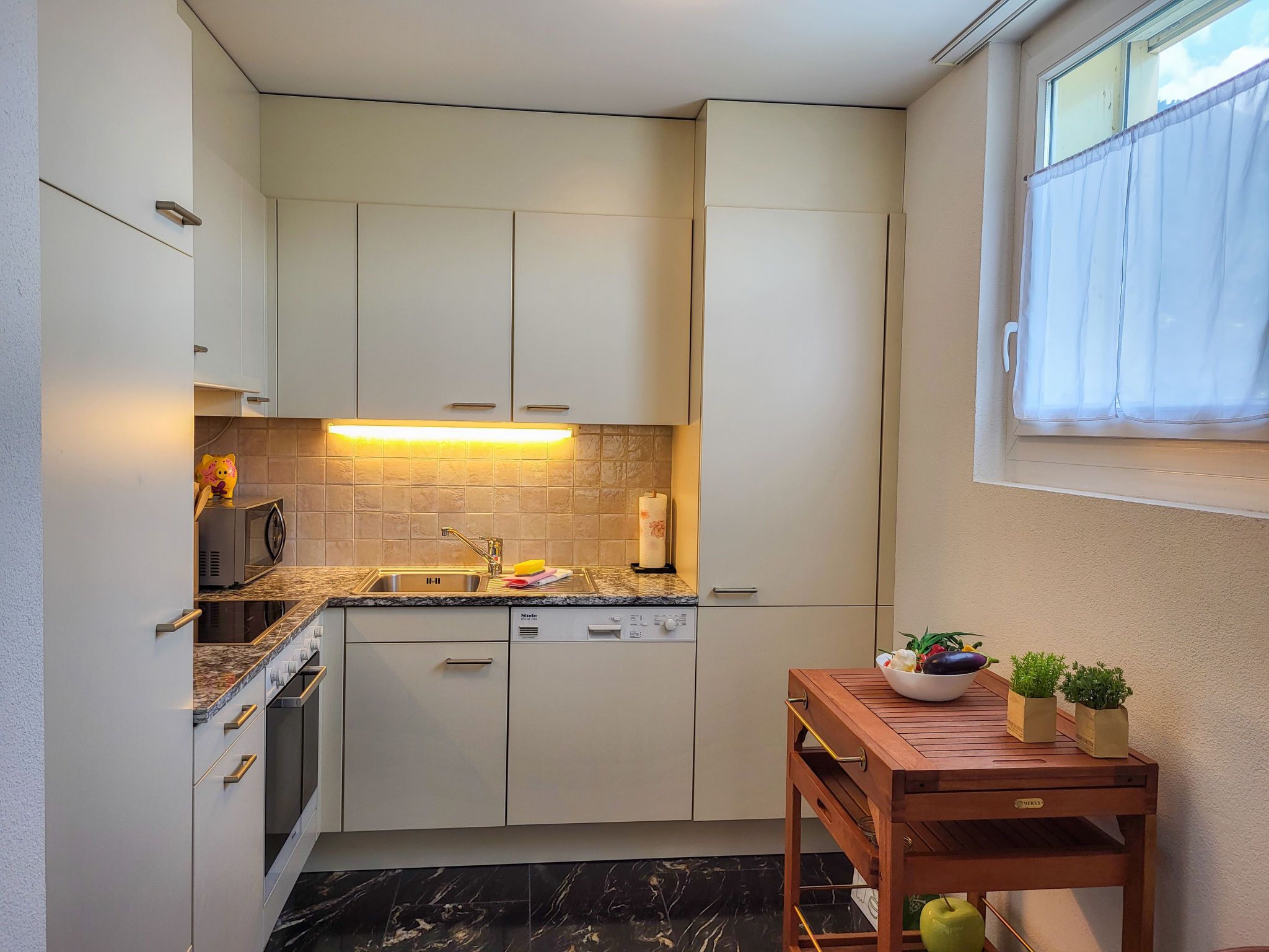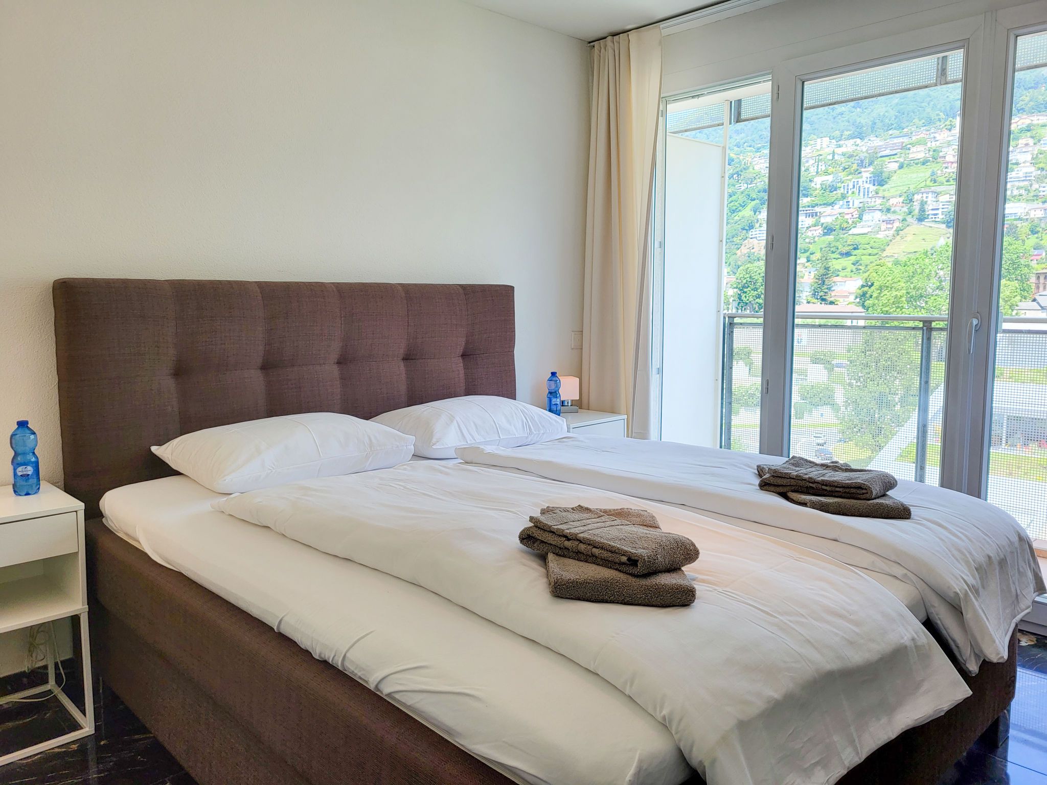 Torre Tessuti Apt.Leonardo, 2-Zimmer-Wohnung 50 m2 im 7. Stock. Objekt geeignet für 2 Erwachsene. Hell, komfortabel und modern eingerichtet: offenes Wohn-/Esszimmer mit Digital-TV und Flachbildschirm. Ausgang zum Balkon. 1 Doppelzimmer mit 1 franz. Bett (180 cm, Länge 200 cm), Bad/WC. Ausgang zum Balkon. Offene Küche (Backofen, Geschirrspüler, 4 Glaskeramikplatten, Toaster, Wasserkocher, Mikrowelle, elektrische Kaffeemaschine, Kapseln für die Kaffeemaschine (Nespresso mitbringen) extra). Dusche/WC. Fussbodenheizung. Grosser Balkon 7 m2, Südlage und Ostlage, kleiner Balkon 4 m2, Nordlage und Westlage. Balkonmöbel. Schöne Panoramasicht auf die Berge und die Ortschaft. Zur Verfügung: Kinderhochstuhl, Babybett bis 2 Jahre (extra), Haartrockner. Internet (WLAN, gratis). Parkplatz Nr. 11, Apt.372 Tiefg. (extra). Bitte beachten: Nichtraucher-Unterkunft. NL-