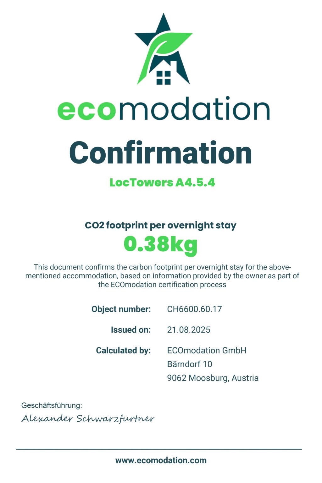 LocTowers A4.5.4, 2-Zimmer-Wohnung 59 m2 im 5. Stock. Geräumig und hell, sehr komfortabel und modern eingerichtet: grosses Wohn-/Esszimmer mit 1 Doppeldiwanbett (150 cm, Länge 200 cm), Esstisch, Kabel-TV und Digital-TV. Ausgang zum Balkon. 1 Zimmer mit 1 Doppelbett (2 x 80 cm, Länge 200 cm). Offene Küche (Backofen, Geschirrspüler, 4 Glaskeramikplatten, Toaster, Wasserkocher, Tiefkühler, elektrische Kaffeemaschine, Kapseln für die Kaffeemaschine (Delizio) extra, Racletteofen, Fondue Set (Käse)) mit Esstisch. Dusche/WC. Fussbodenheizung. Balkon 8 m2, Ostlage und Nordlage. Balkonmöbel. Sicht auf die Ortschaft. Zur Verfügung: Waschmaschine, Wäschetrockner, Bügeleisen, Kinderhochstuhl, Babybett (extra), Haartrockner. Internet (Wireless LAN, gratis). Bitte beachten: Nichtraucher-Unterkunft. Maximal 1 Haustier/Hund erlaubt. NL-