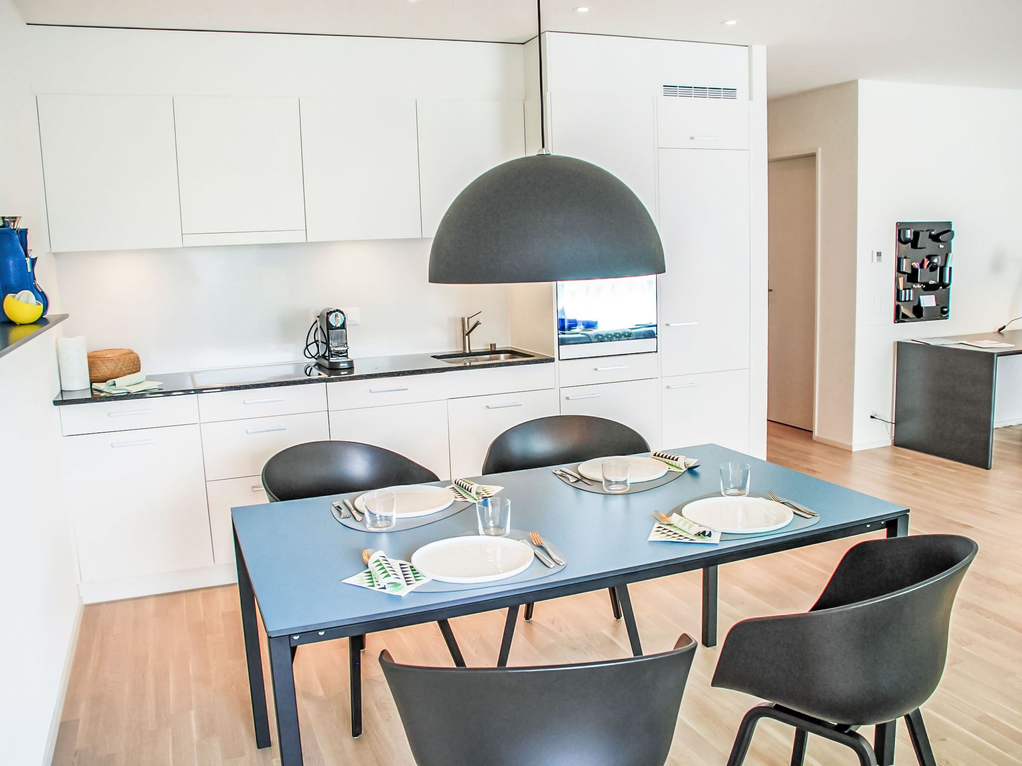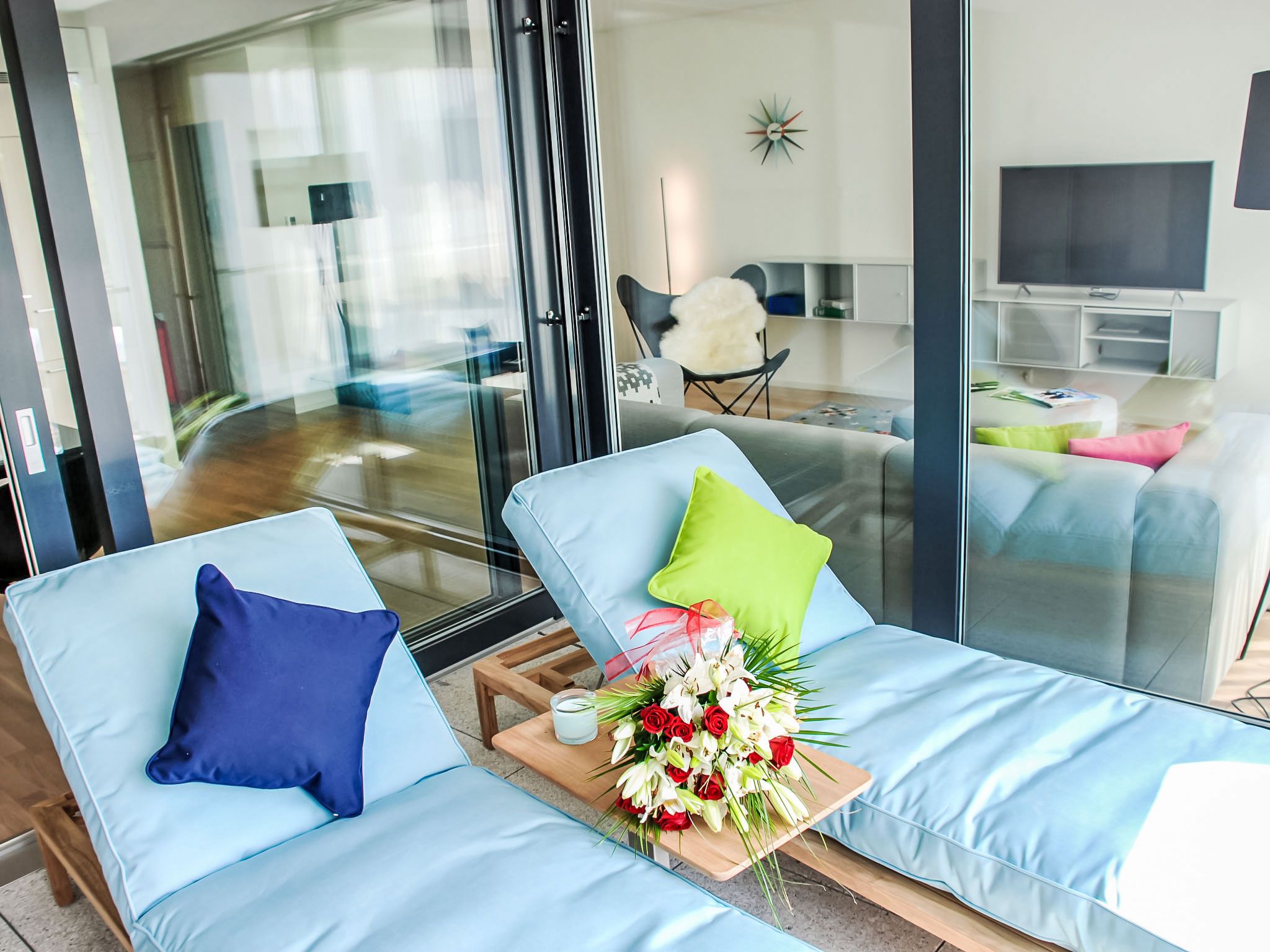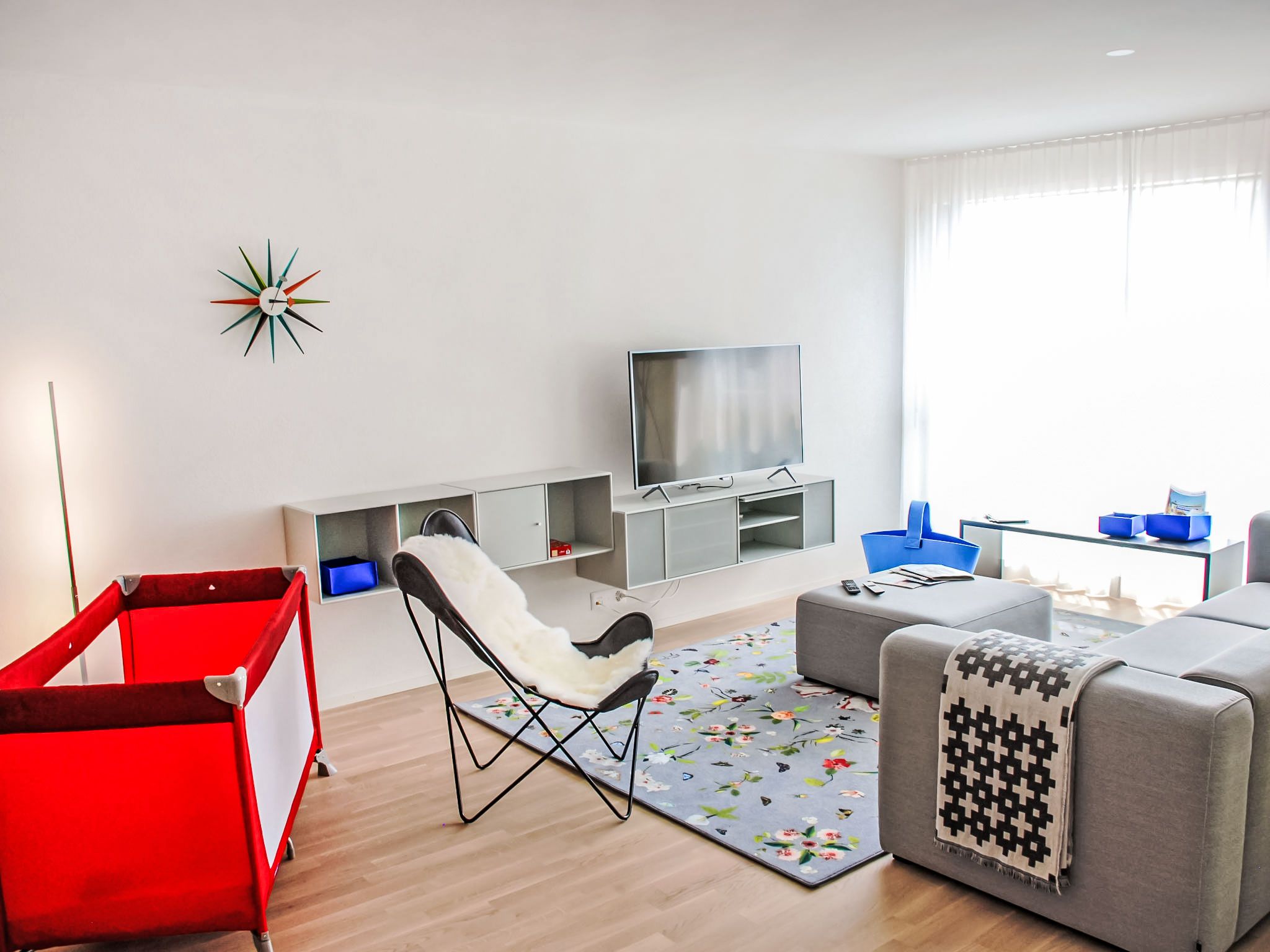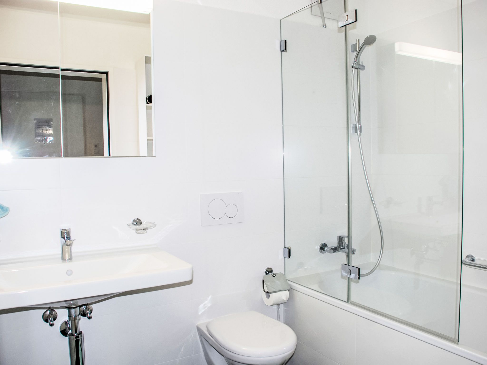 LaVille A-4-3, 3-Zimmer-Wohnung 89 m2 im 4. Stock, Südwestlage. Geräumig und hell, modern und geschmackvoll eingerichtet: offenes grosses Wohn-/Esszimmer mit Sat-TV und Flachbildschirm. 1 Doppelzimmer mit 1 Doppelbett (2 x 90 cm, Länge 200 cm). 1 Zimmer mit 2 Betten (90 cm, Länge 200 cm). Offene Küche (Backofen, Geschirrspüler, 4 Induktionskochplatten, Tiefkühler, elektrische Kaffeemaschine, Kapseln für die Kaffeemaschine (Nespresso) extra) mit Esstisch. Ausgang zum Balkon. Bad/WC, Dusche/WC. Bodenheizung. Balkon 9 m2, Südlage und Westlage. Balkonmöbel, Liegestühle (1). Sicht auf die Berge und die Landschaft. Zur Verfügung: Waschmaschine, Wäschetrockner, Bügeleisen, Kinderhochstuhl, Babybett bis 2 Jahre (extra), Haartrockner. Internet (WLAN, gratis). Parkplatz Nr. 51 (extra), Höhe 210 cm, Breite 230 cm. Bitte beachten: Nichtraucher-Unterkunft. NL-