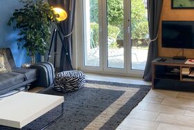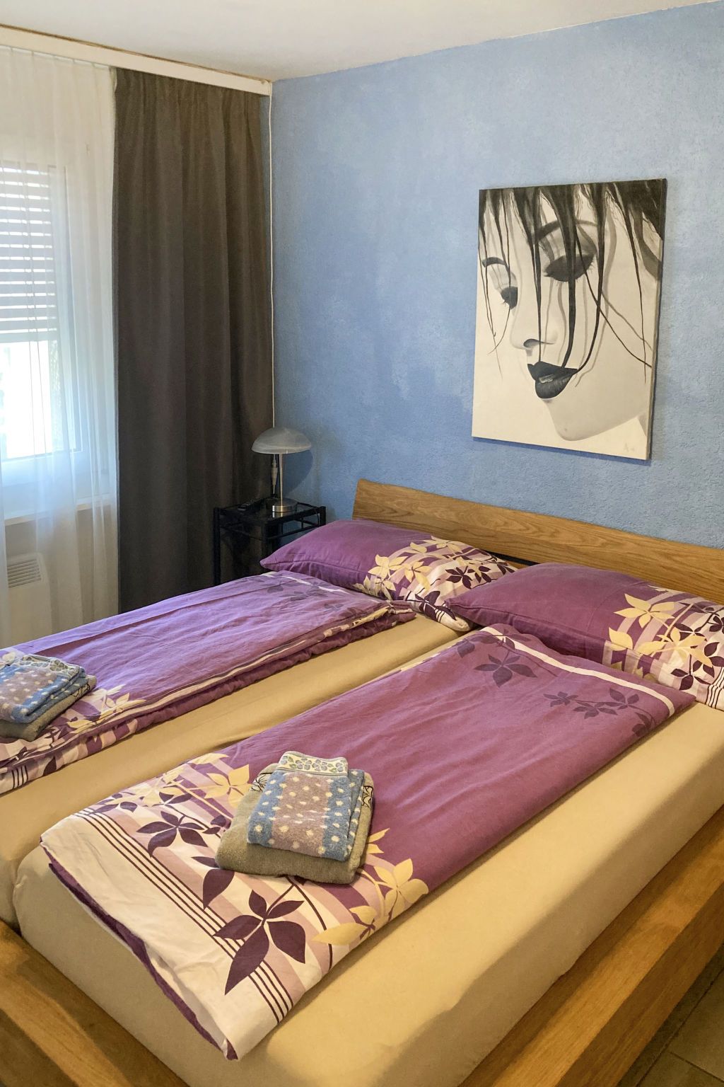 Collina Verde B, 3-Zimmer-Wohnung 68 m2, im Erdgeschoss. Hell, schön und modern eingerichtet: offenes grosses Wohn-/Esszimmer mit Schwedenofen, Kabel-TV, Flachbildschirm, Radio, DVD, E-Heizung und Boiler. Ausgang zum Gartensitzplatz. 1 Kinderzimmer mit 1 x 2 Etagenbetten (90 cm, Länge 200 cm). 1 Doppelzimmer mit 1 Doppelbett (2 x 90 cm, Länge 200 cm), Kabel-TV und Flachbildschirm. Offene Küche (Backofen, 4 Glaskeramikplatten, elektrische Kaffeemaschine, Kapseln für die Kaffeemaschine (Nespresso mitbringen)). Dusche/WC. Gartensitzplatz 20 m2. Terrassenmöbel, Liegestühle (2). Eingeschränkte Sicht auf die Berge und die Landschaft. Zur Verfügung: Internet (WLAN, gratis). Garage Nr. 108. Bitte beachten: Nichtraucher-Unterkunft. Maximal 1 Haustier/Hund erlaubt. 'Nespresso Kaffeemaschine - Kapseln müssen mitgebracht werden. NL-