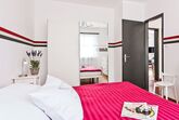 Junior Suite, 2-Zimmer-Wohnung 50 m2 im 3. Stock, Südlage. Zweckmässig eingerichtet: Wohn-/Esszimmer mit 1 Doppeldiwanbett (1 x 160 cm, Länge 200 cm), Sat-TV und Radio. 1 Zimmer mit 2 Betten (90 cm, Länge 200 cm). Küche (4 Kochplatten, Backofen, Geschirrspüler, elektrische Kaffeemaschine, Kapseln für die Kaffeemaschine (Nespresso) extra). Bad/WC. Warmluftheizung. Balkon. Terrassenmöbel. Eingeschränkte Sicht. Zur Verfügung: Internet (Wireless LAN, gratis). Bitte beachten: Nichtraucher-Unterkunft. Maximal 1 Haustier/Hund erlaubt. NL-