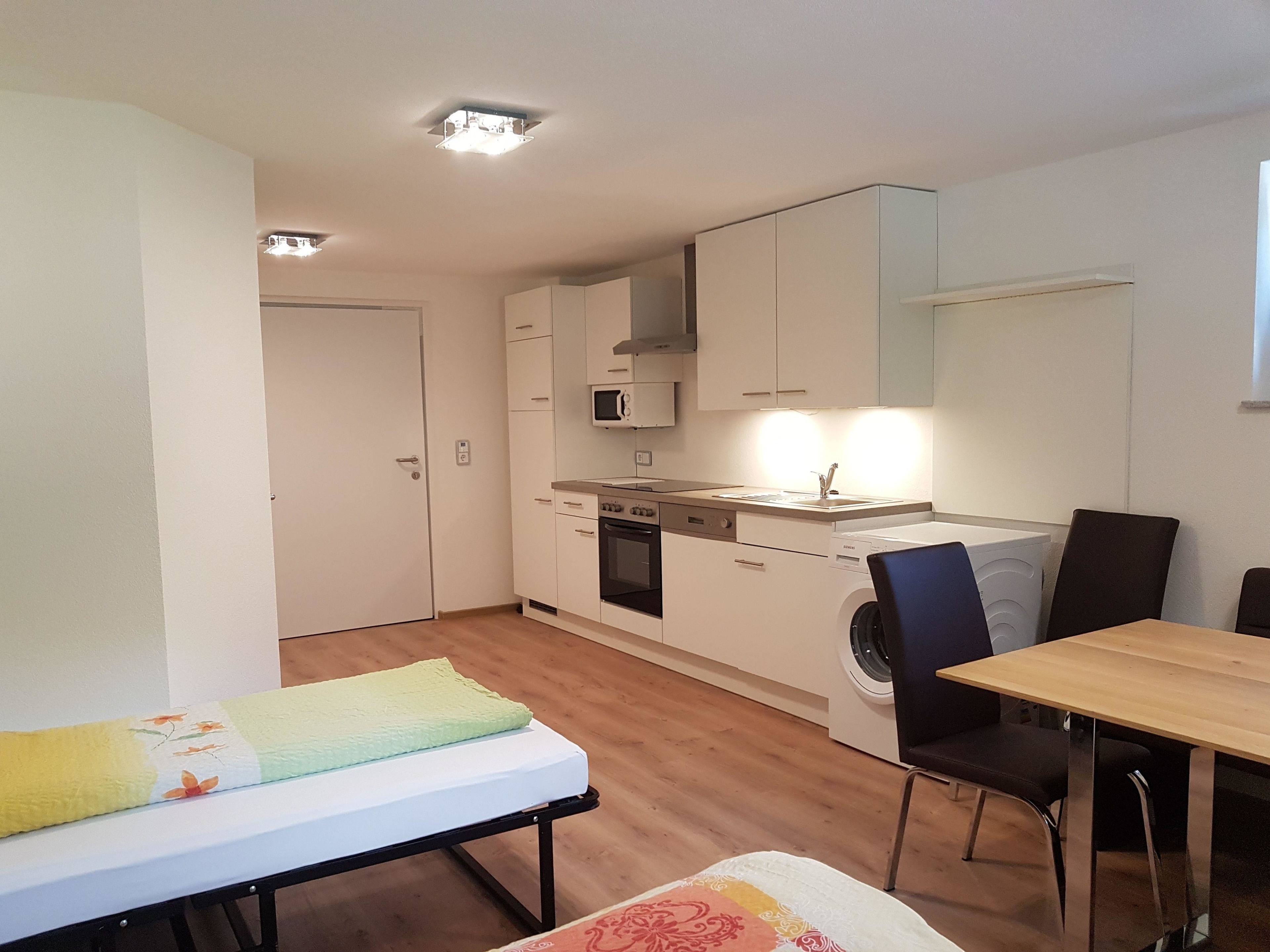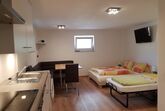 Das Studio bietet Ihnen eine große Küchenzeile mit allen Komfort ausgestattet, eine Sitzgruppe für 4 Personen, ein Schlafsofa für 2 Personen und wenn nötig ein Zustellbett.