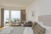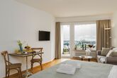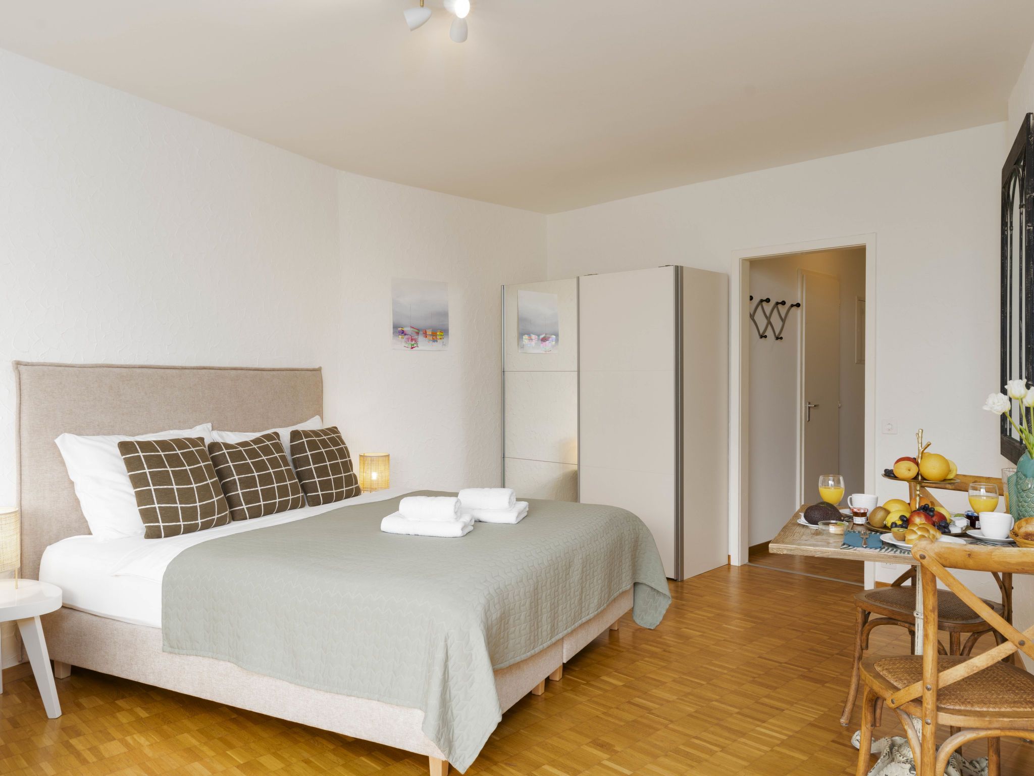 Double Room Modern, 1-Zimmer-Wohnung 35 m2 im 2. Stock, Südlage. Renoviert: Wohn-/Esszimmer mit 1 Doppelbett (1 x 160 cm, Länge 200 cm), Sat-TV und Radio. Kochnische (Backofen, elektrische Kaffeemaschine, Kapseln für die Kaffeemaschine (Nespresso) extra). Bad/WC. Ölheizung. Balkon, Südlage. Herrliche Sicht auf den See, die Berge und die Ortschaft. Zur Verfügung: Internet (Wireless LAN, gratis). Bitte beachten: Nichtraucher-Unterkunft. Maximal 1 Haustier/Hund erlaubt. NL-
