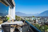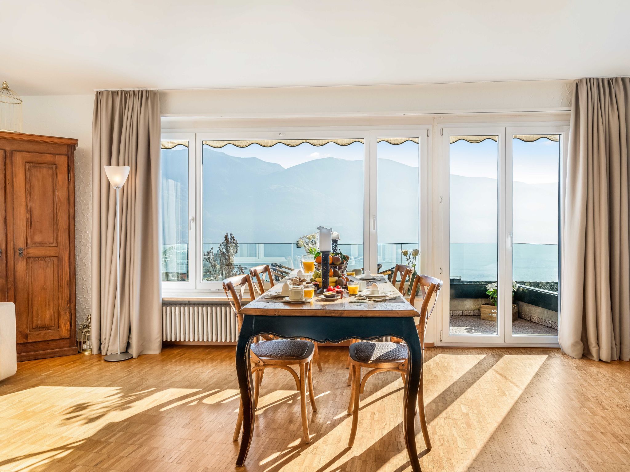 Suite Modern, 2-Zimmer-Wohnung 60 m2 im 1. Stock, Westlage. Renoviert: Wohn-/Esszimmer mit 1 Doppeldiwanbett (1 x 160 cm, Länge 200 cm), TV und Radio. 1 Zimmer mit 1 Doppelbett (1 x 180 cm, Länge 200 cm). Offene Küche (Backofen, elektrische Kaffeemaschine, Kapseln für die Kaffeemaschine (Nespresso) extra). Bad/WC. Ölheizung. 2 Balkone, Westlage. Eingeschränkte Sicht auf den See, die Berge und die Ortschaft. Zur Verfügung: Internet (WLAN, gratis). Bitte beachten: Nichtraucher-Haus. Maximal 1 Haustier/Hund erlaubt. NL-