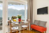 Double Room Modern, 1-Zimmer-Wohnung 35 m2, Südlage. Renoviert: Wohn-/Esszimmer mit 1 Doppelbett (1 x 180 cm, Länge 200 cm), Sat-TV und Radio. Kochnische (Backofen, elektrische Kaffeemaschine, Kapseln für die Kaffeemaschine (Nespresso) extra). Bad/WC. Ölheizung. Balkon, Südlage. Herrliche Sicht auf den See, die Berge und die Ortschaft. Zur Verfügung: Internet (Wireless LAN, gratis). Bitte beachten: Nichtraucher-Unterkunft, Nichtraucher-Haus. Maximal 1 Haustier/Hund erlaubt. NL-