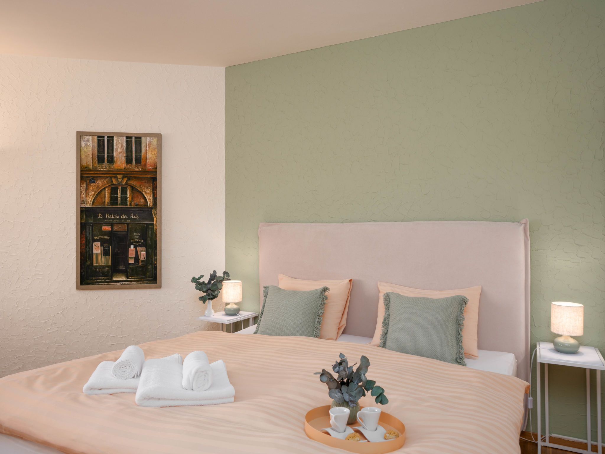 Double Room Classic, 1-Zimmer-Wohnung 35 m2 im 1. Stock, Südlage. Wohn-/Schlafzimmer mit 1 Doppelbett (1 x 180 cm, Länge 200 cm), Sat-TV und Radio. Kochnische (Backofen, elektrische Kaffeemaschine, Kapseln für die Kaffeemaschine (Nespresso) extra). Bad/WC. Ölheizung. Balkon, Südlage. Schöne Sicht auf den See und die Berge. Zur Verfügung: Internet (Wireless LAN, gratis). Bitte beachten: Nichtraucher-Unterkunft, Nichtraucher-Haus. Maximal 1 Haustier/Hund erlaubt. NL-