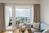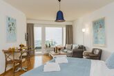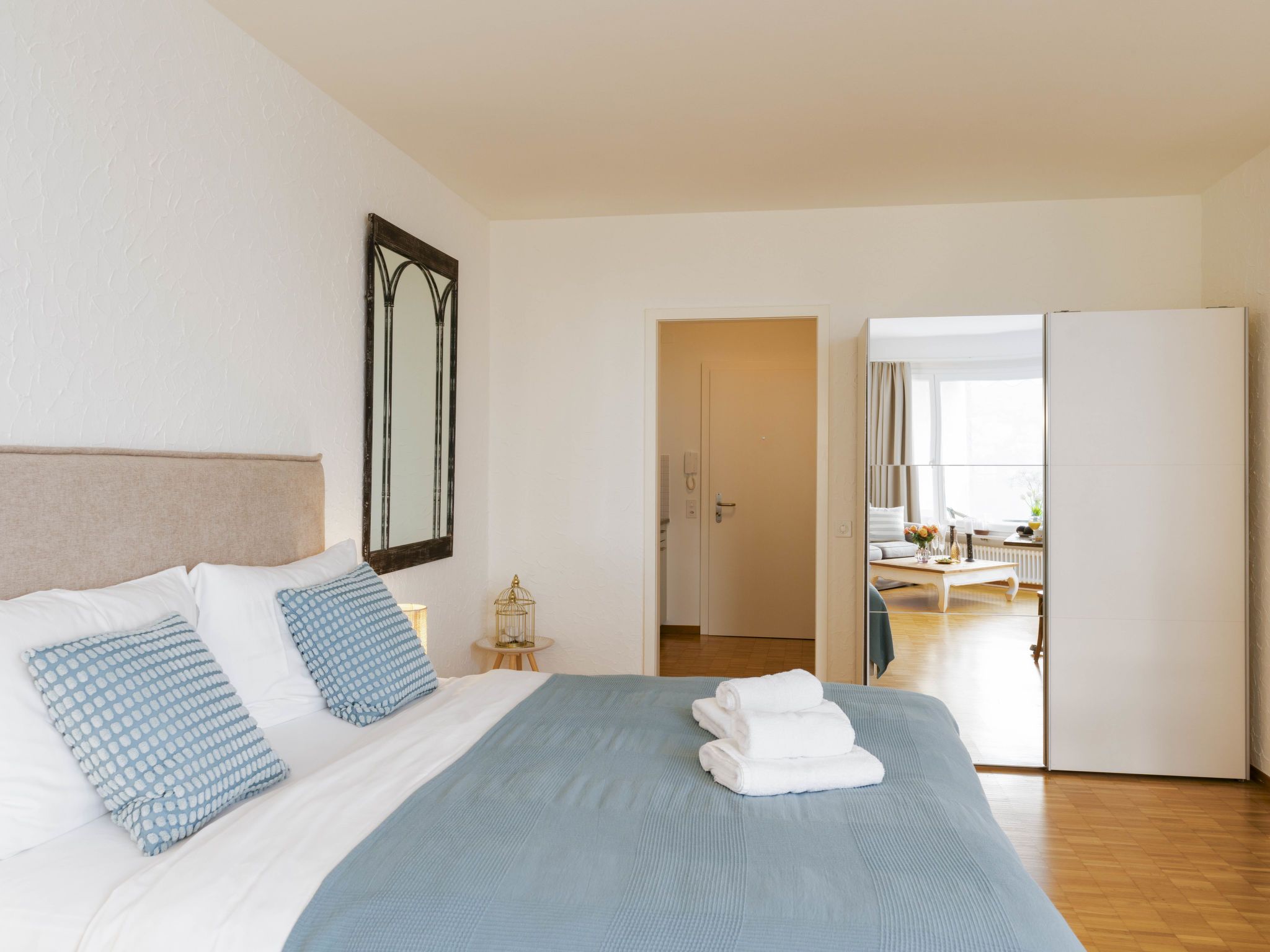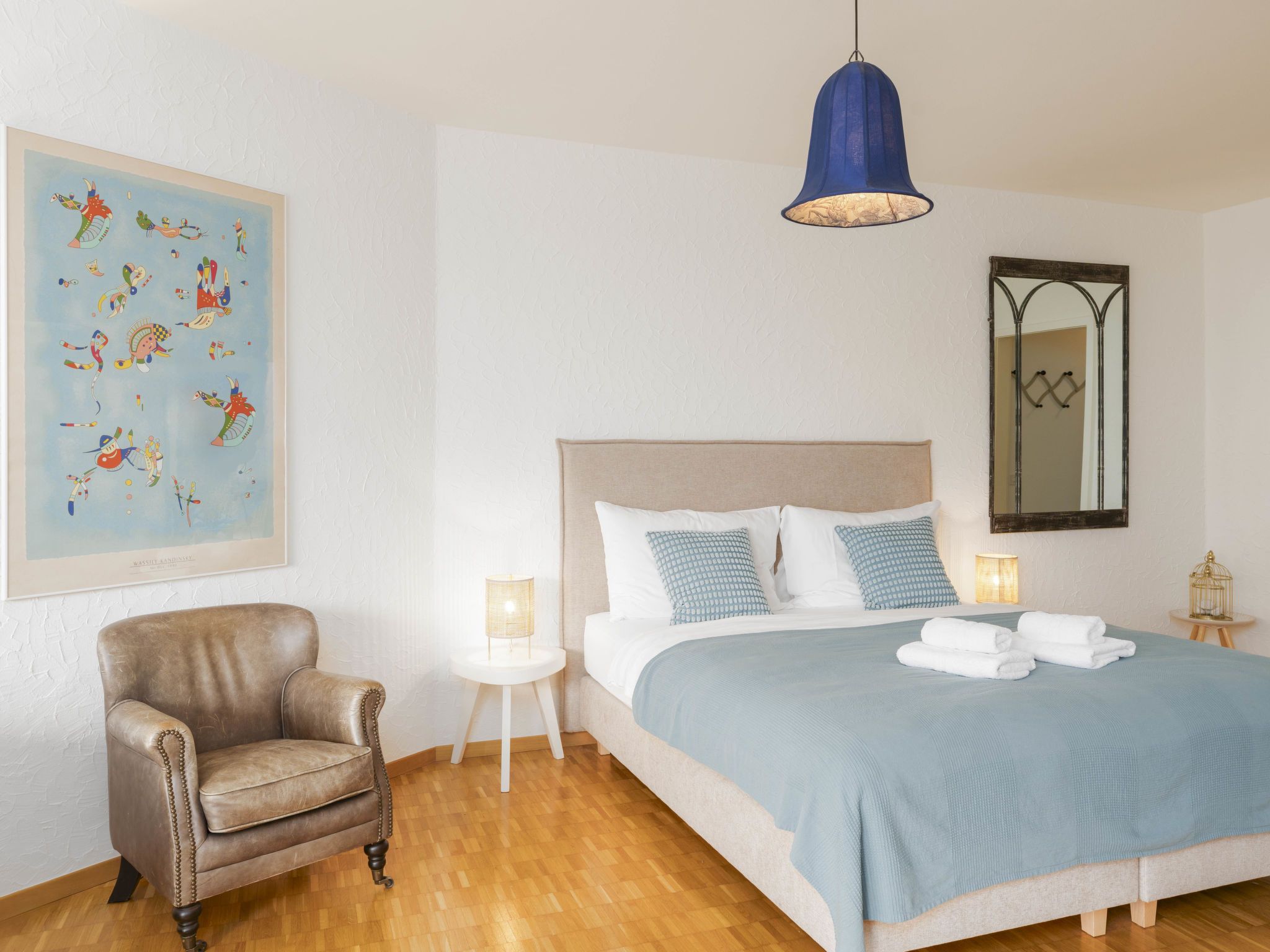 Double Room Modern, 1-Zimmer-Wohnung 35 m2 im 2. Stock, Südlage. Renoviert: Wohn-/Esszimmer mit 1 Doppelbett (1 x 160 cm, Länge 200 cm), Sat-TV und Radio. Kochnische (Backofen, elektrische Kaffeemaschine, Kapseln für die Kaffeemaschine (Nespresso) extra). Bad/WC. Ölheizung. Balkon, Südlage. Herrliche Sicht auf den See, die Berge und die Ortschaft. Zur Verfügung: Internet (Wireless LAN, gratis). Bitte beachten: Nichtraucher-Unterkunft. Maximal 1 Haustier/Hund erlaubt. NL-