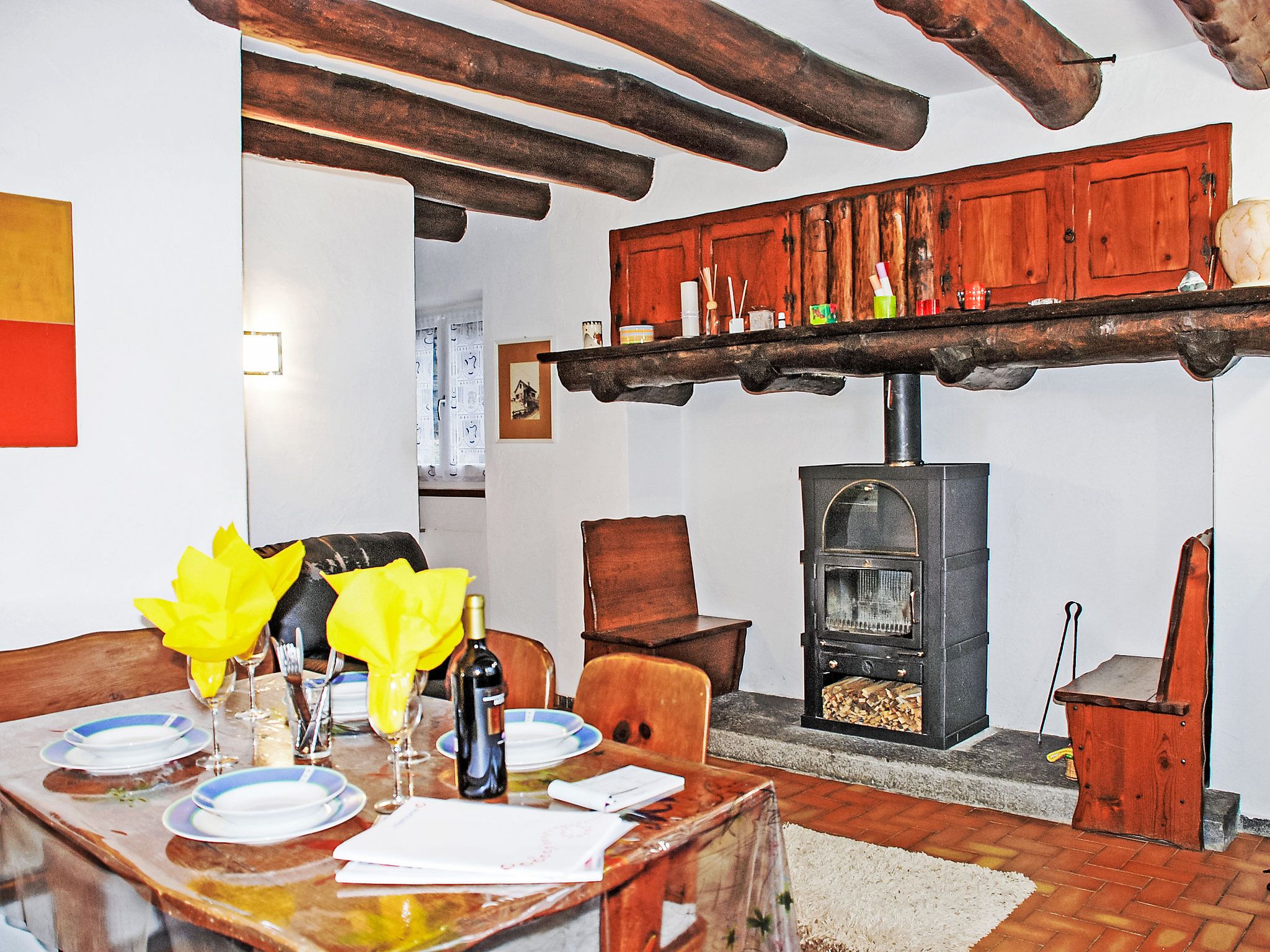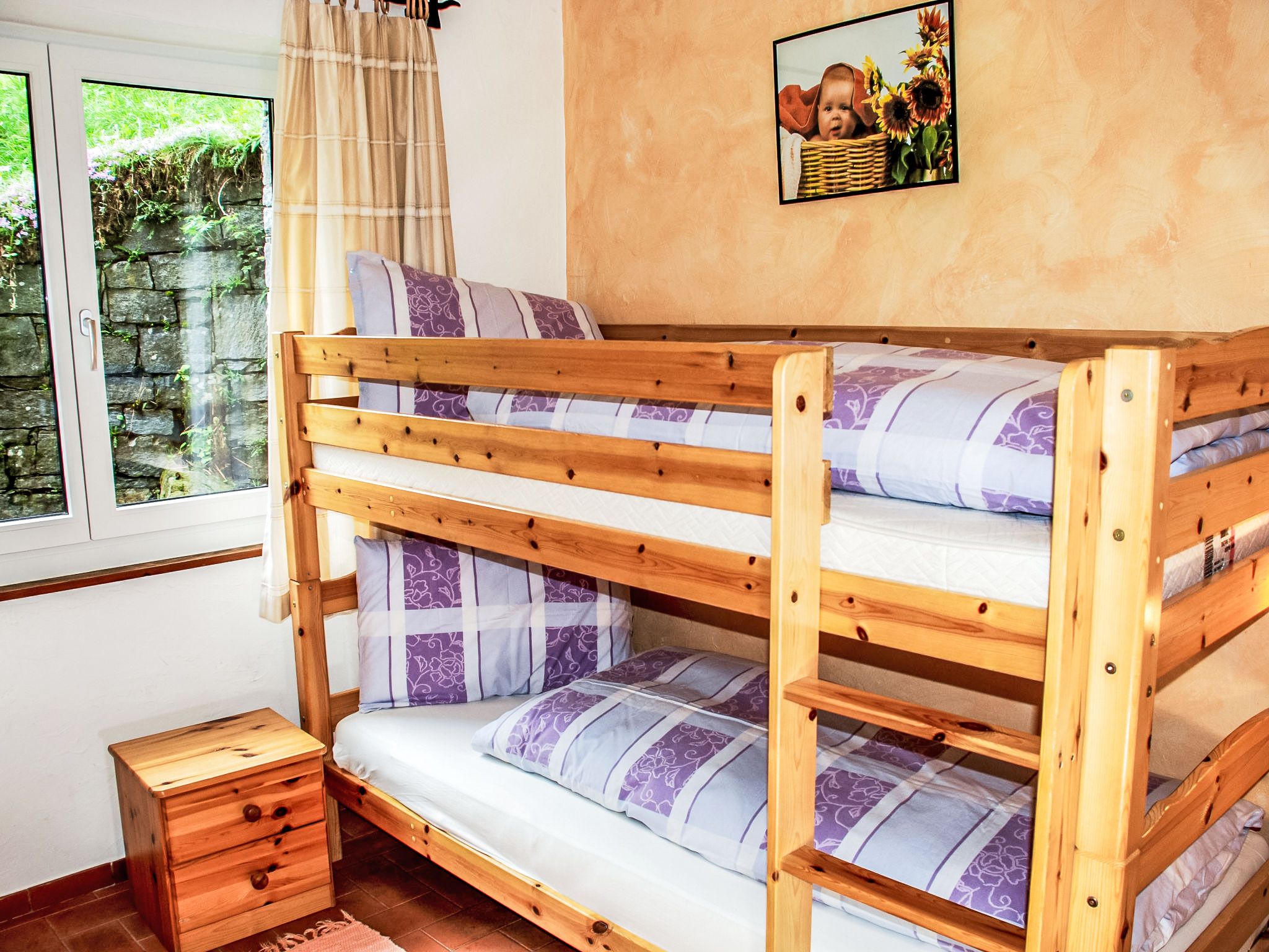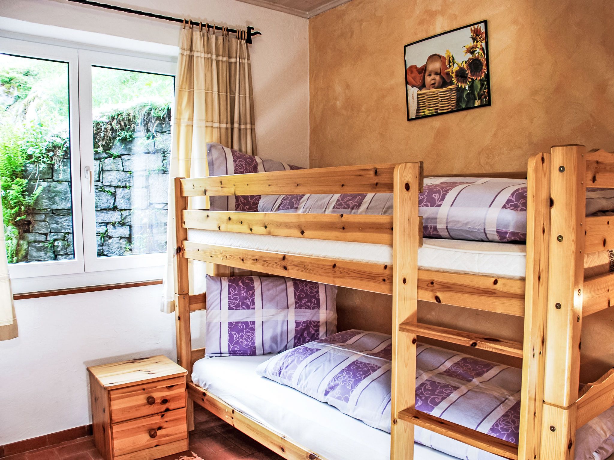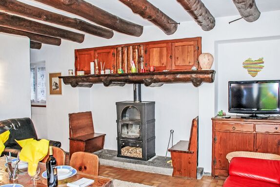 La Rustica, 3-Zimmer-Haus. Zweckmässig und komfortabel eingerichtet: Wohn-/Esszimmer mit Schwedenofen, Kabel-TV, Flachbildschirm und Radio. Ausgang zum Gartensitzplatz. 1 Doppelzimmer mit 1 Doppelbett (2 x 90 cm, Länge 200 cm), E-Heizofen. 1 Zimmer mit 1 x 2 Etagenbetten (90 cm, Länge 200 cm), 1 Wandschrankbett (90 cm, Länge 200 cm), E-Heizofen. Offene Küche (4 Kochplatten, Backofen, elektrische Kaffeemaschine). Dusche/WC. Gartensitzplatz. Balkonmöbel, Liegestühle (2). Sicht auf die Berge. Zur Verfügung: Babybett bis 2 Jahre (extra). Maximal 2 Haustiere/Hunde erlaubt. Boiler 100 l. NL-