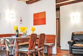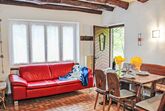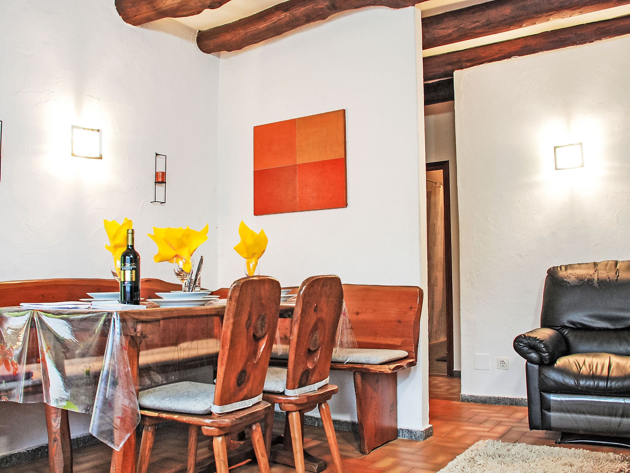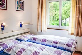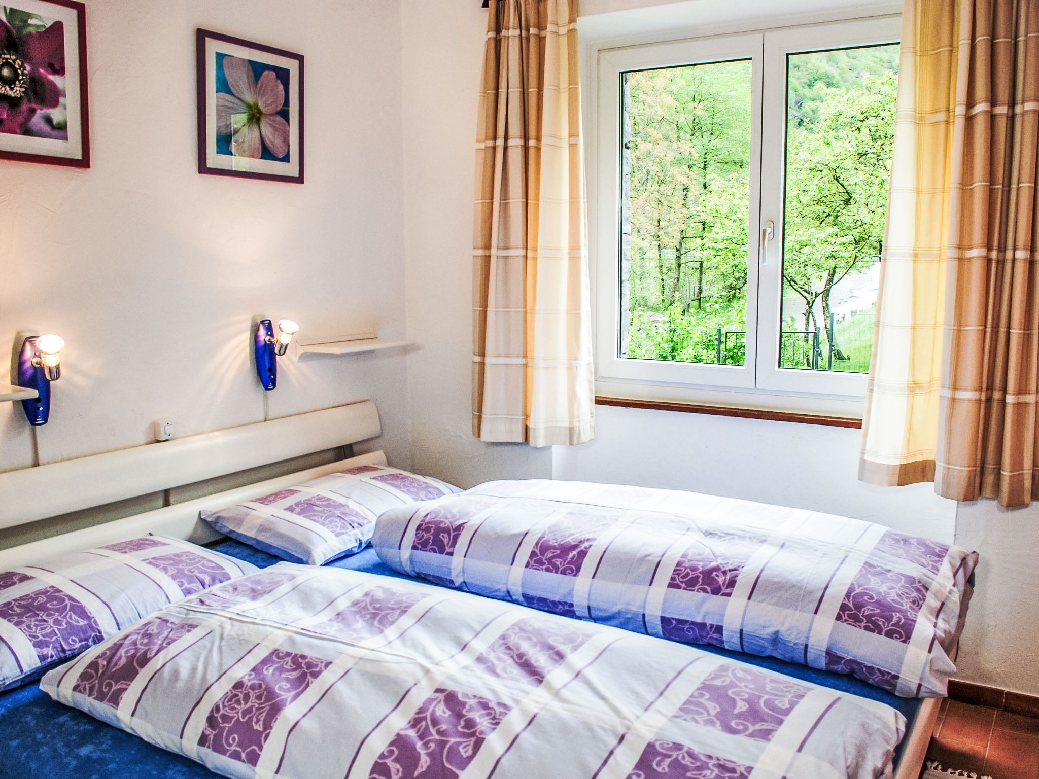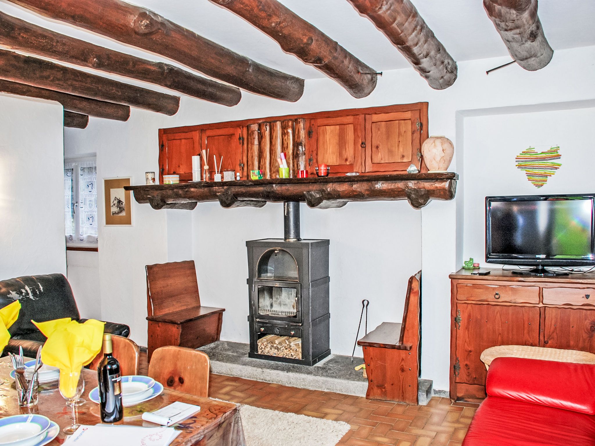 La Rustica, 3-Zimmer-Haus. Zweckmässig und komfortabel eingerichtet: Wohn-/Esszimmer mit Schwedenofen, Kabel-TV, Flachbildschirm und Radio. Ausgang zum Gartensitzplatz. 1 Doppelzimmer mit 1 Doppelbett (2 x 90 cm, Länge 200 cm), E-Heizofen. 1 Zimmer mit 1 x 2 Etagenbetten (90 cm, Länge 200 cm), 1 Wandschrankbett (90 cm, Länge 200 cm), E-Heizofen. Offene Küche (4 Kochplatten, Backofen, elektrische Kaffeemaschine). Dusche/WC. Gartensitzplatz. Balkonmöbel, Liegestühle (2). Sicht auf die Berge. Zur Verfügung: Babybett bis 2 Jahre (extra). Maximal 2 Haustiere/Hunde erlaubt. Boiler 100 l. NL-