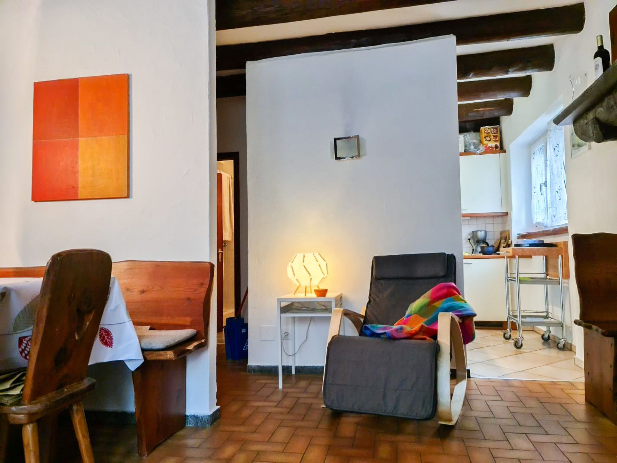 Brione Verzasca: Gemütliches Rustico la Rustica, Baujahr 1960. Am Ortsrand, ruhige Lage, direkt am Fluss, in einer Sackgasse. Zur Alleinbenutzung: Grundstück, Garten. Grill. Treppenweg (15 Stufen) bis zum Haus. Parkplatz. Einkaufsgeschäft 15 km, Lebensmittelgeschäft 700 m, Restaurant 200 m, Bushaltestelle 250 m, Bahnstation Tenero 15 km, Freibad 15 km, Strandbad 15 km. Golfplatz 18 km, Tennis 15 km. ,Bitte beachten: Umschwung/Garten ist nur teilweise eingezäunt.