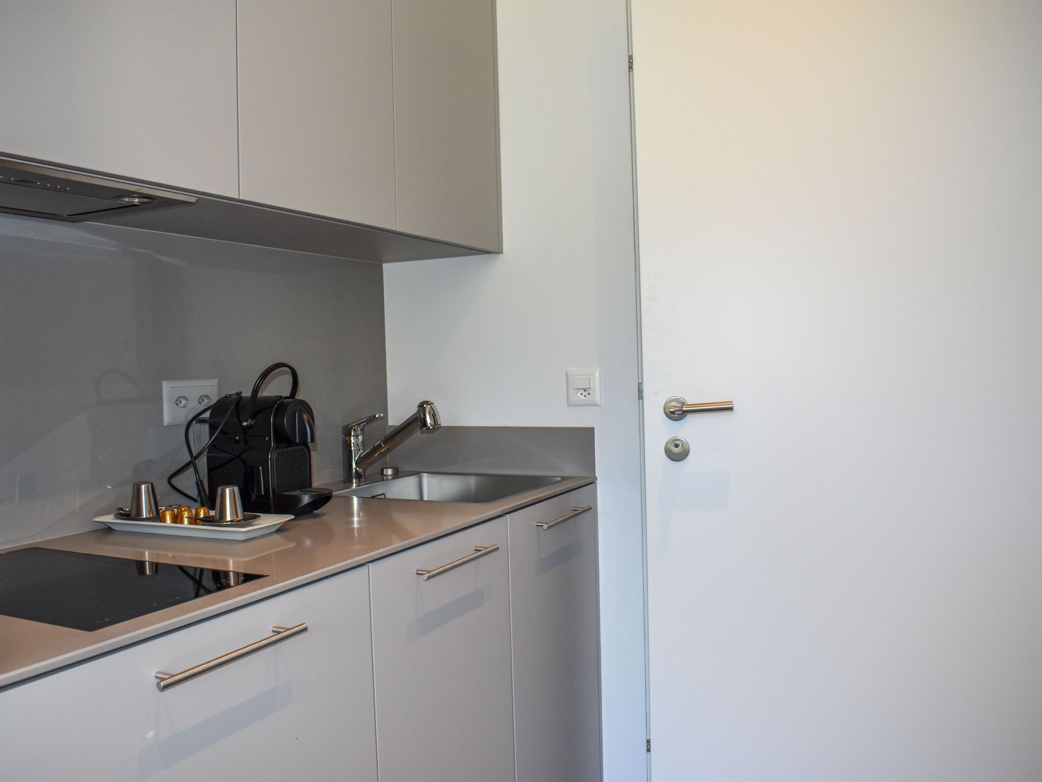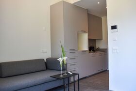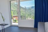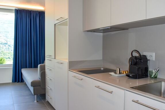 Capriccio 15 Studio Balcony, 1-Zimmer-Studio 15 m2. Hell, komfortabel und modern eingerichtet: offenes Wohn-/Schlafzimmer mit 1 Diwanbett (160 cm, Länge 200 cm), Kabel-TV, Internationale TV-Sender und Flachbildschirm. Ausgang zum Balkon. Kleine Küche (Geschirrspüler, 2 Glaskeramikplatten, elektrische Kaffeemaschine, Kapseln für die Kaffeemaschine (Nespresso) extra) mit Esstisch. Dusche/WC. Kleiner Balkon. Herrliche Panoramasicht auf die Berge, das Tal und die Landschaft. Zur Verfügung: Waschmaschine, Haartrockner. Internet (WLAN, extra). Bitte beachten: Nichtraucher-Unterkunft. Maximal 1 kleines Haustier/Hund erlaubt. Das Apartment befindet sich in einem Nebengebäude welches 3 Minuten zu Fuss vom Haupthaus mit Garten und Schwimmbad entfernt liegt. NL-