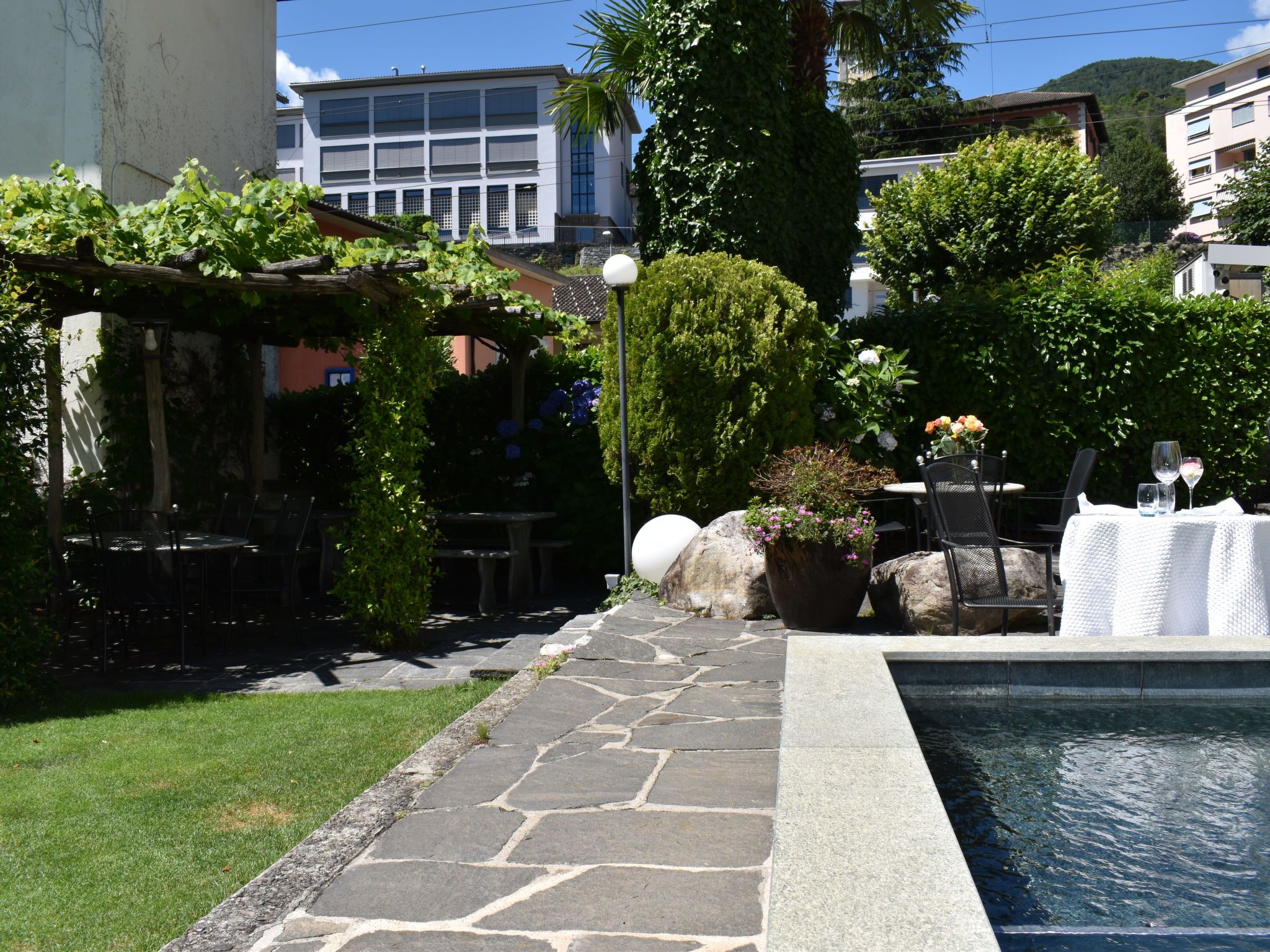 Intragna 10 km von Locarno: Modernes, komfortables Appartementhaus Capriccio, 340 m.ü.M., auf 2 Stockwerken. 3 Wohnungen im Ferienhaus. Im Ort Intragna, im Bezirk Centovalli, ruhige, sonnige Lage, in einer Sackgasse. Zur Mitbenutzung: wunderschöner Garten zum Entspannen, Schwimmbad eckig (2 x 10 m, saisonale Verfügbarkeit: 20.Mai. - 20.Okt.) mit Innentreppe. Sitzplatz, Pergola, Terrasse, Gartenmöbel. In der Anlage: Empfang, Restaurant, Frühstücksraum, Zentralheizung. Frühstück möglich auf Anfrage (extra). 30 m lange Zufahrt bis zum Haus. Parkplatz auf dem Grundstück. Restaurant 10 m, Bäckerei 500 m, Fahrradverleih 10 m, Bushaltestelle Intragna, Stazione 30 m, Bahnstation Centrovalli Expres FART Intragna 50 m. Wanderwege ab Haus 5 m. Nahe gelegene Sehenswürdigkeiten: Ascona, Locarno, Ronco sopra Ascona, Isole di Brissago, Falconeria, Locarno, Madonna del Sasso, Orselina, Mercato Cannobio IT, Mercato Luino IT. Bekannte Seen in der Umgebung sind gut erreichbar: Lago Maggiore, Lago di Lugano, Lago di Como. Wandergebiete: Centovalli, Vallemaggia, Valle Verzasca, Cardada, Monte Tamaro- Splash &SPA. Bitte beachten: Babyausstattung. Weitere Unterkünfte sind buchbar. Ferienwohnung Ref. CH6655.55 befindet sich auf dem gleichen Grundstück.