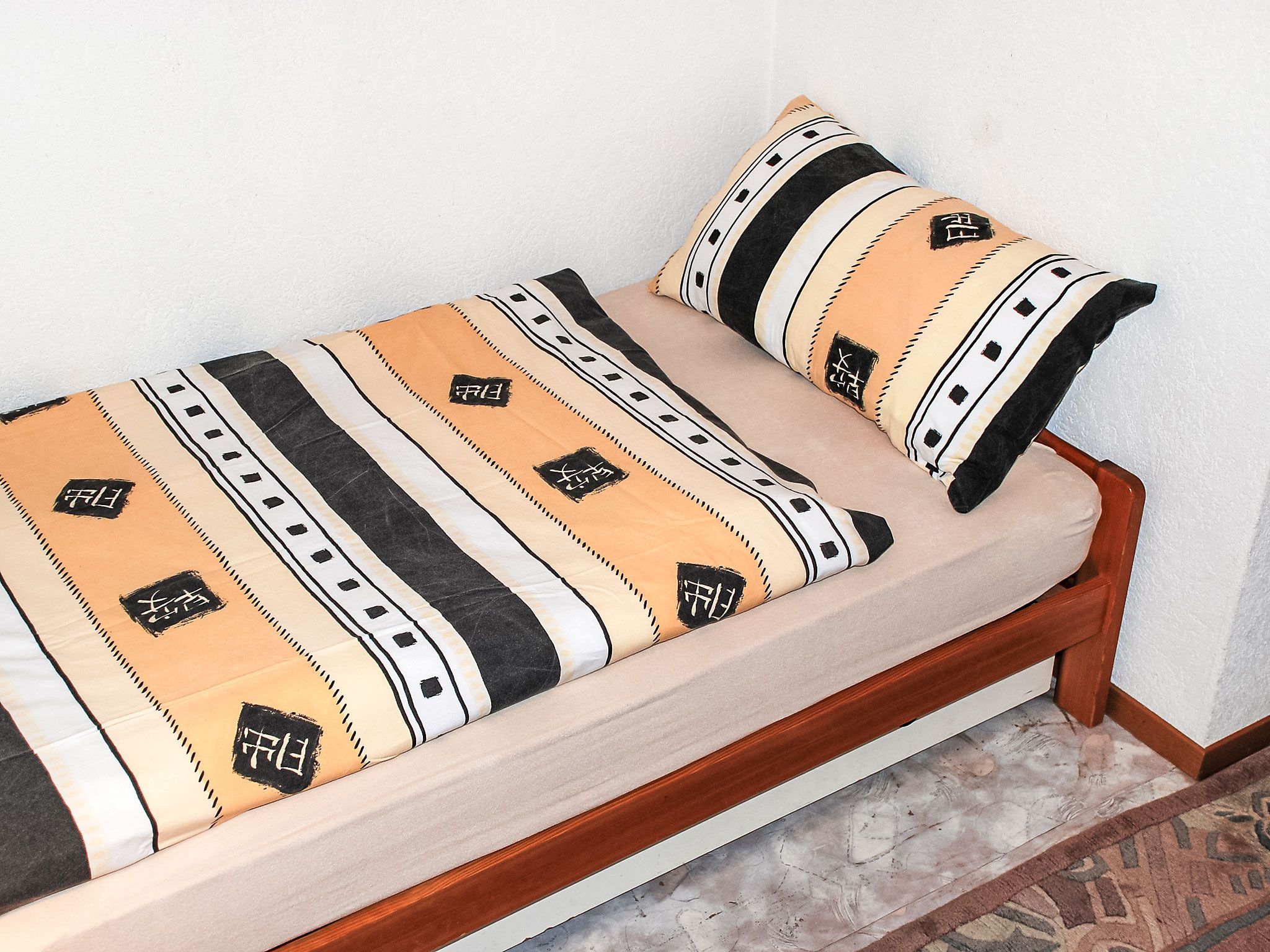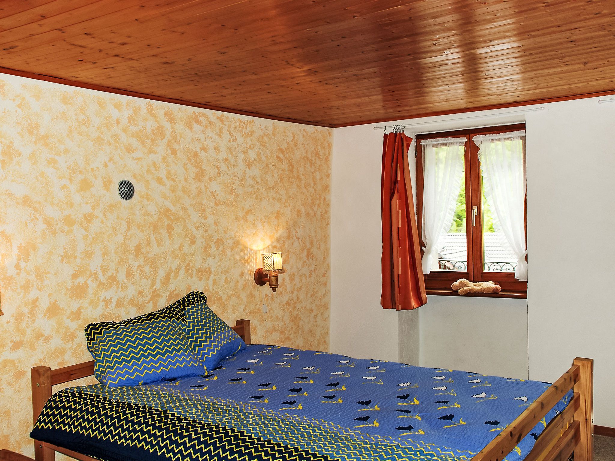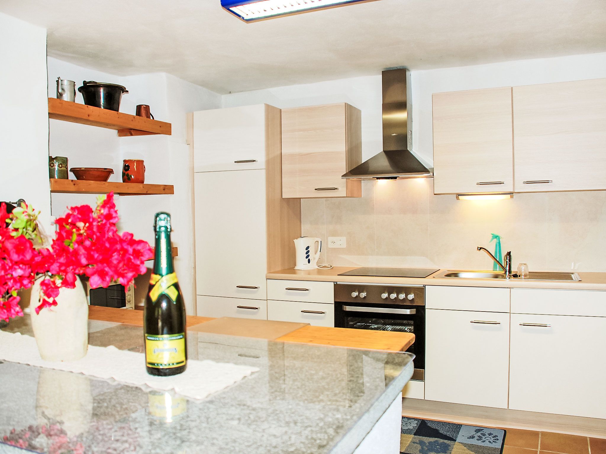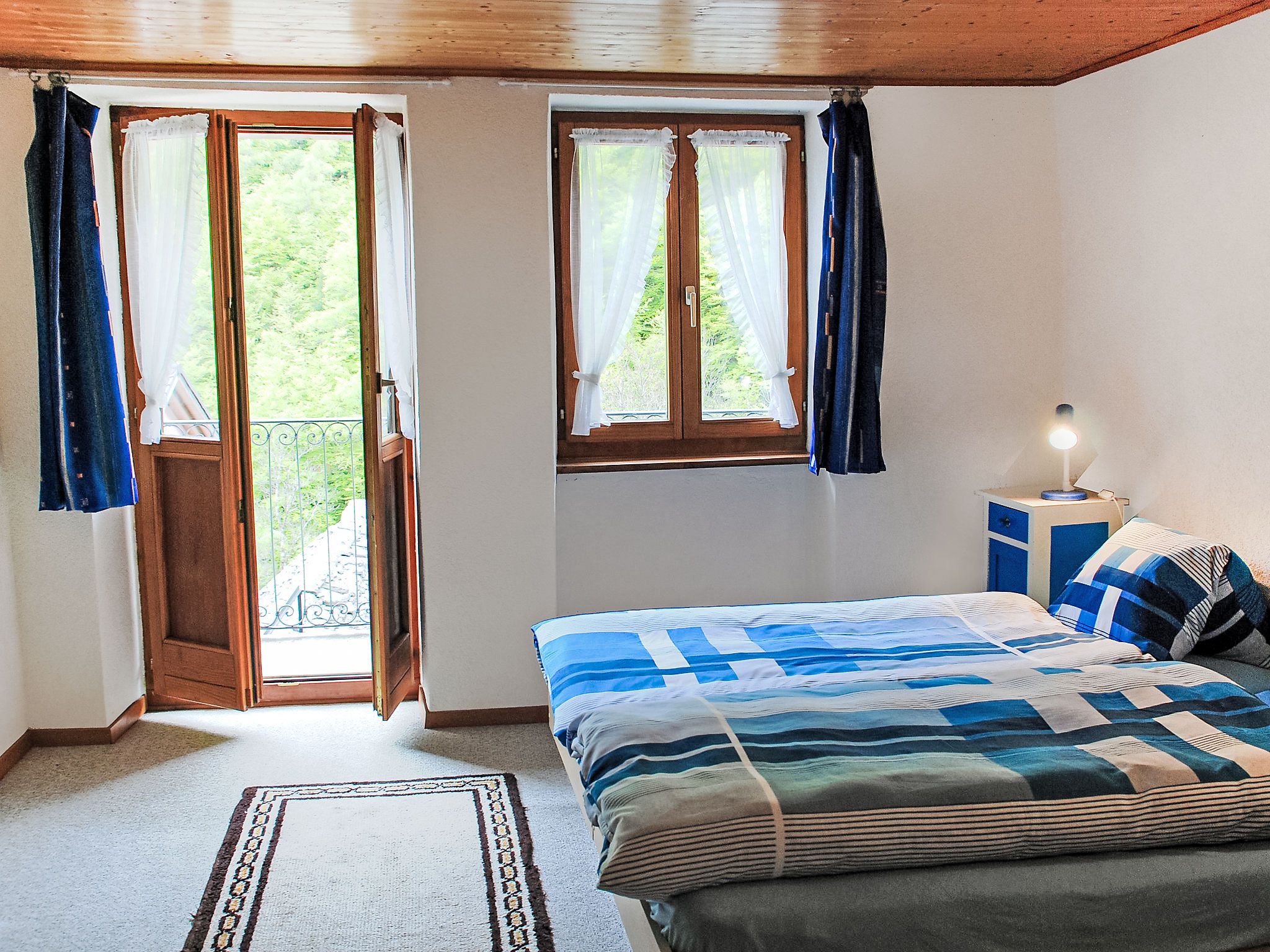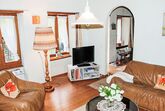 Strecce 2, 4-Zimmer-Wohnung auf 2 Stockwerken, im erhöhten Erdgeschoss. Zweckmässig und gemütlich eingerichtet: Wohnzimmer mit offenem Kamin, Sat-TV und Flachbildschirm. Grosse Wohnküche (Backofen, 4 Glaskeramikplatten, elektrische Kaffeemaschine) mit offenem Kamin. Ausgang zur Terrasse. Sep. WC. E-Heizung. Obergeschoss: 1 Doppelzimmer mit 1 franz. Bett (1 x 160 cm, Länge 200 cm). Ausgang zum Balkon. 1 Zimmer mit 1 Doppelbett (2 x 90 cm, Länge 200 cm). 1 Zimmer, Fenster zum Hof mit 1 Bett (90 cm, Länge 200 cm). Dusche/Bidet/WC. Holzdielenboden. Balkon, Terrasse. Terrassenmöbel, Liegestühle (2). Eingeschränkte Sicht auf die Berge. Zur Verfügung: Waschmaschine, Wäschetrockner. Bitte beachten: Nichtraucher-Unterkunft. NL-