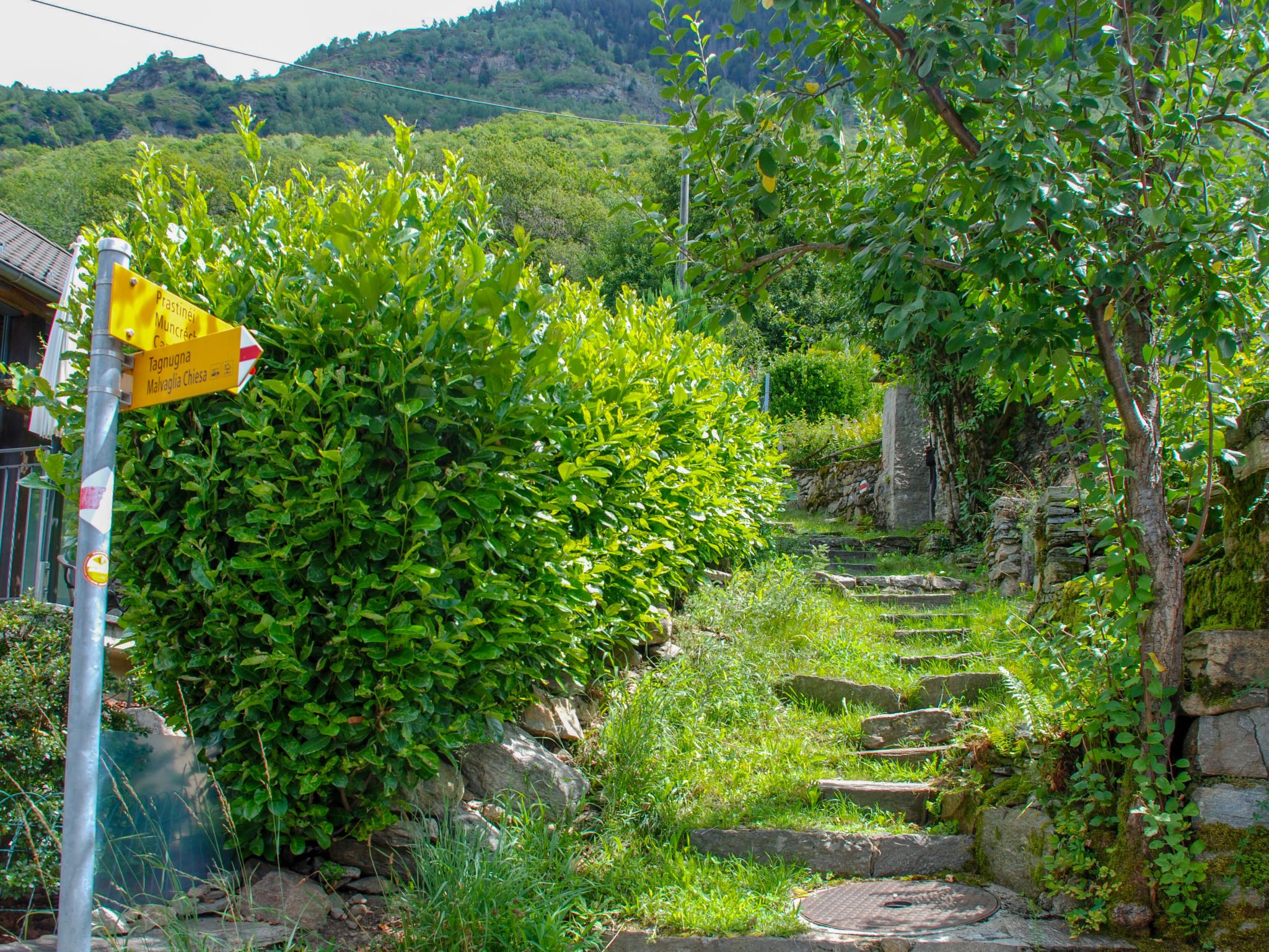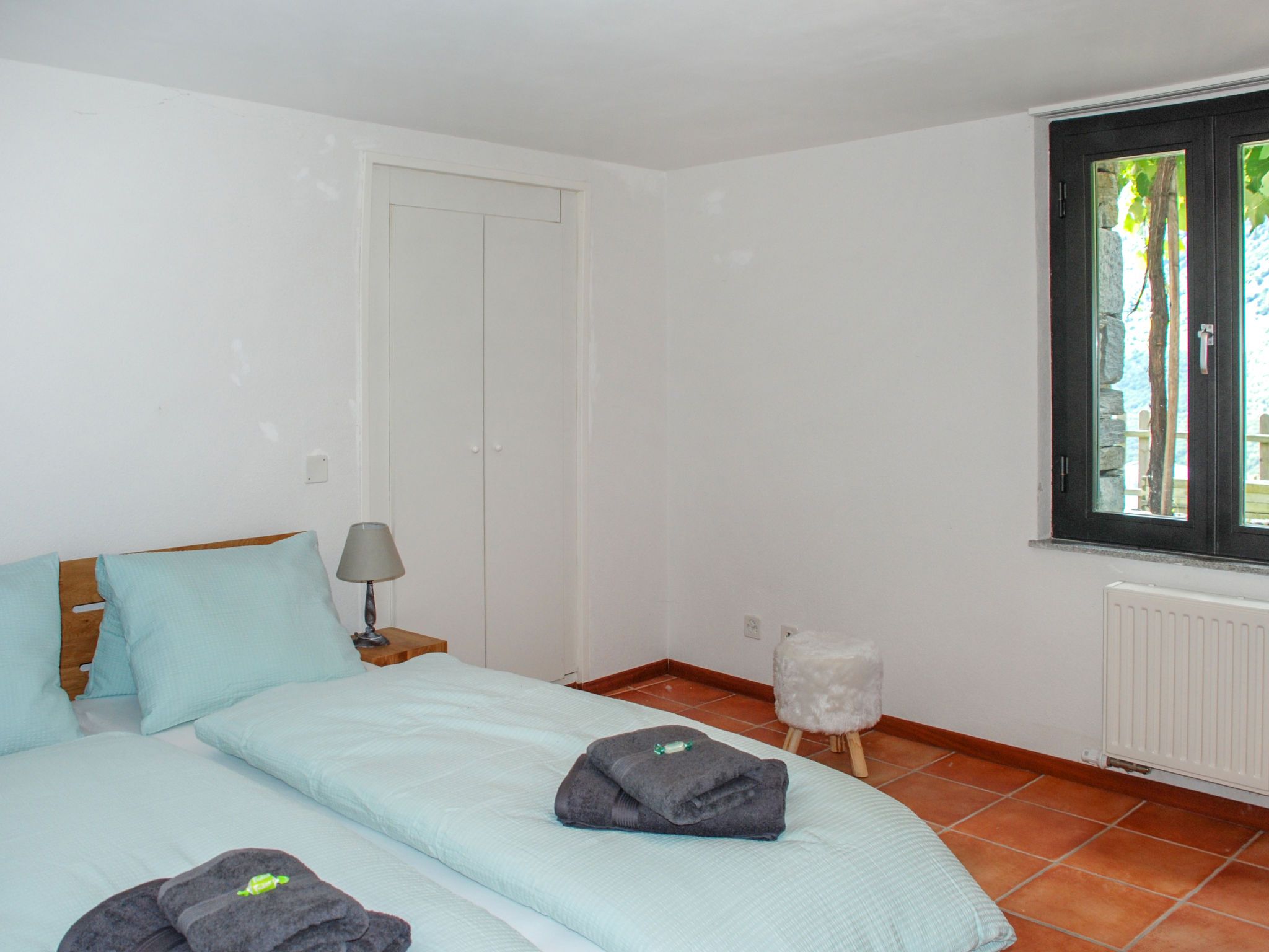 Rustico Ca' di Garoi, 3-Zimmer-Haus 75 m2 auf 3 Stockwerken. Geräumig und hell, teilweise abgeschrägt, komfortabel und gemütlich eingerichtet: grosse, offene Küche (Backofen, Geschirrspüler, 4 Glaskeramikplatten, elektrische Kaffeemaschine, Kapseln für die Kaffeemaschine (NESPRESSO) extra, Racletteofen, Fondue Set (Käse)) mit Esstisch und Holzofen. Ausgang zur Terrasse. Dusche/WC. Ölheizung. Unteres Geschoss: 1 Doppelzimmer mit 1 Doppelbett (160 cm, Länge 200 cm). Obergeschoss: abgeschrägtes, offenes Wohn-/Schlafzimmer mit 1 Diwanbett (140 cm, Länge 200 cm), Sat-TV und Flachbildschirm. Kleine Terrasse teilweise überdacht. Terrassenmöbel, Gartengrill (mobil). Panoramasicht auf die Berge, das Tal, die Landschaft und die Ortschaft. Zur Verfügung: Waschmaschine, Kinderhochstuhl, Babybett bis 2 Jahre (extra), Haartrockner. Internet (WLAN, gratis). Bitte beachten: Nichtraucher-Haus. Maximal 1 Haustier/Hund erlaubt. NL-