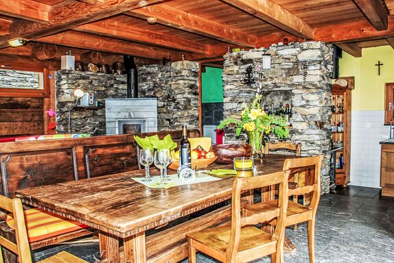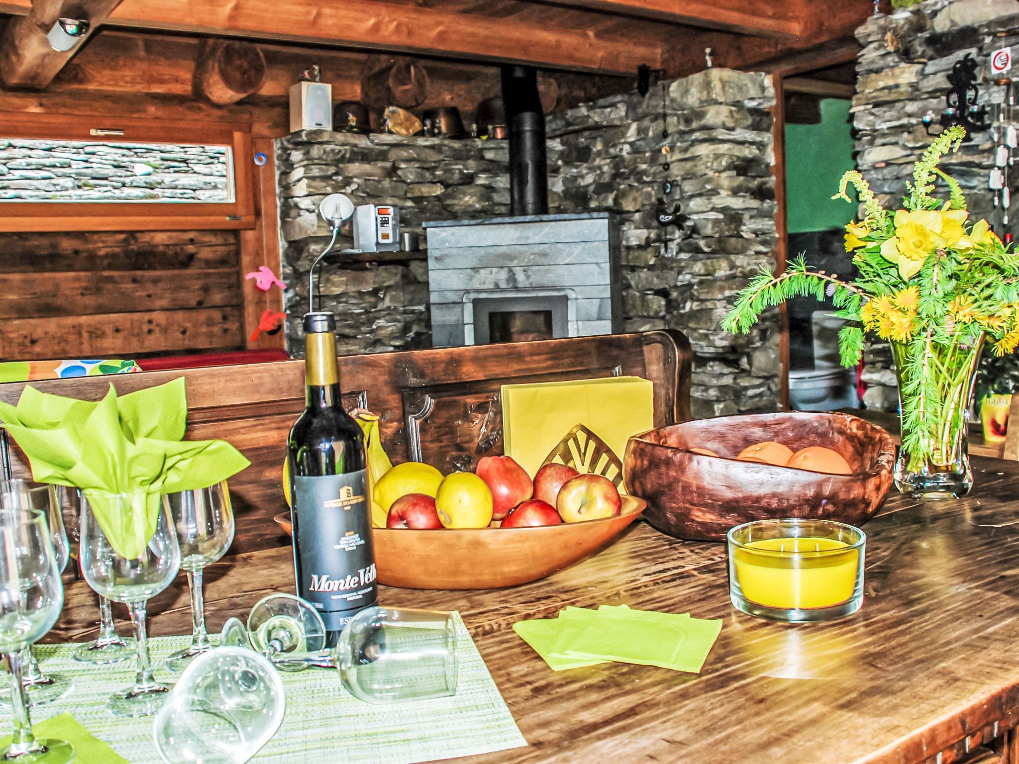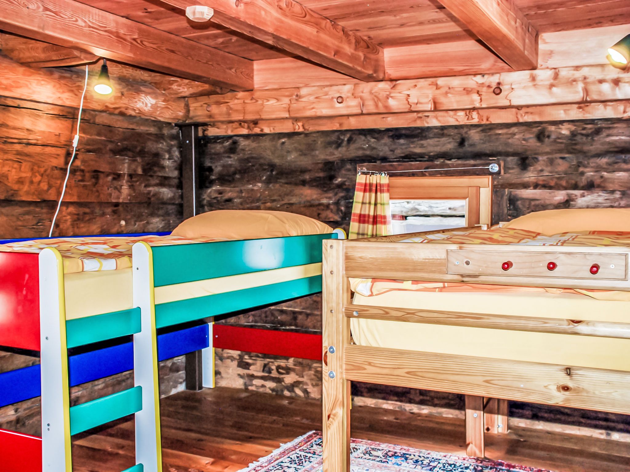 Rustico Cà dru Lurenz, 5-Zimmer-Landhaus 110 m2 auf 2 Stockwerken. Teilweise abgeschrägt, rustikal und gemütlich eingerichtet: offenes Wohn-/Esszimmer mit Schwedenofen, Radio und Stereoanlage. Ausgang zum Garten. 1 Doppelzimmer mit 1 Doppelbett (2 x 90 cm, Länge 200 cm). 1 Zimmer mit 2 x 1 Etagenbetten (90 cm, Länge 200 cm). Offene Küche (Backofen, Gasherd, 4 Flammen, Fondue Set (Chinoise, Käse)) mit Holzofen. Ausgang zum Gartensitzplatz. Dusche/WC. Holzheizung. Solarstrom. Obergeschoss: offene Galerie mit 1 Diwanbett und Sat-TV (Flachbildschirm). 1 abgeschrägtes Doppelzimmer mit 1 Doppelbett (2 x 90 cm, Länge 200 cm). Gartensitzplatz, kleiner Garten. Terrassenmöbel, Gartengrill (mobil), Liegestühle (4). Panoramasicht auf die Berge, das Tal und die Landschaft. Zur Verfügung: Kinderhochstuhl, Babybett bis 2 Jahre (extra). Bitte beachten: Nichtraucher-Haus. Maximal 2 Haustiere/Hunde erlaubt. Feuerlöscher. Achtung: Es kann 1 Zusatzbett gebucht werden. NL-