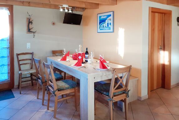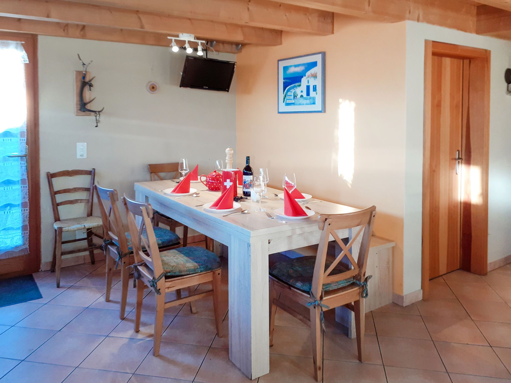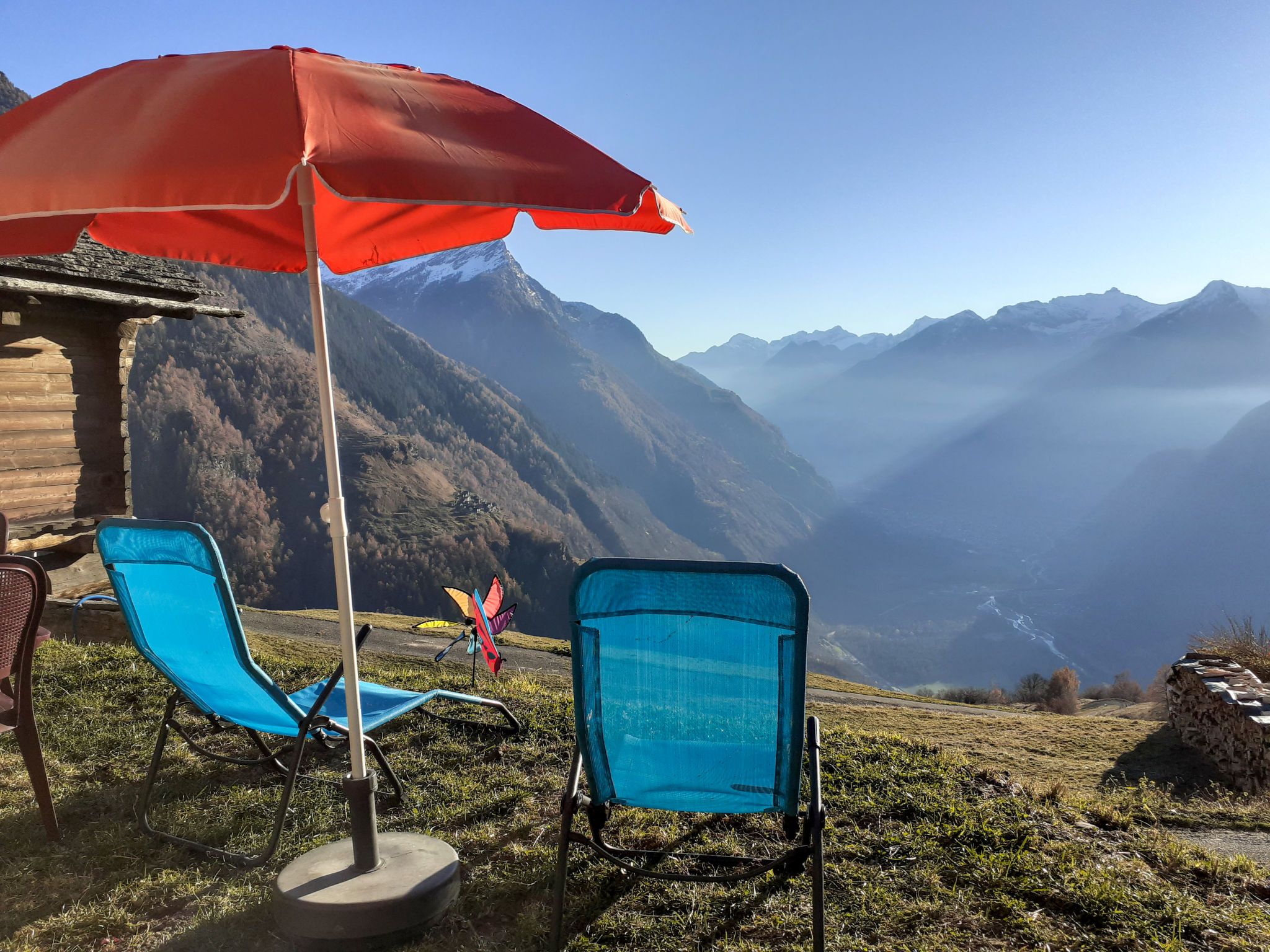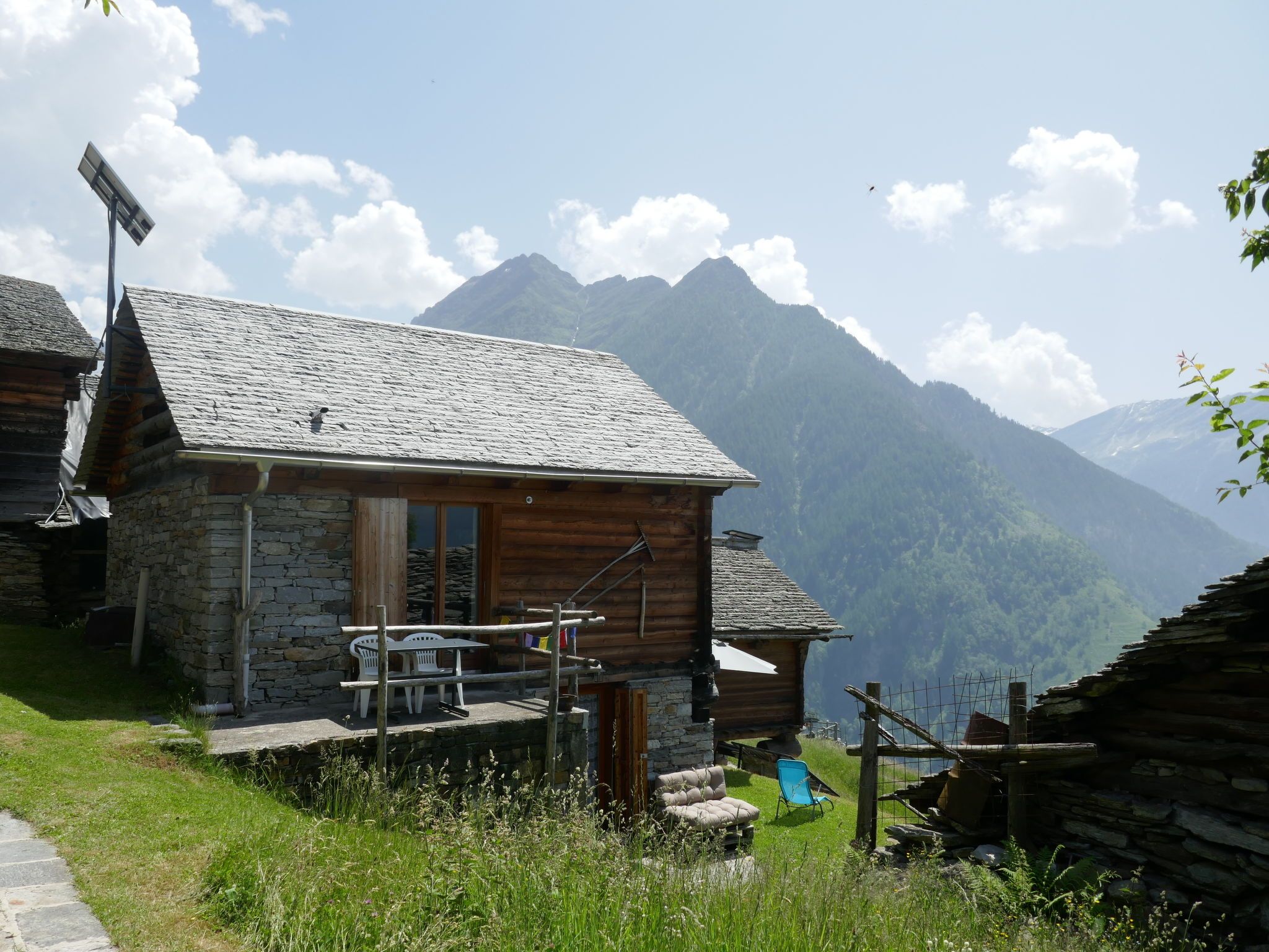 Rustico Bel Panorama, 3-Zimmer-Haus. Geräumig, teilweise abgeschrägt, einfach und zweckmässig eingerichtet: offenes Esszimmer mit Esstisch, Sat-TV und CD. Ausgang zum Garten. Offene Küche (Gasherd, 4 Flammen, elektrische Kaffeemaschine, Fondue Set (Käse)) mit Holzofen. Dusche/WC. Holzheizung. Solarstrom. Obergeschoss: offenes Wohn-/Schlafzimmer mit 1 Doppelbett (1 x 160 cm, Länge 200 cm), Sat-TV. Ausgang zur Terrasse. 2. Obergeschoss: abgeschrägt, offen mit 4 Betten (90 cm, Länge 200 cm). Garten. Terrassenmöbel, Gartengrill, Liegestühle (2), Sitzplatz. Herrliche Panoramasicht auf die Berge, das Tal und die Landschaft. Zur Verfügung: Kinderhochstuhl, Babybett bis 2 Jahre (extra). Bitte beachten: Nichtraucher-Haus. Maximal 1 Haustier/Hund erlaubt. Anstelle eines abgeschlossenen Schlafzimmers befinden sich manche Schlafplätze in einem offenen Bereich (Galerie, Nische etc.). NL-